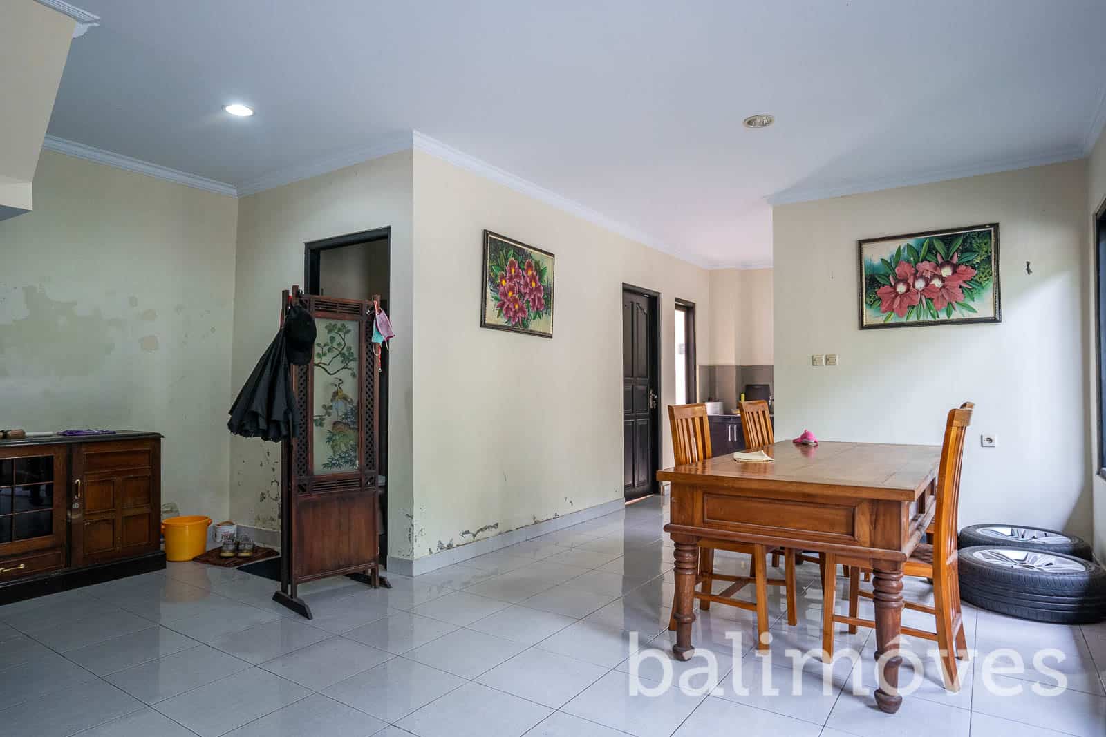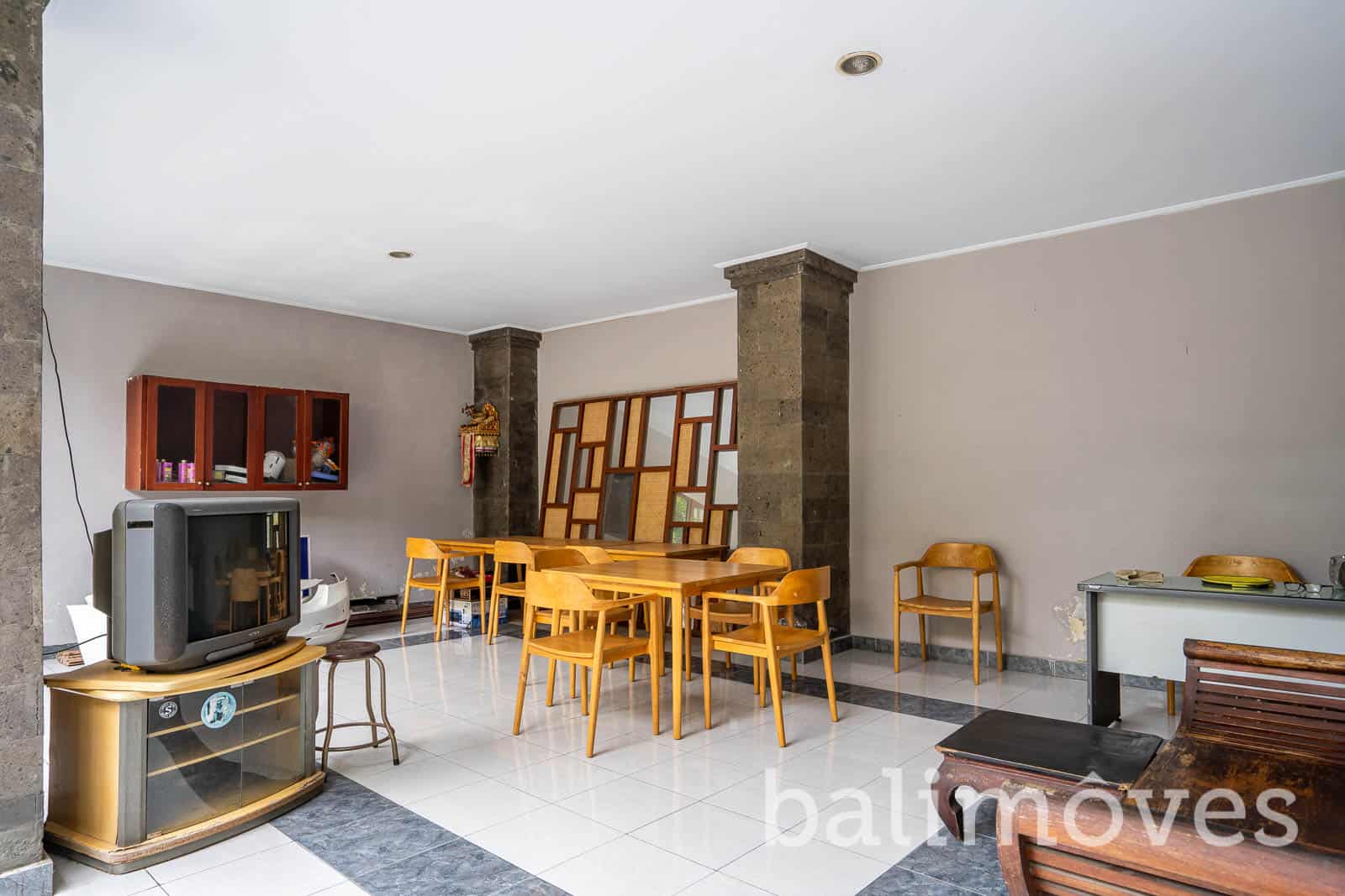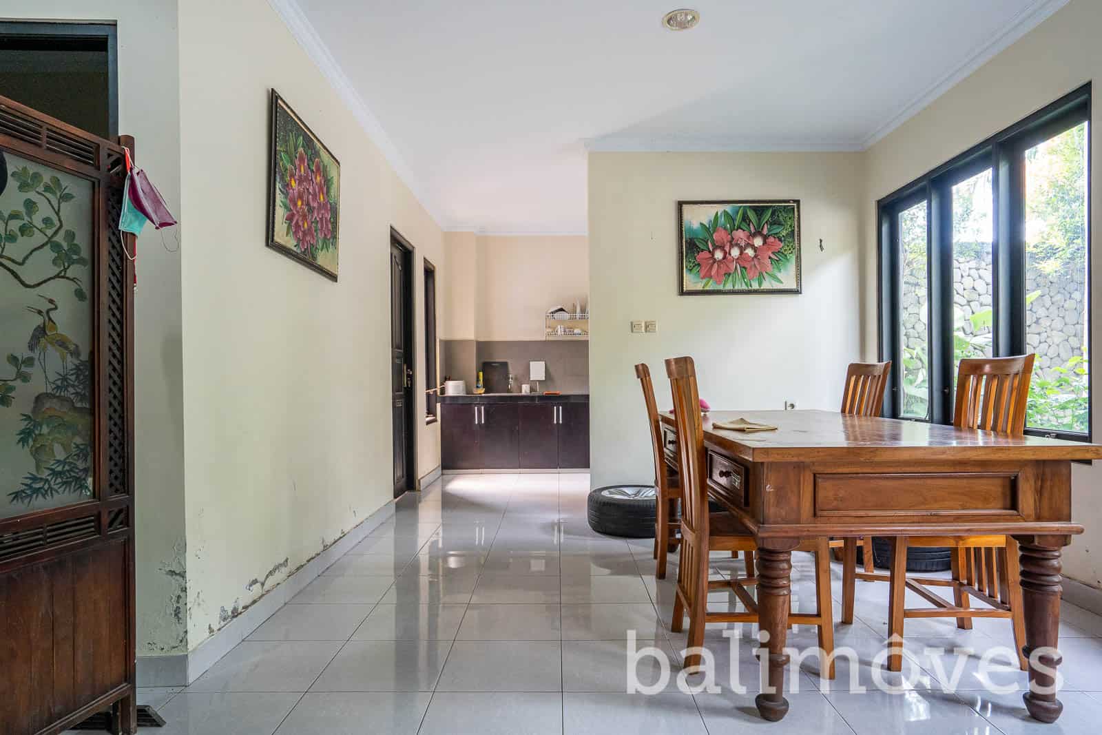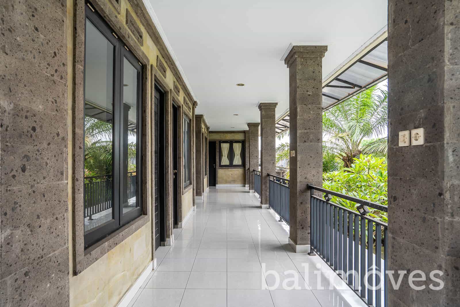 A good maintenance house with Balinese designs it was built in 2013 on the 710m2 land and 350m2 building size it is has offered two separate building both come up with two-level the main building consists of three minimalist bedrooms on the second floor with a sharing bathroom and a balcony that connected to each room, it also offers a cozy kitchen, a closed living room, dining area and a guest toilet on the first level. And the second building consists of two cozy bedrooms both on the second level with a sharing bathroom and a spacious living area, it has offered one guest toilet on the first floor with a spacious space that used to be an art shop so for you who are have the same passion as the owner of this property and planning to open an art shop or any other shops that can be part of your home as well I think this property can be an option or if that is not your case you can just change this space as your another cozy and spacious living room. It has a spacious parking space as well which can fit up to 5 cars and many motorbikes.