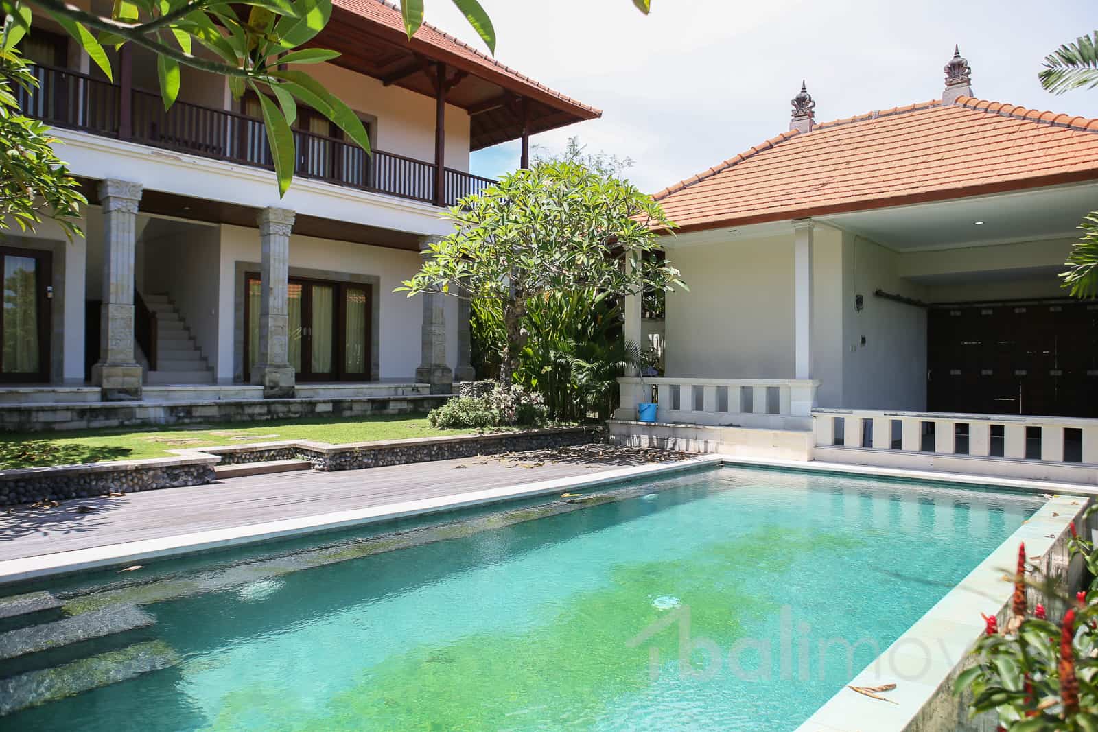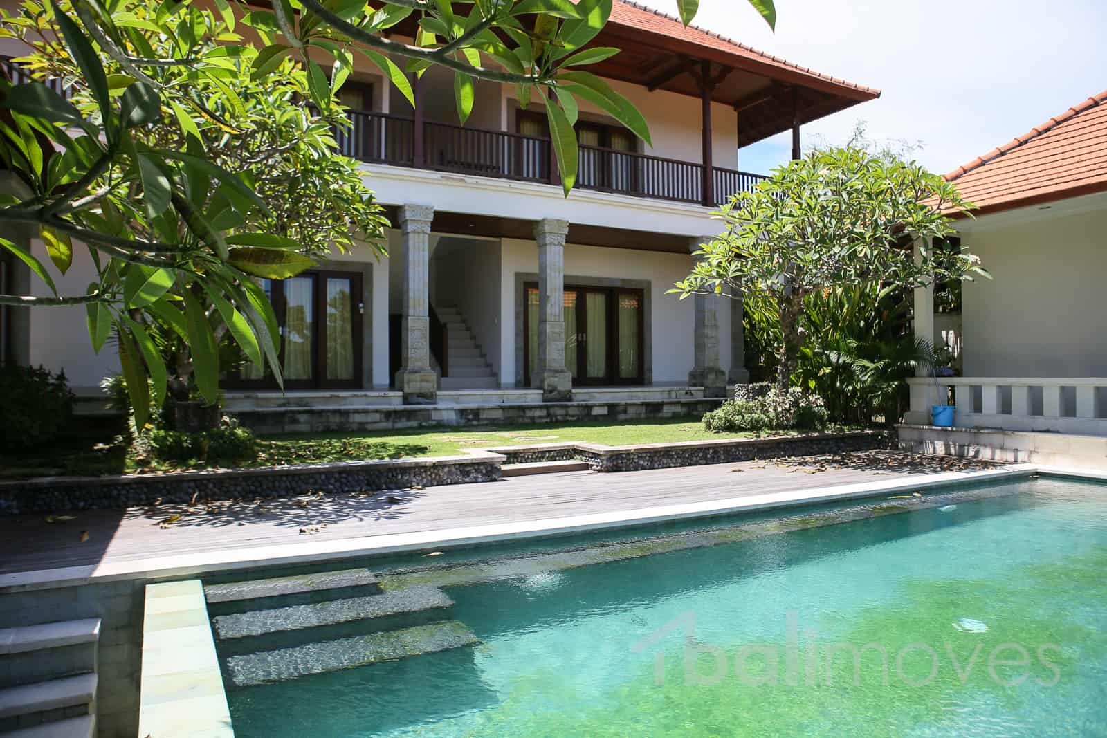 This villa is quite big. It has 4 bedrooms and 4 bathrooms, every room has the balcony. Stylish garage with a storage, a maid bedroom with bathroom, completed with big swimming pool in dimension 9x3m. Offers easy access everywhere, close to bypass and 8 minutes drive to Sanur beach. The villa was built on big land 500m2, the building size is 250m2, in modern design which is very white and bright.The garden is very beautiful, well arranged with the nice stone. We feel very comfortable with the good atmosphere here, quite and so breezy. Please contact us for visiting.