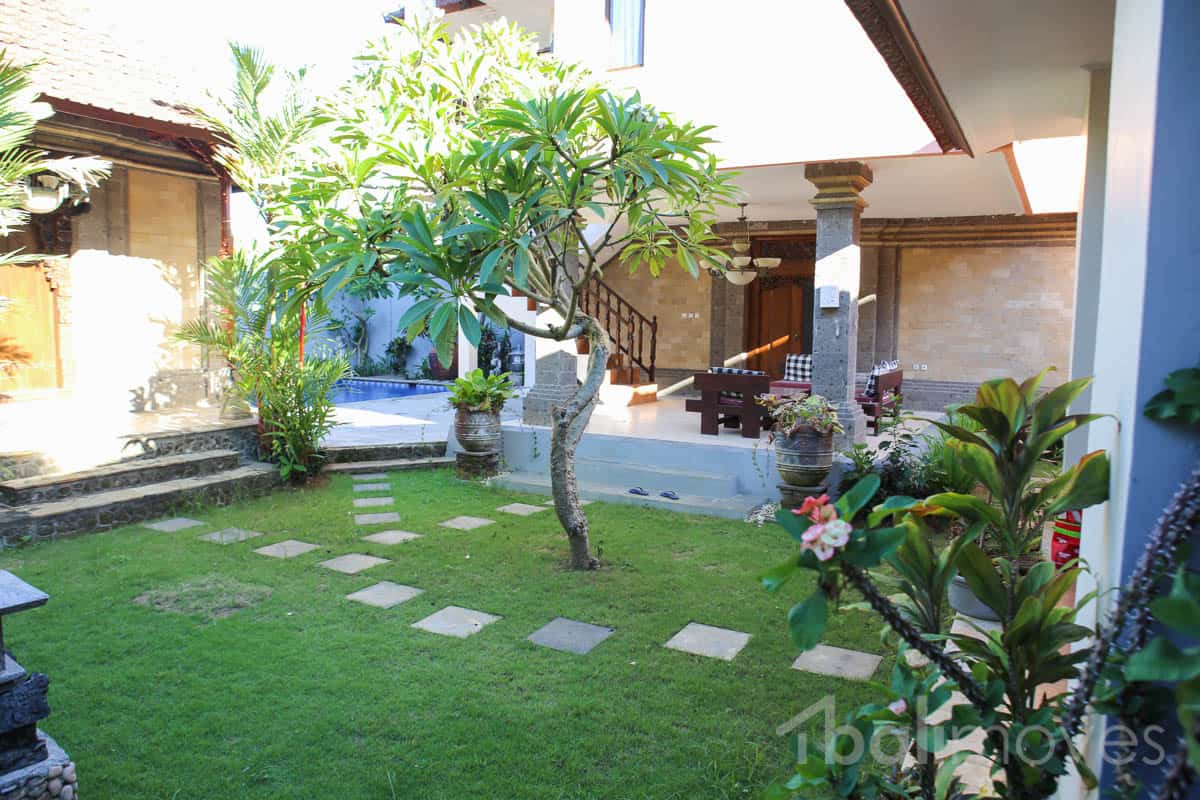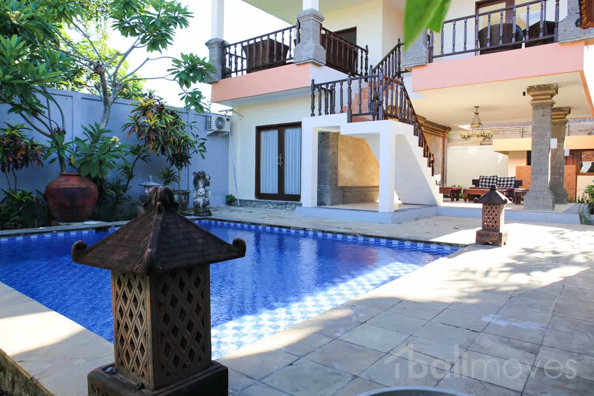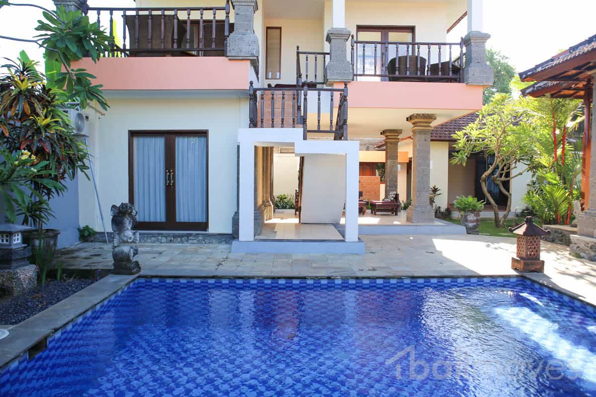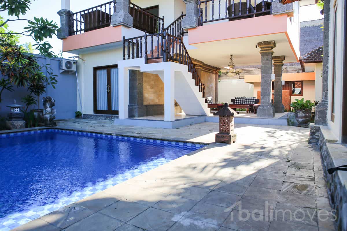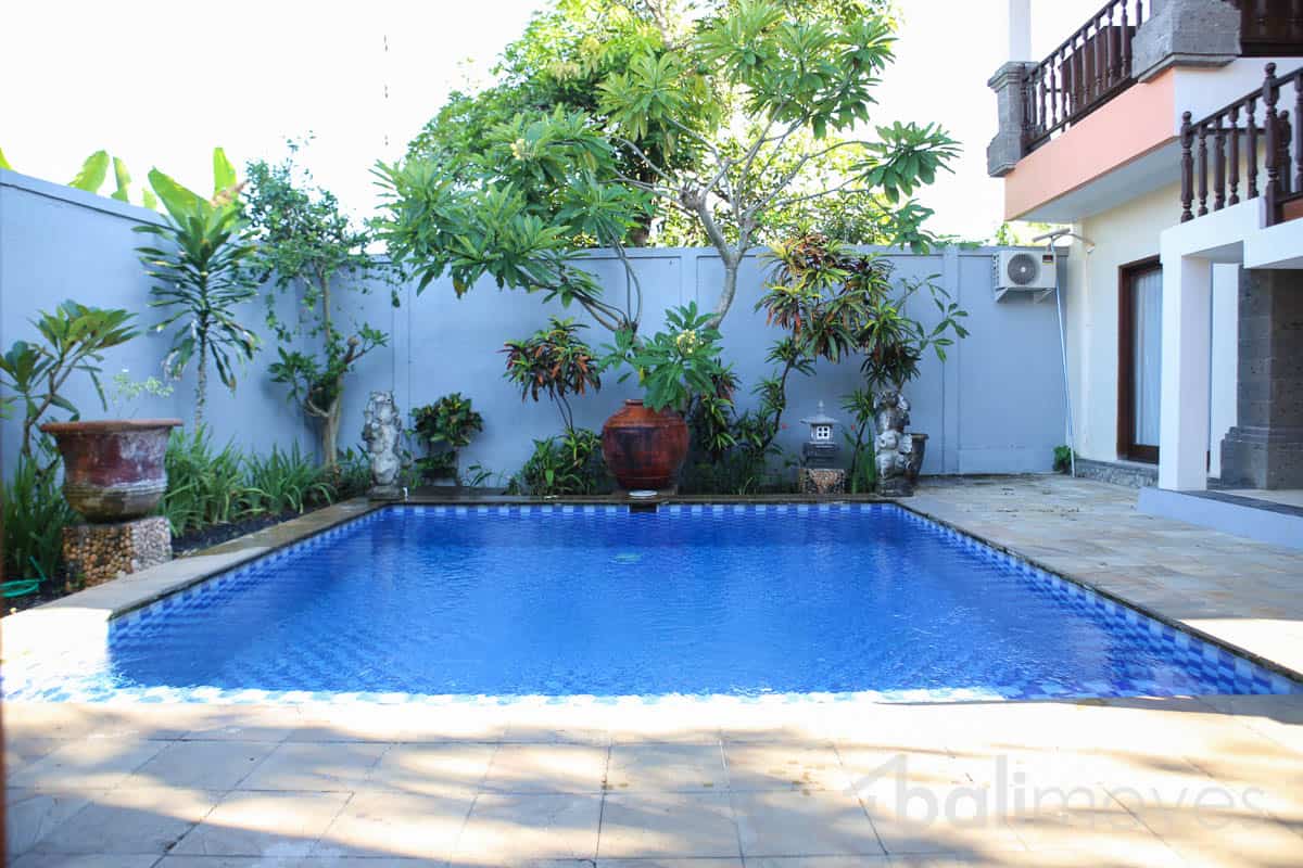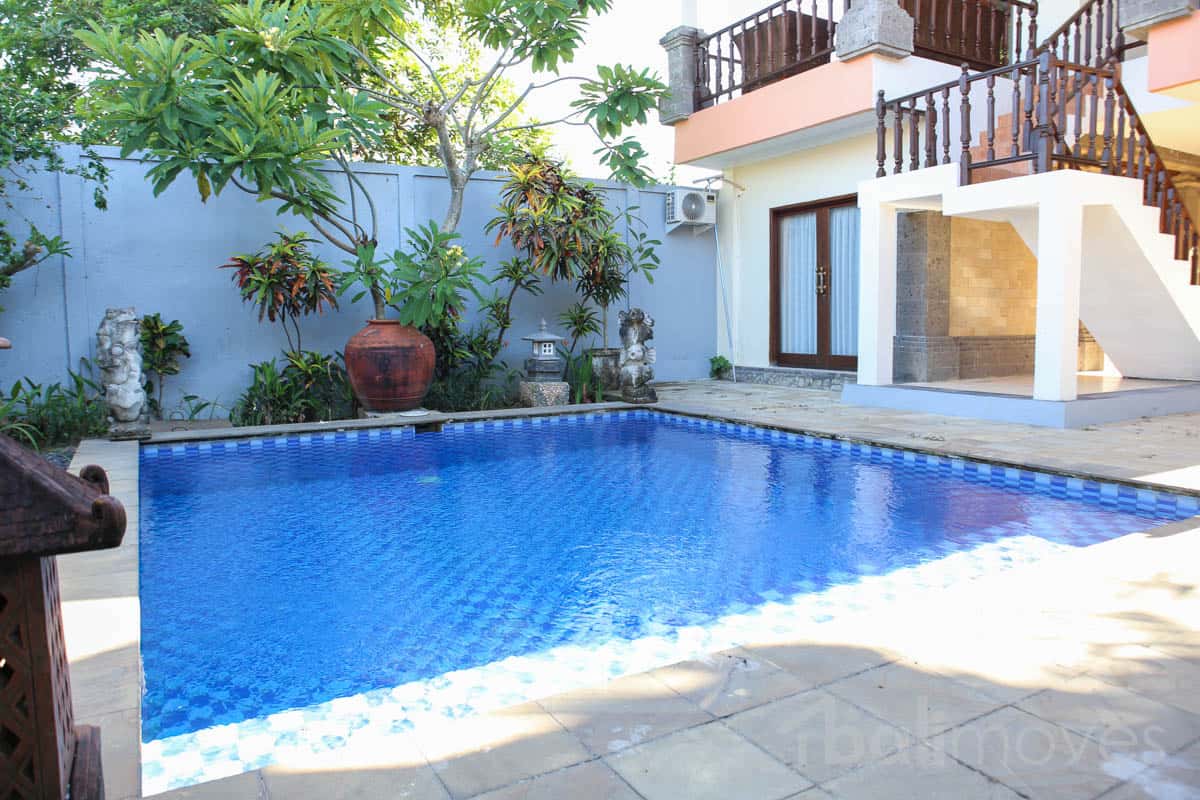 This is a very pleasant three bedroom property with a fair amount of space, large 5x8m pool, and open living and kitchen areas. Located in Padanggalak, north of Sanur along the Bypass. Quieter than Sanur, nice black sand beaches, easy access to the east coast (you’re on the east coast), and better value.