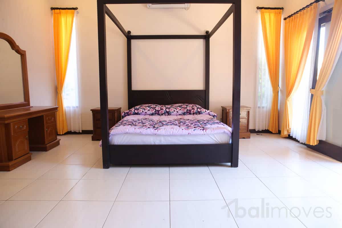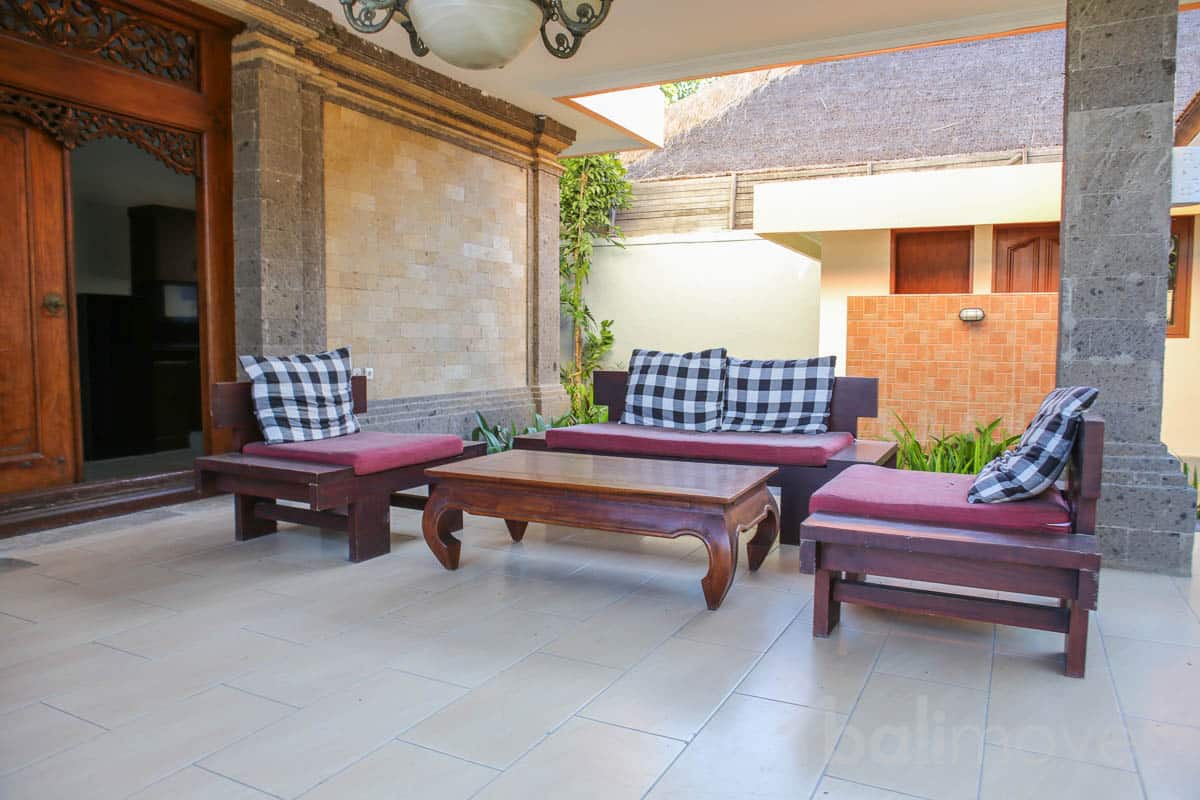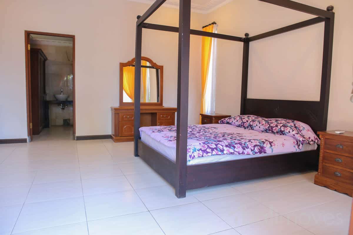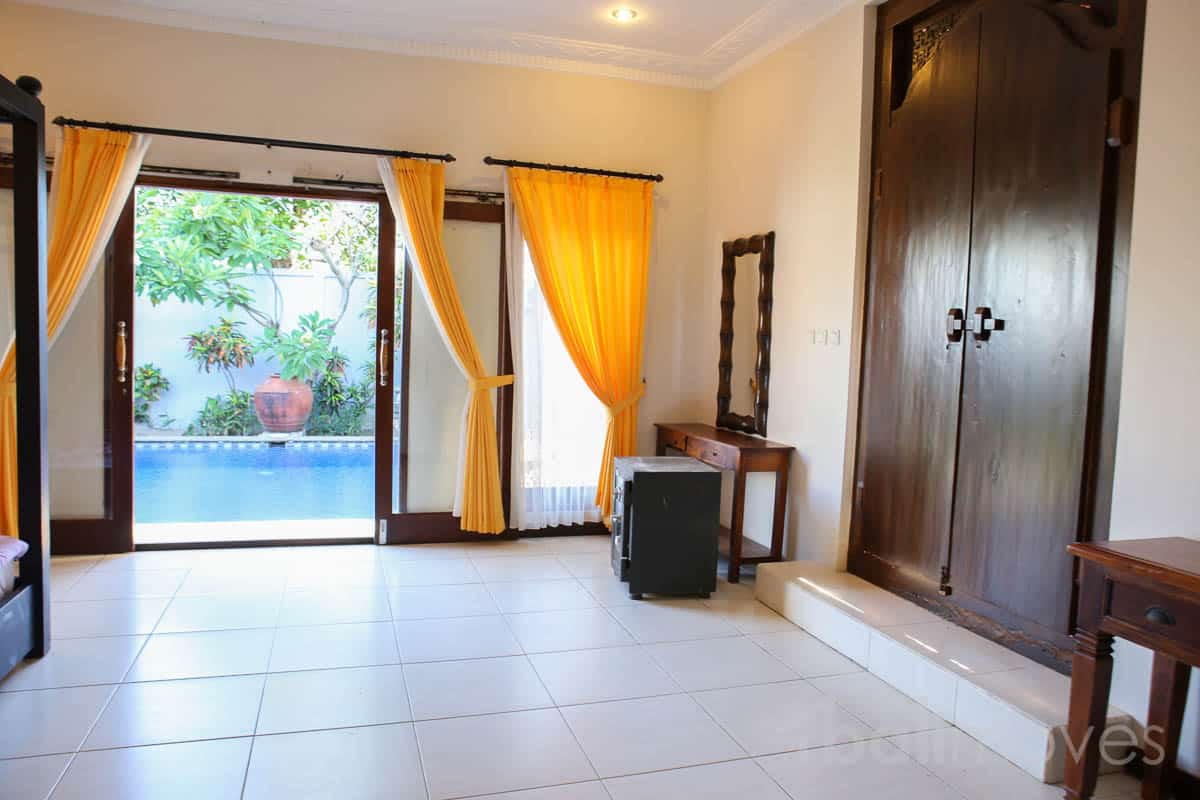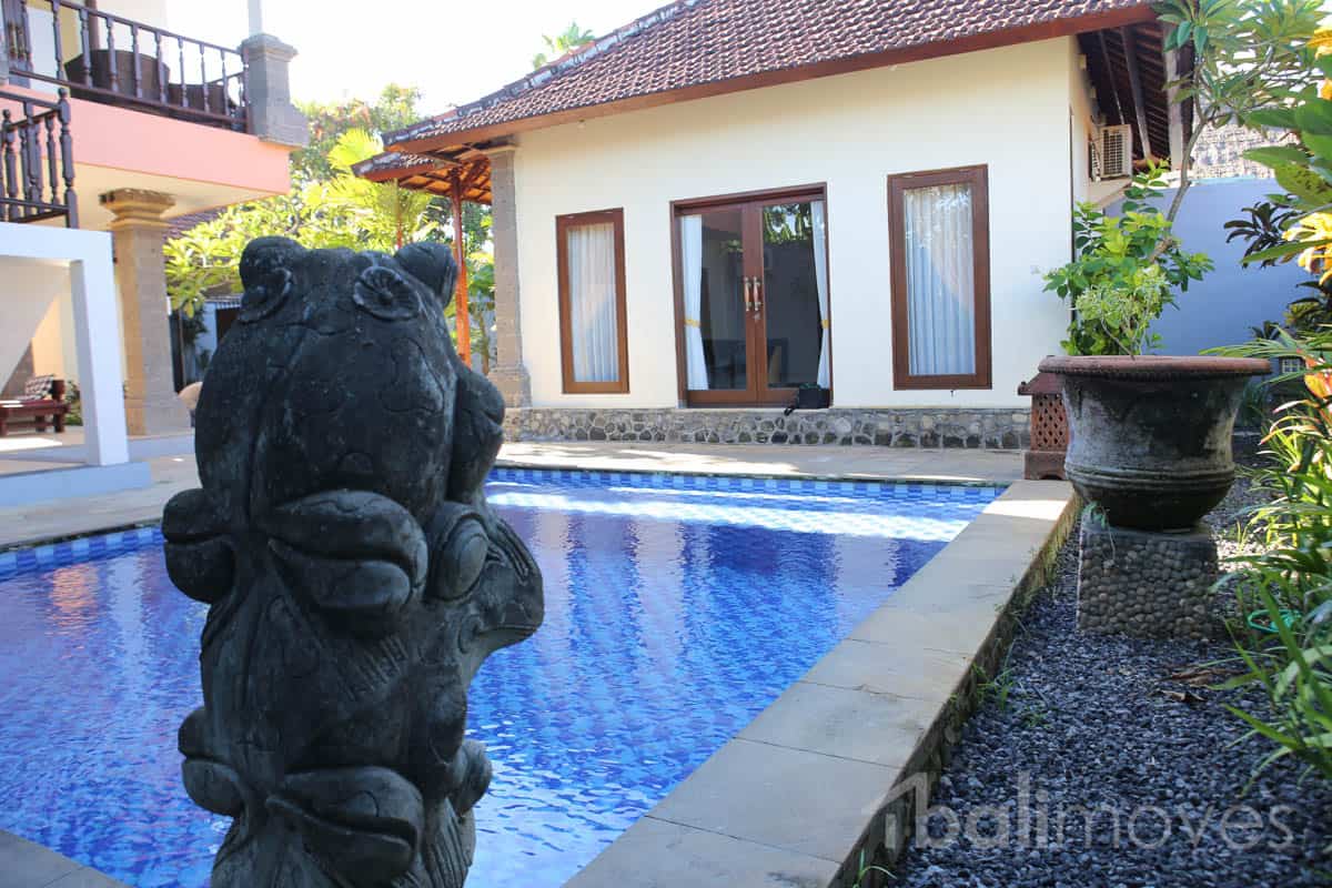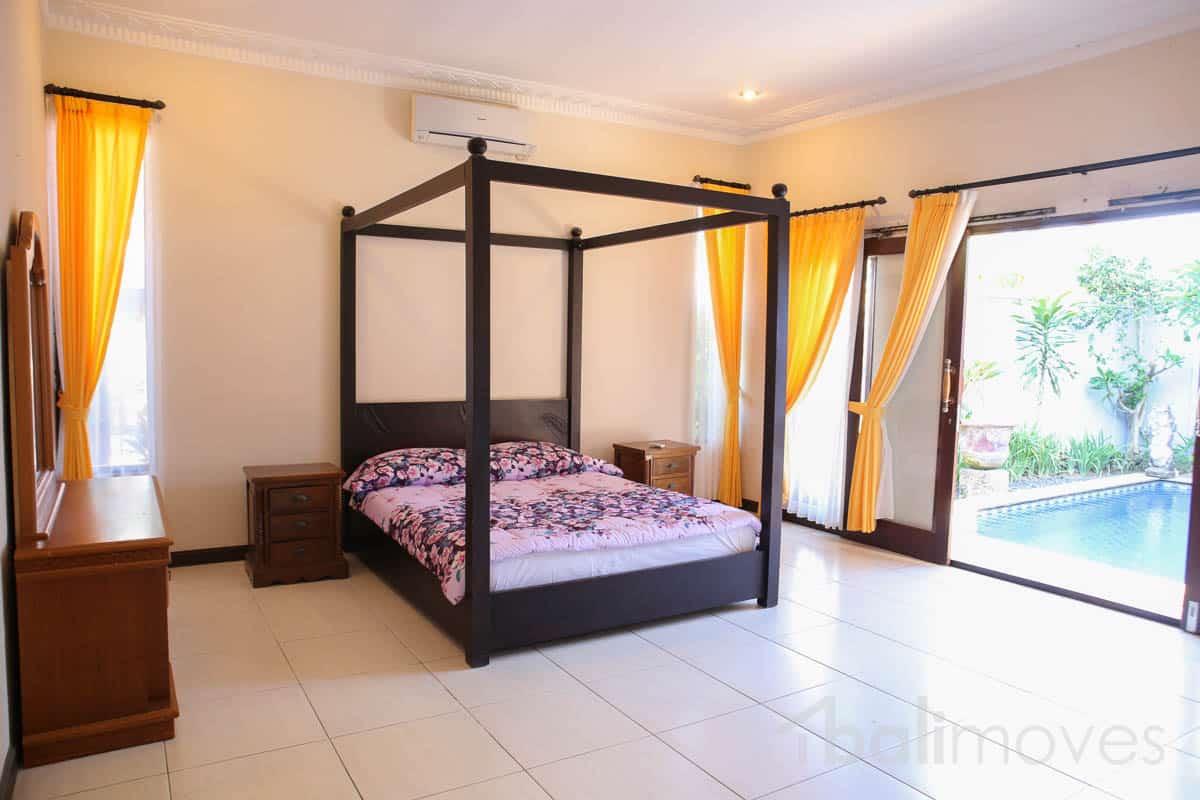 This is a very pleasant three bedroom property with a fair amount of space, large 5x8m pool, and open living and kitchen areas. Located in Padanggalak, north of Sanur along the Bypass. Quieter than Sanur, nice black sand beaches, easy access to the east coast (you’re on the east coast), and better value.