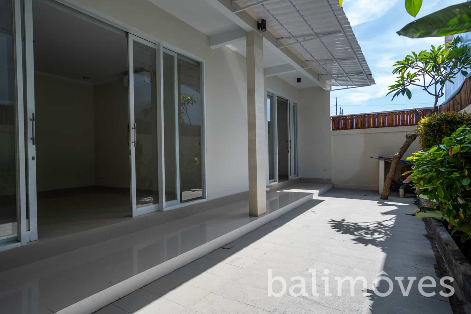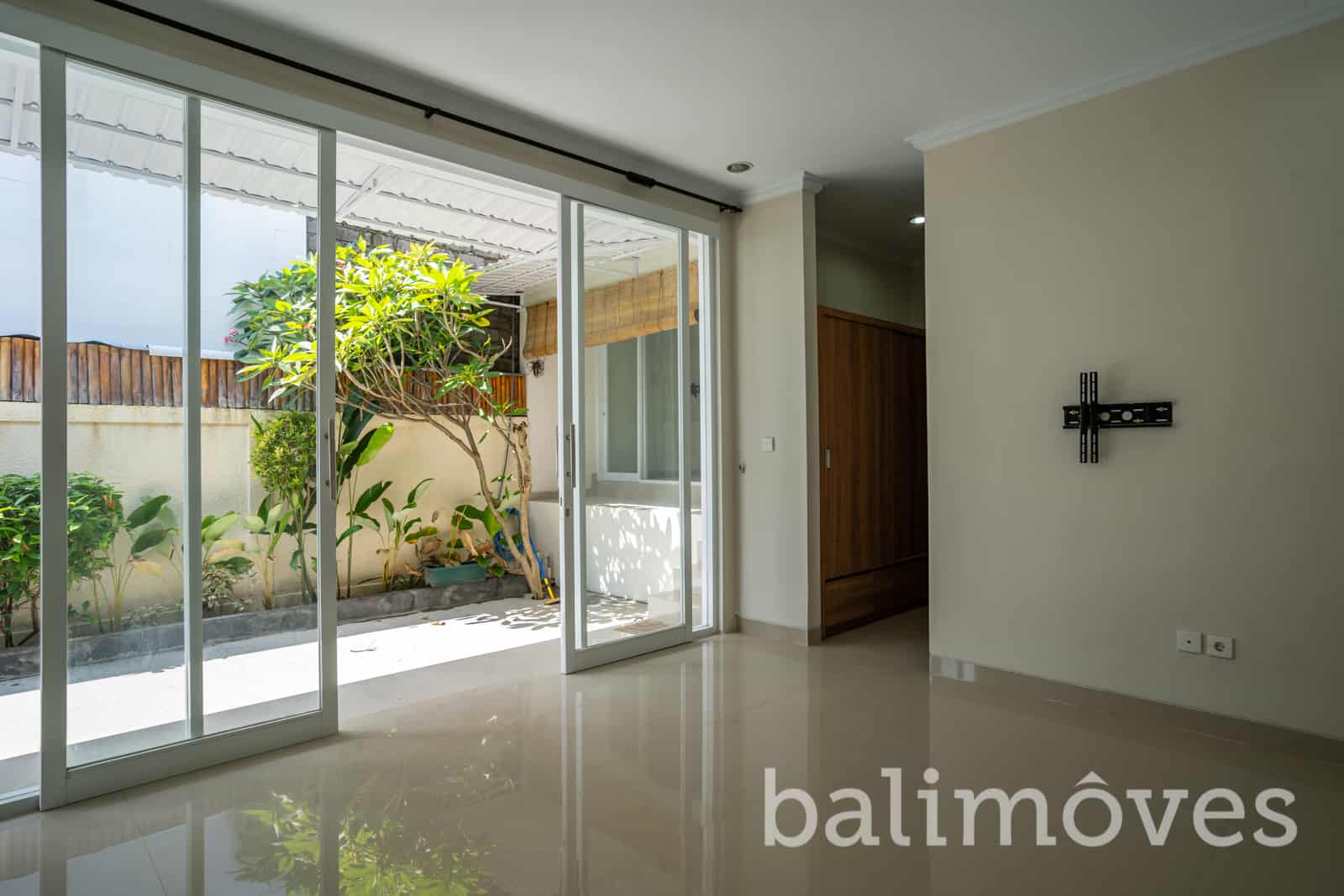 okay, this house is located near renon, but only 7 minutes to Sanur by motorbike. Clean, minimalist, bright and tidy. You can see in the photo there are stairs, but only access to xtra space that you can use to put things or what you need :D. This house is only 1 floor, with 2 bedrooms and 2 bathrooms. also equipped with 1 maidroom. Offered Unfurnished.
