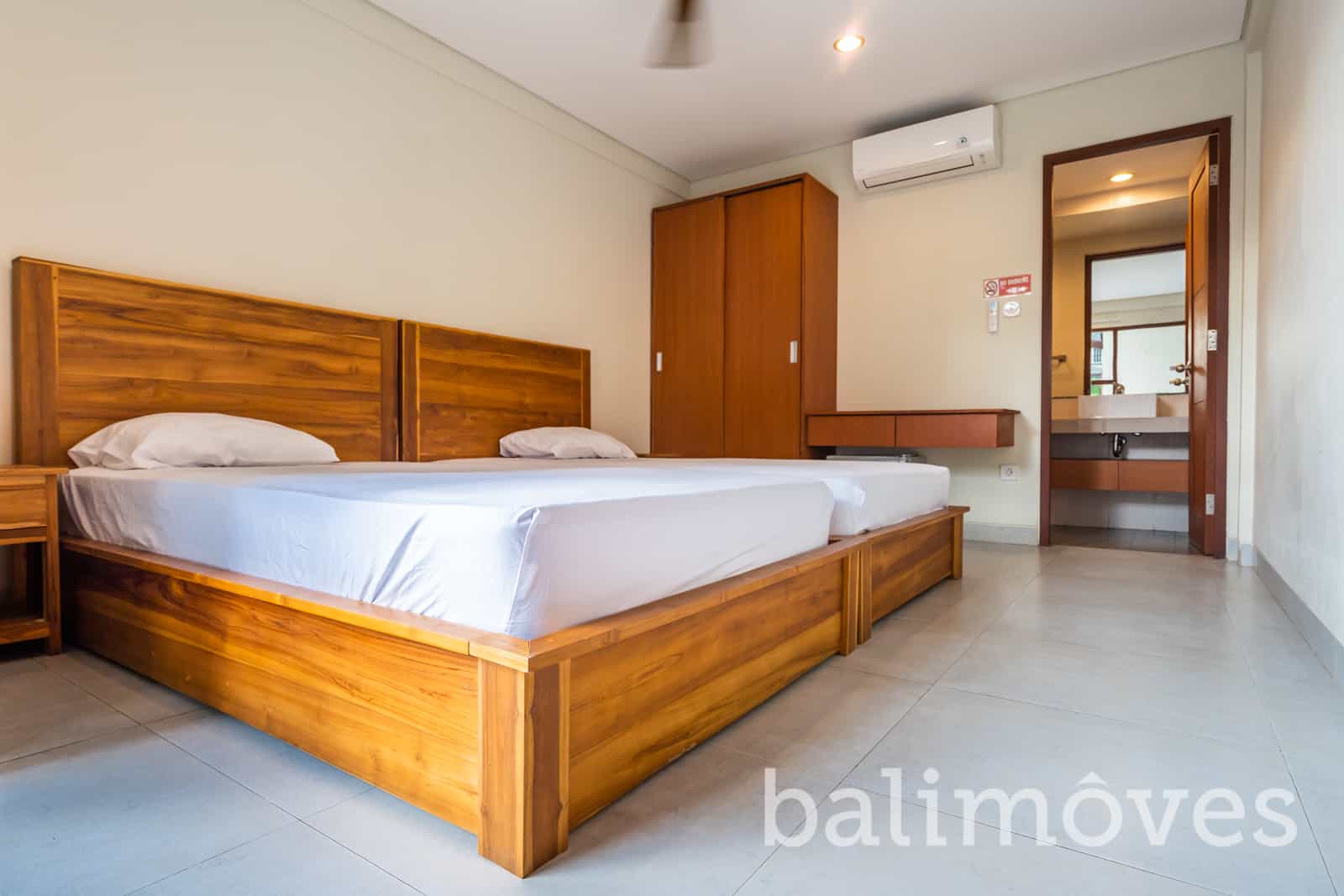 Built on a land area of 218m2, this apartment consists of 4 bedrooms upstairs, and 4 bedrooms downstairs, where each room is equipped with an en suite bathroom. Not only that, this apartment has one spacious room which is usually used for yoga. Downstairs there is a shared kitchen and a shared dining table. Offered with furniture, this apartment is equipped with 1 washing machine, 9 AC, HOB, Fridge, Freezer, and kitchen set. As you can see in the picture, this apartment also has a beautiful and well-maintained pool.