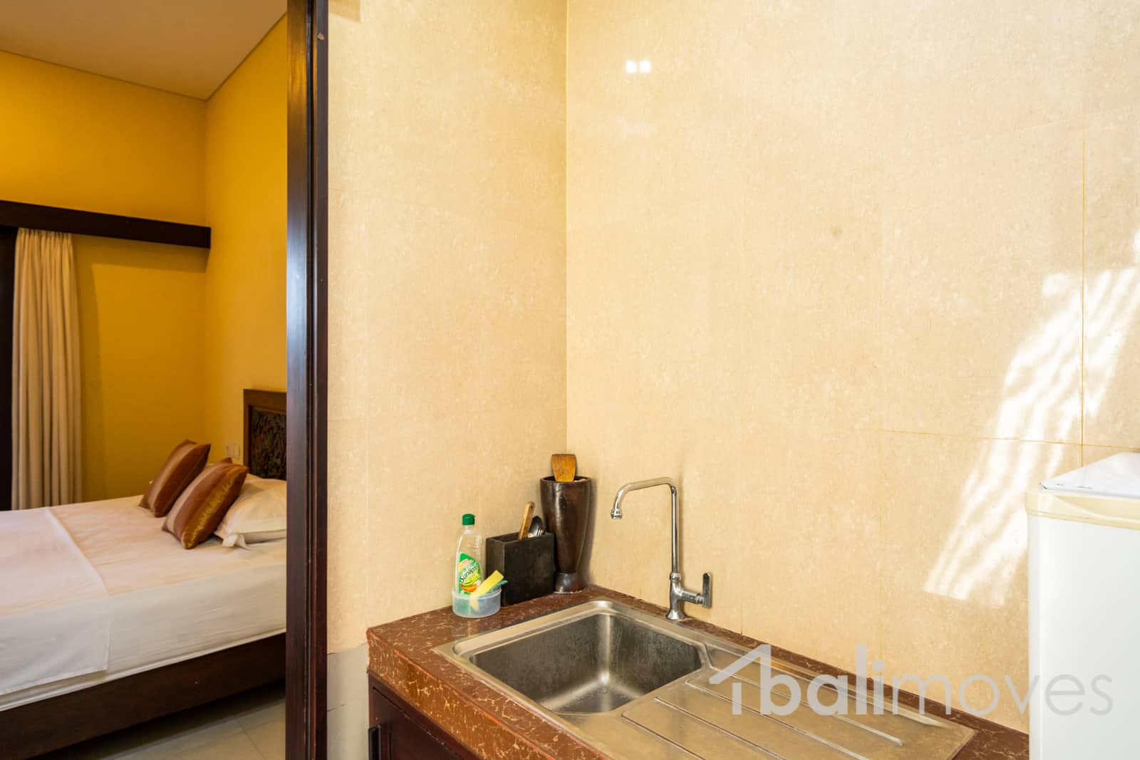 The apartment is located on the west side of the Bypass near Jln Betngandang. It is a super cozy apartment with a cheap price on the monthly rental term. The total land is 600 m2 and the dimension per room is 4 x 4 meter. Each room on this apartment designed as a relaxing living, quiet, modern and bright, they have a small separated kitchen for you who love to have a light meal by your own self.