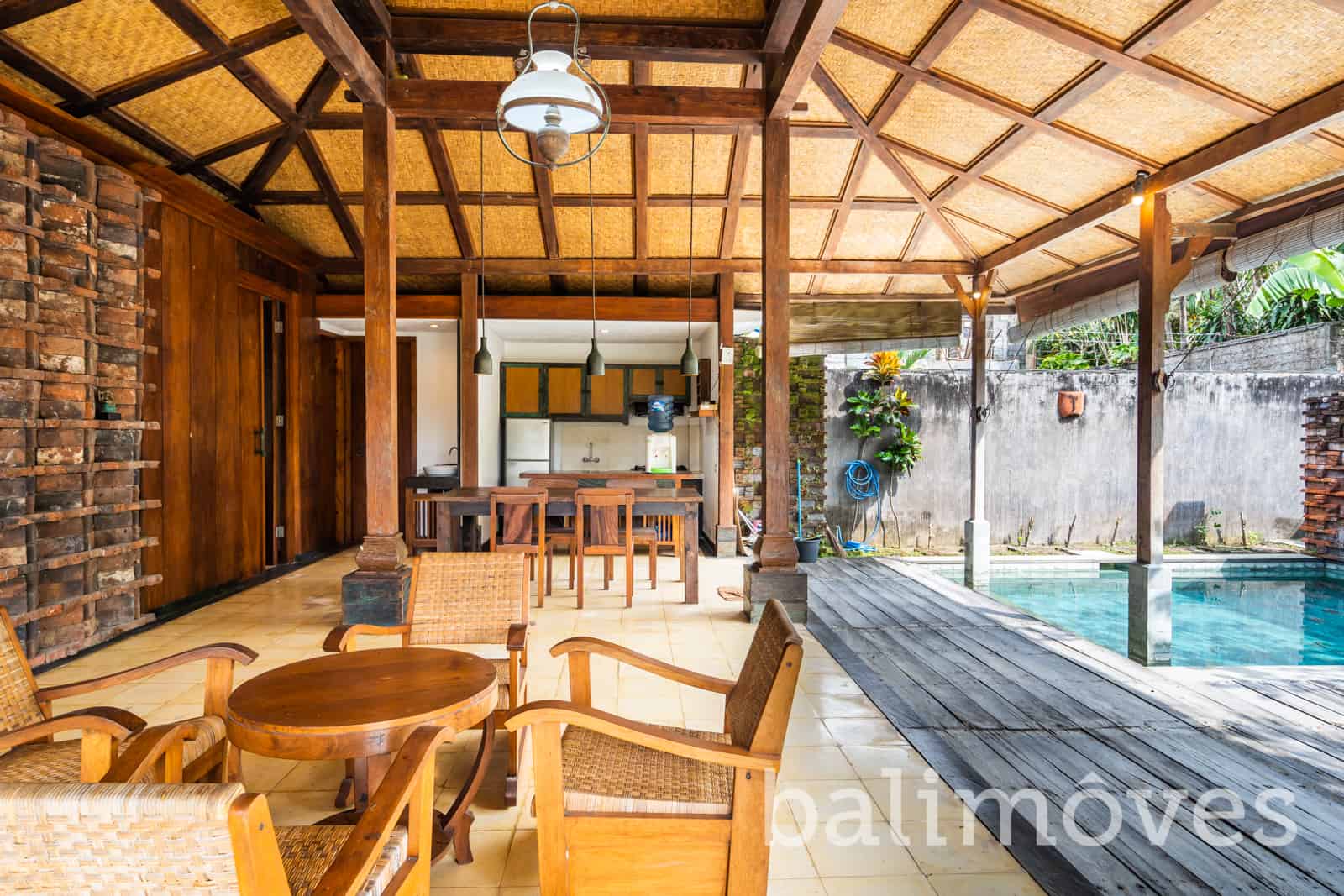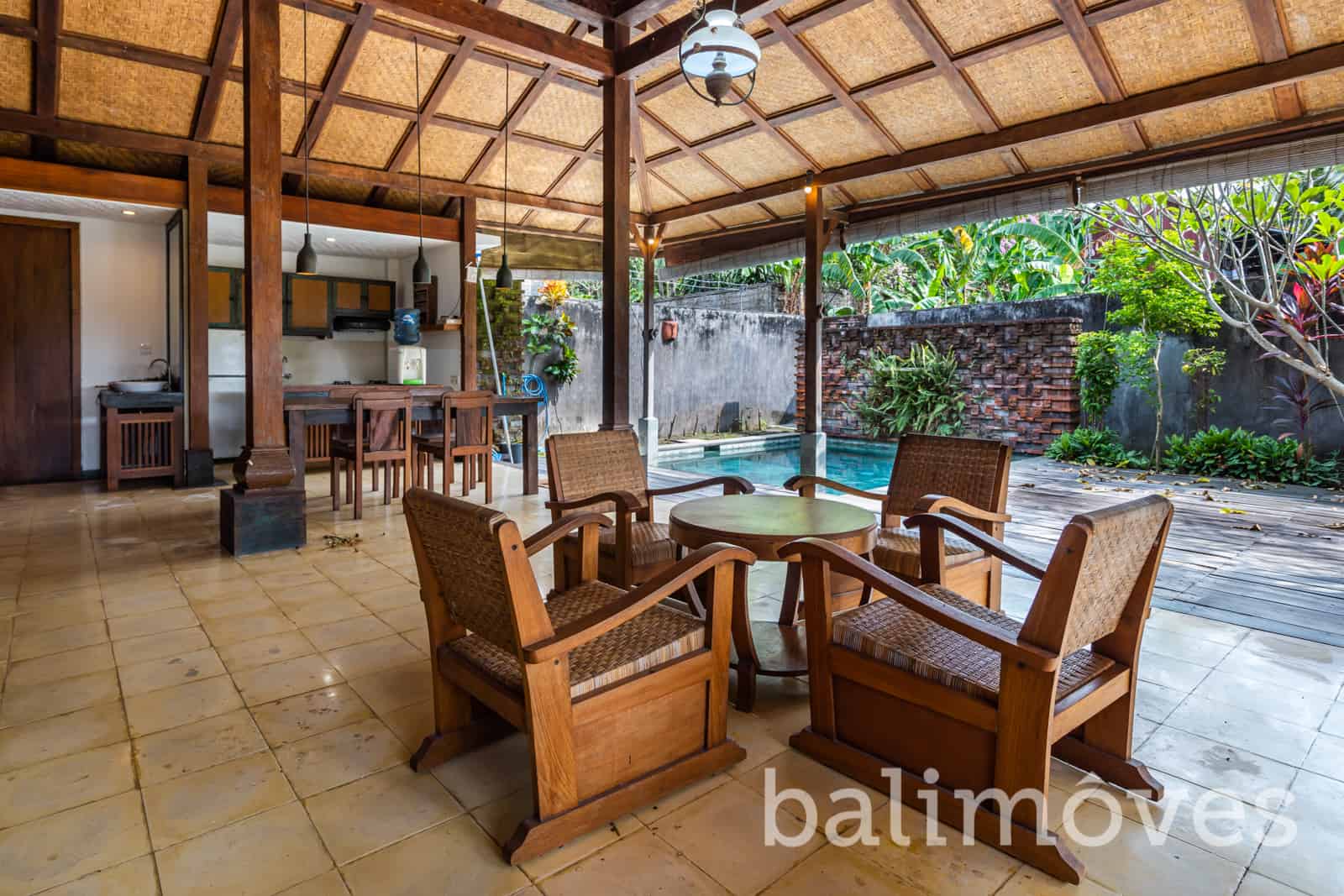It has a traditional joglo style, with full of wooden furniture all over the area. It is an open living villa with a 2 bedrooms & 2 bathroom which only has a 300 m2 land & 225 m2 building size. Even this villa is not a big one, it still gives you an amazing experience to stay.