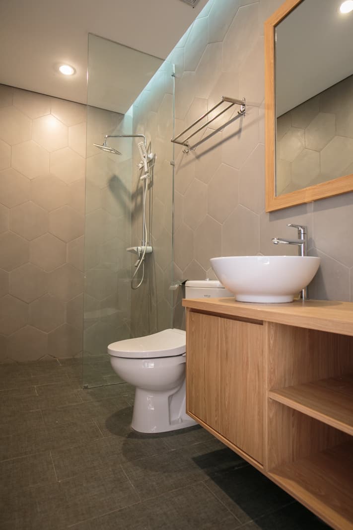It is a 2 floor building, the main 2 bedrooms & 2 bathrooms are located on the 2nd floor, and there is only 1 bathrooms on the 1st floor. The concept of this building is very great, it feels very comfortable to stay on this cute one. They surely done a very great job at designing this one. The furniture selection and the tone of the paint makes a great balance, although the rooms are not really big.