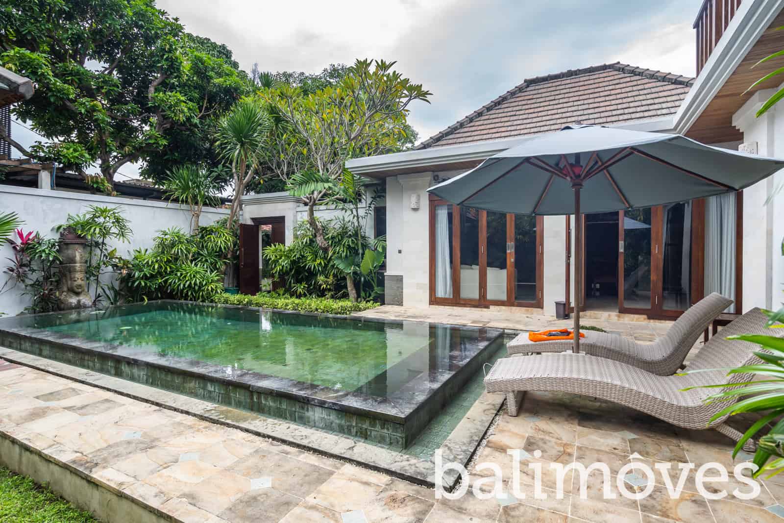 The villa was built in 325 m2 land & 200 m2 building size, it is consist of 2 great bedrooms & 3 nice bathrooms, other featured by the villa is a maid quarter, western standard kitchen set, 7000 watt electric power, 1 car parking space.