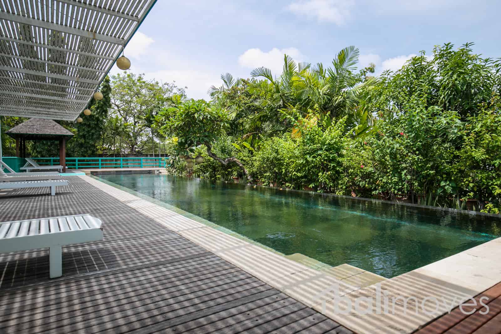 This apartment was built on 350 m2 land, 250 m2 building size and consist of 2 bedrooms & 3 bathrooms, a storage, a maid quarter. The architect of this villa complex had an amazing work, they designed this place with great idea and give a strong relaxing atmosphere. On the inside of the villa, the furniture are in tune with the paint on each floor and on each rooms. It also featured with a 7700 watt electric power, PDAM, parking lot, and a shared pool.