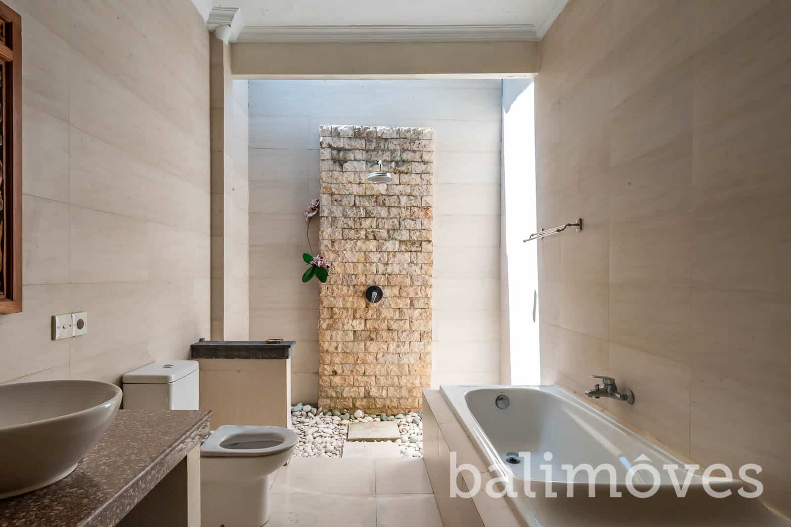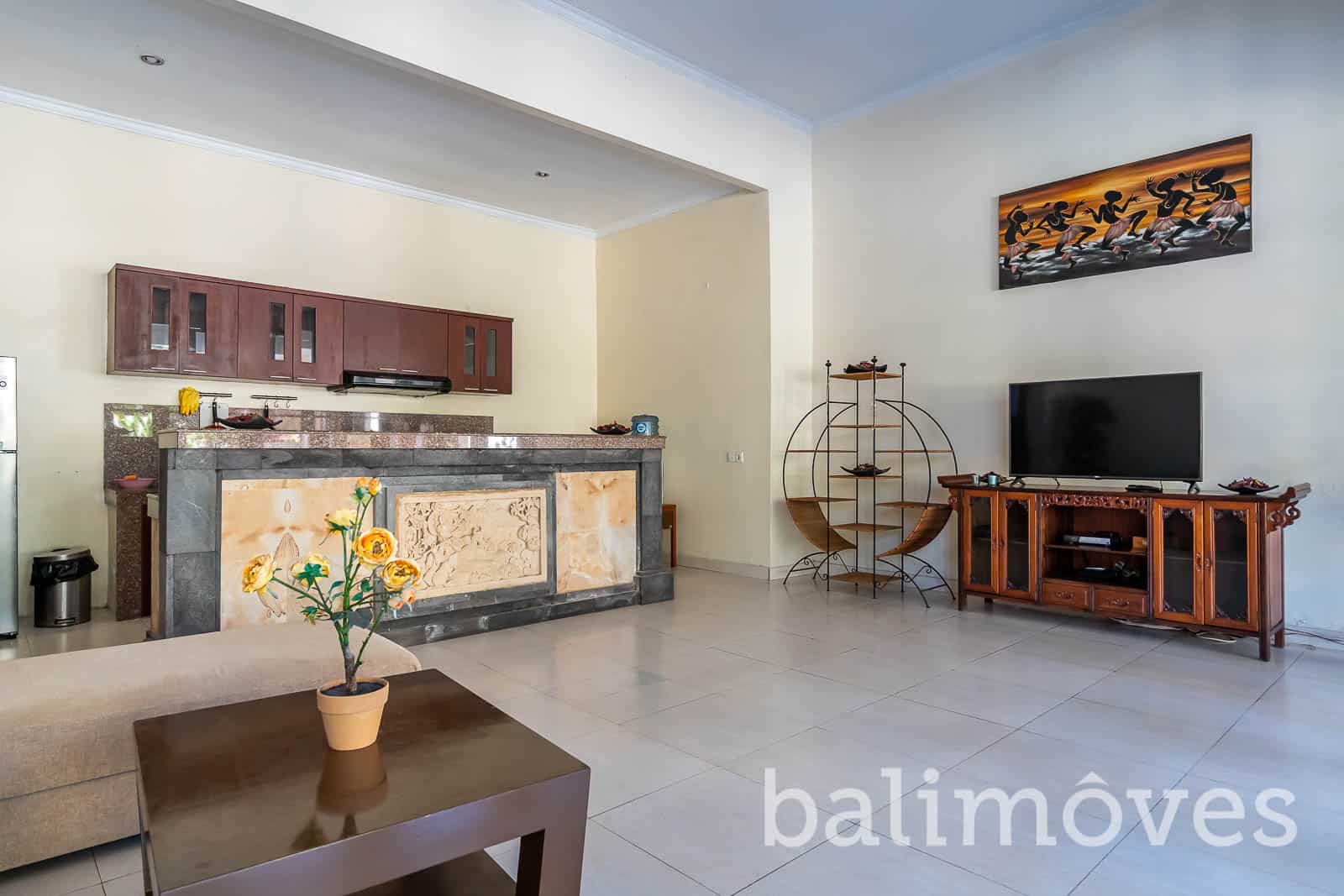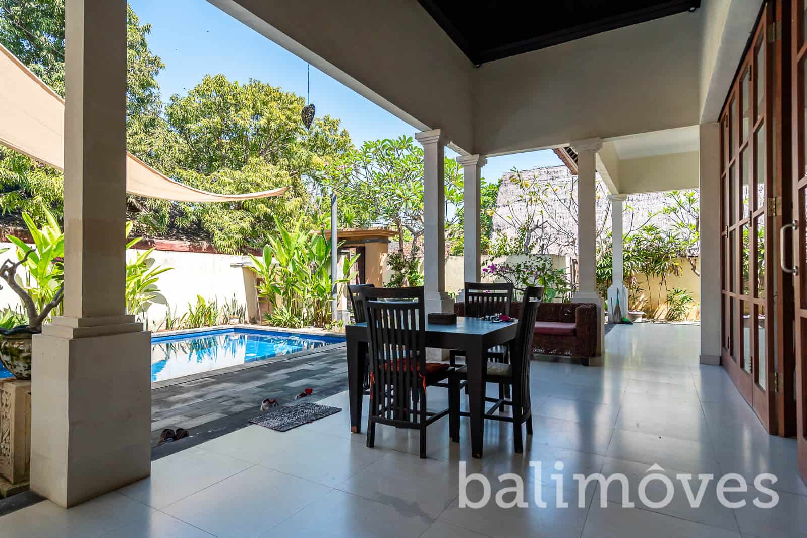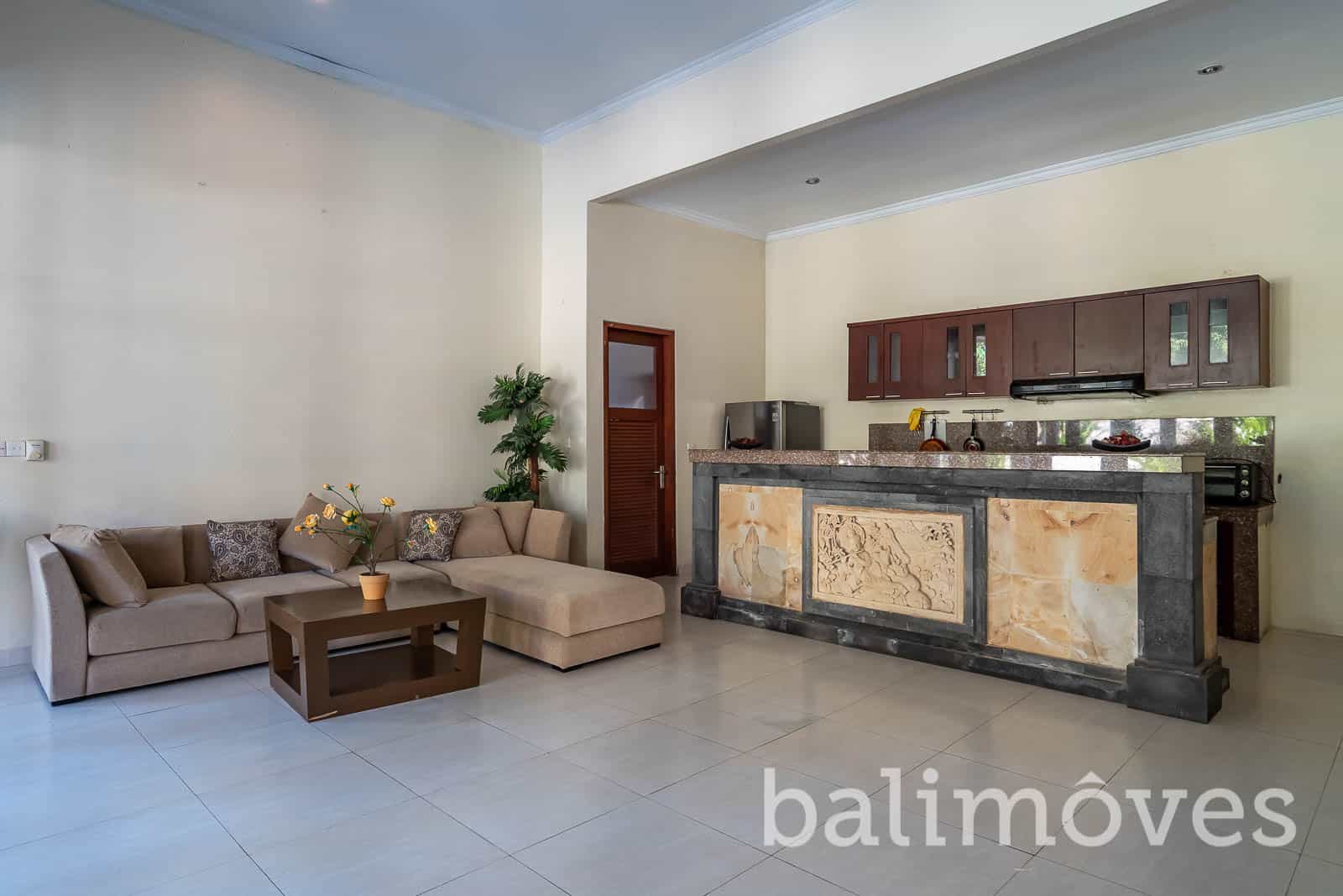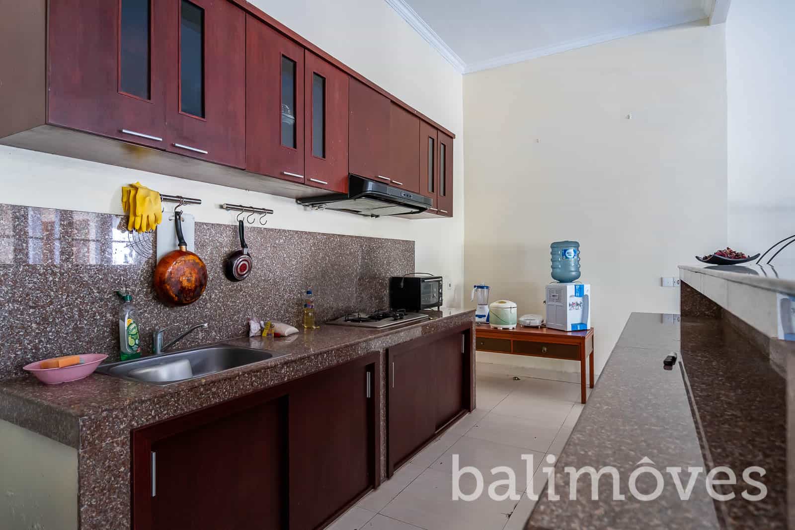 The villa designed with modern style but even so this villa is more like a residence living than a hotel. It was built on 400m2 land & 200m2 building size it has three bedroom with ensuited bath. The rooms doesn’t have access to the living room and the kitchen except the master bedroom. There is a maidroom with bath on the backyard of this property it is offers furnished as on the pictures and others features you will get are: