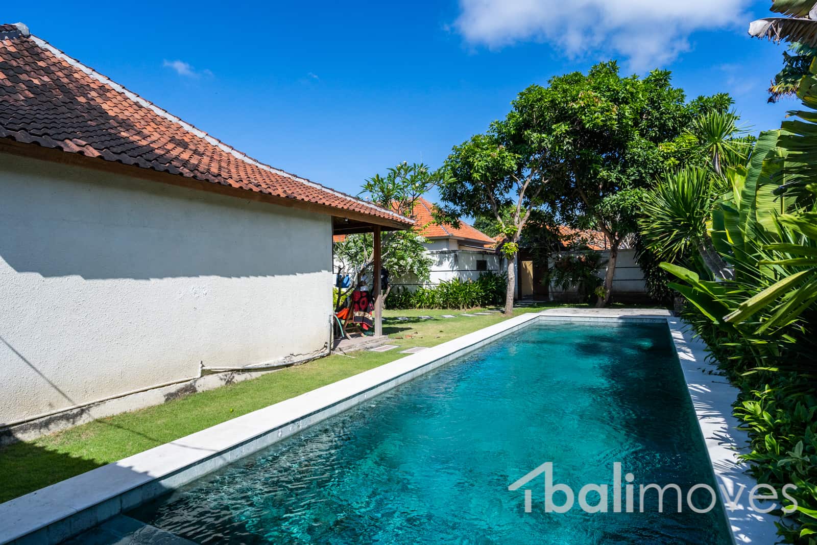 The house is located on the beachside area of Sanur, it only 5 minutes walking distance to the beach ( Semawang or Mertasari ), there are many restaurants, local shops, mini market nearby of this property. The property was built on a medium 600 m2 land & 200 m2 building size, it is designed as an open living with big garden which very nice for a beachside area property.