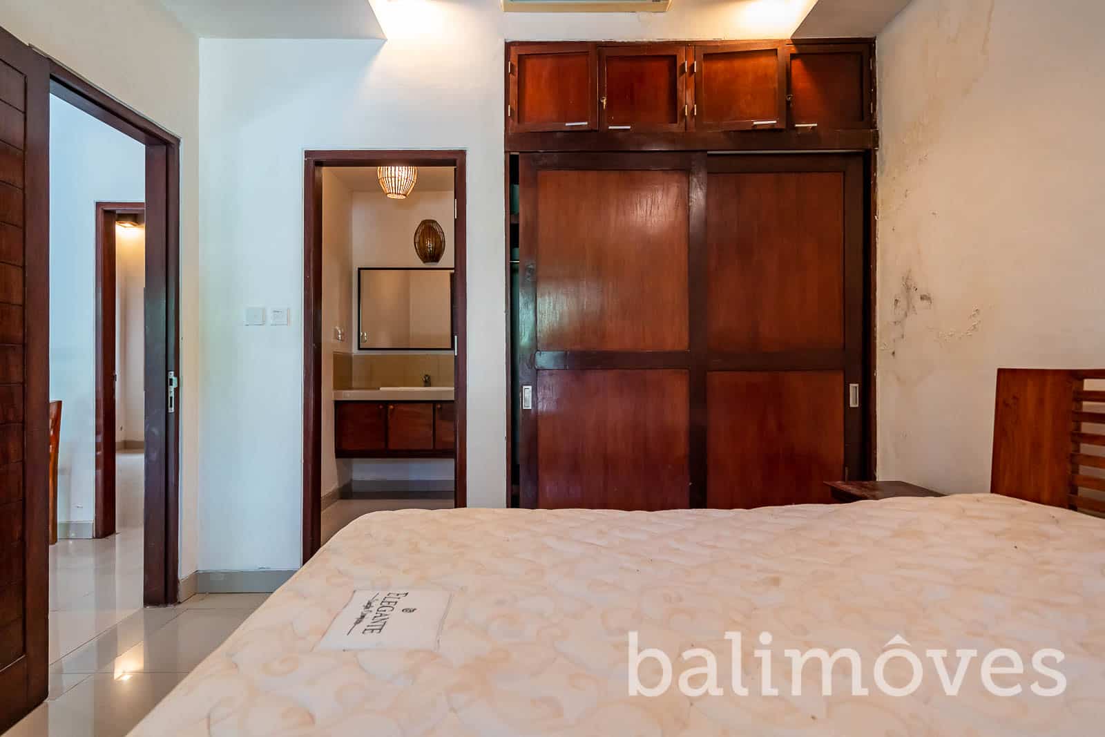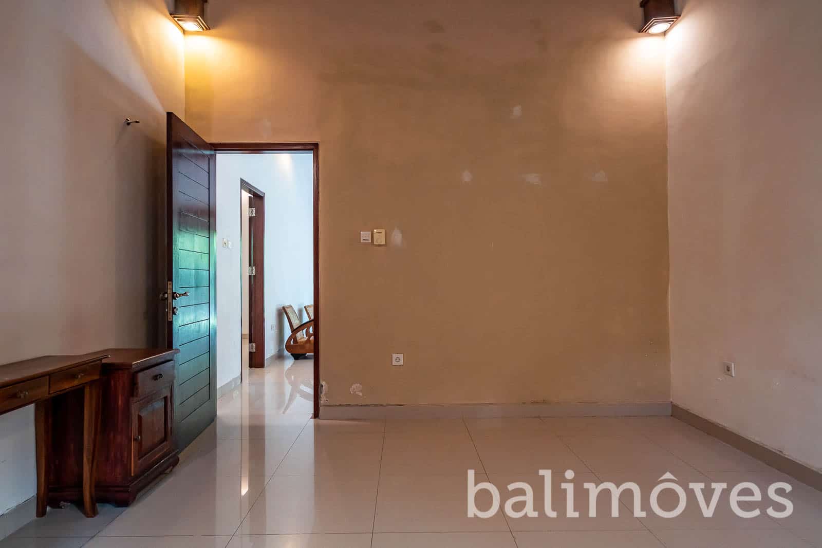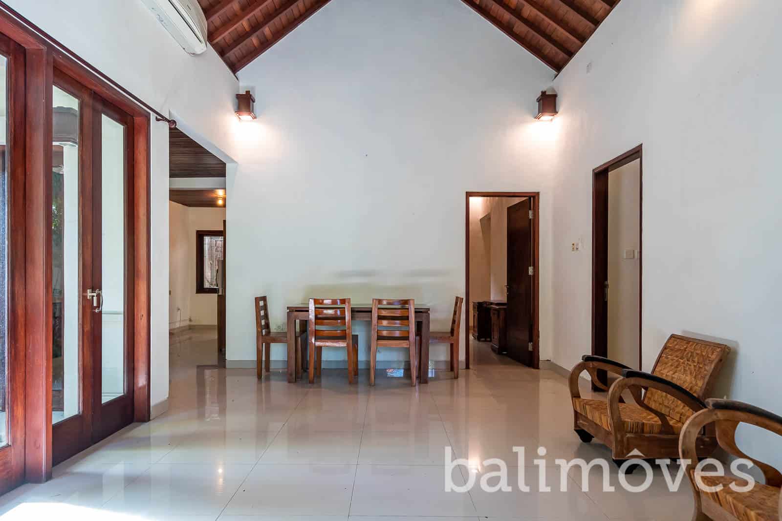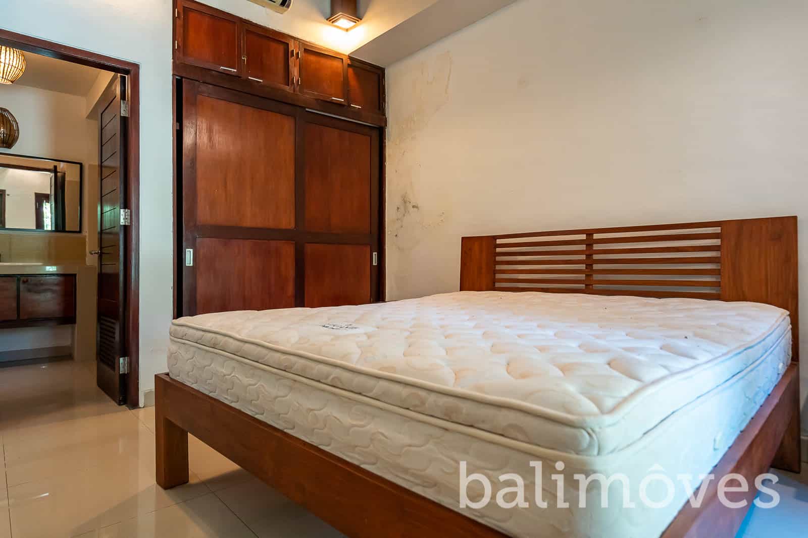 Inside the property it has designed with modern and minimalist concept with two bedroom and two bathroom. the big doors and windows on the living area make this villa looks bright specially in the morning time. The villa is is still in a good condition and maintenance well by the owner but if you wants to make the villa looks fresh again you just need to repainting the walls little bit, make the swimming pool and the yard alive again. this property is suitable for a couple or a little family