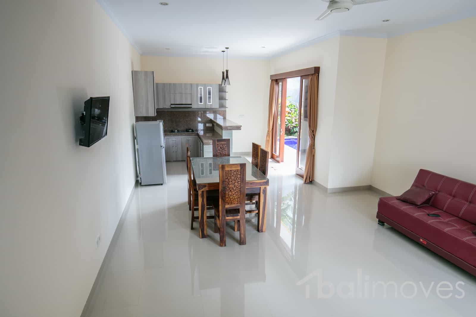 3 bedroom, 4 bathroom, 1 maidroom + 1 maid bathroom. only 5 minutes to the Mertasari beach using a motorcycle by crossing the bypass. Built on 200m2 land with 180m2 building. offered furnished included hob, refrigerator and western standard.