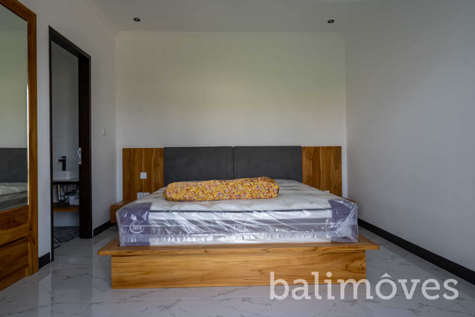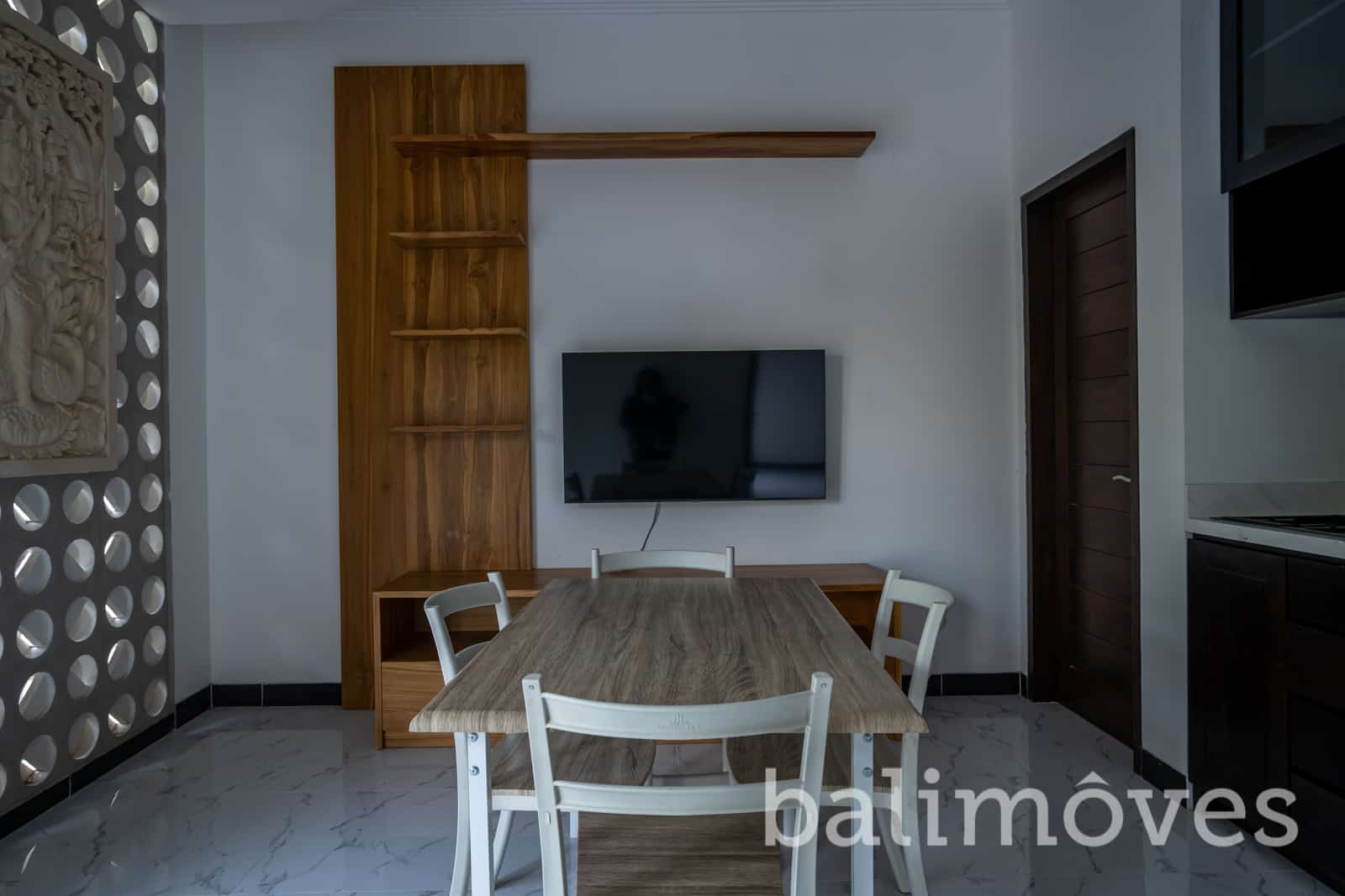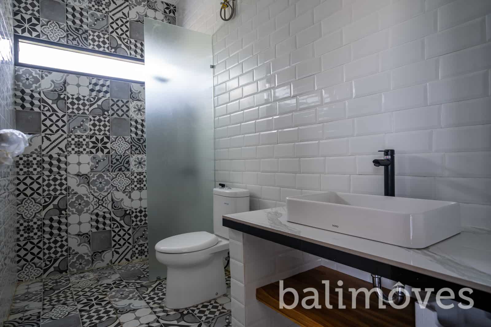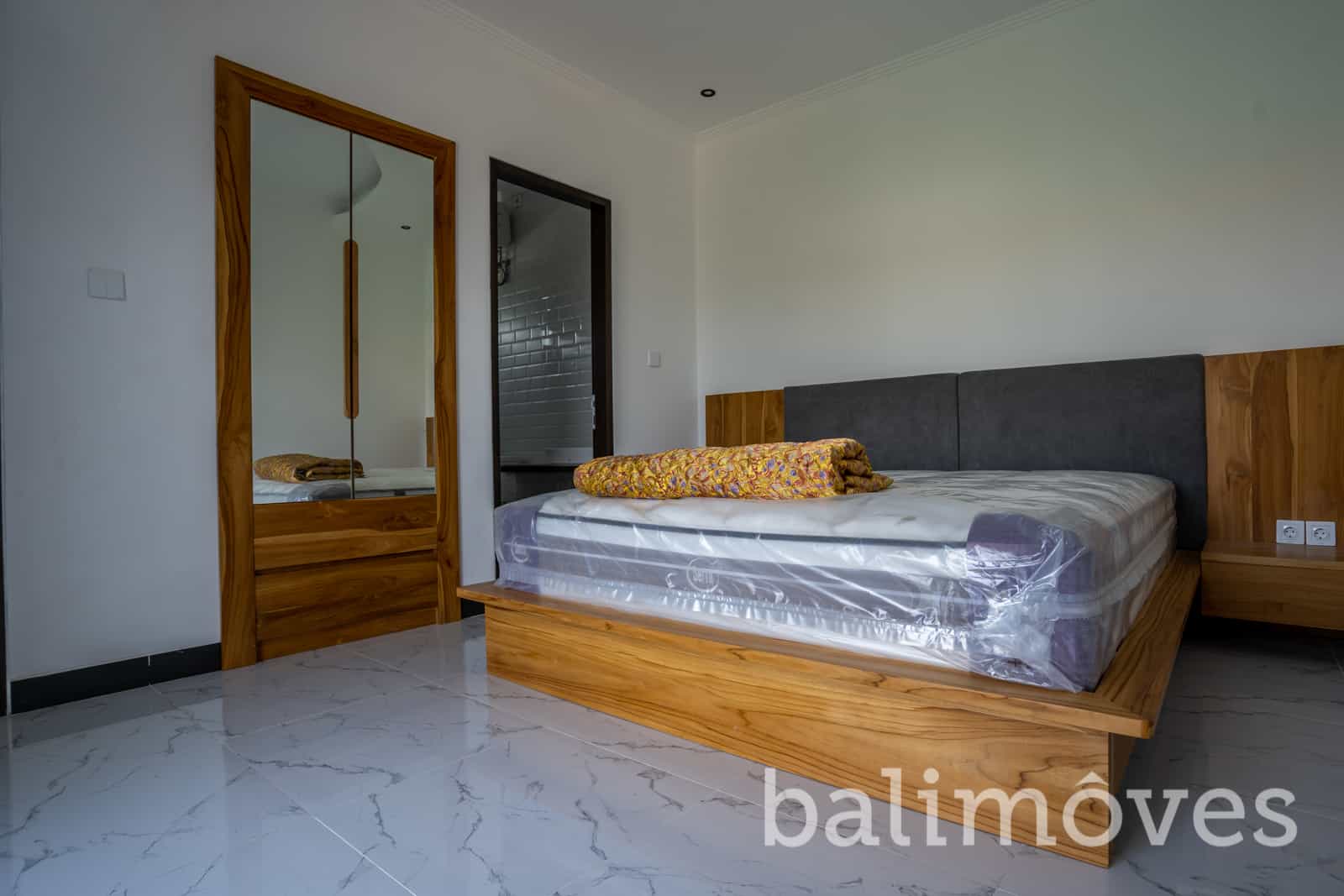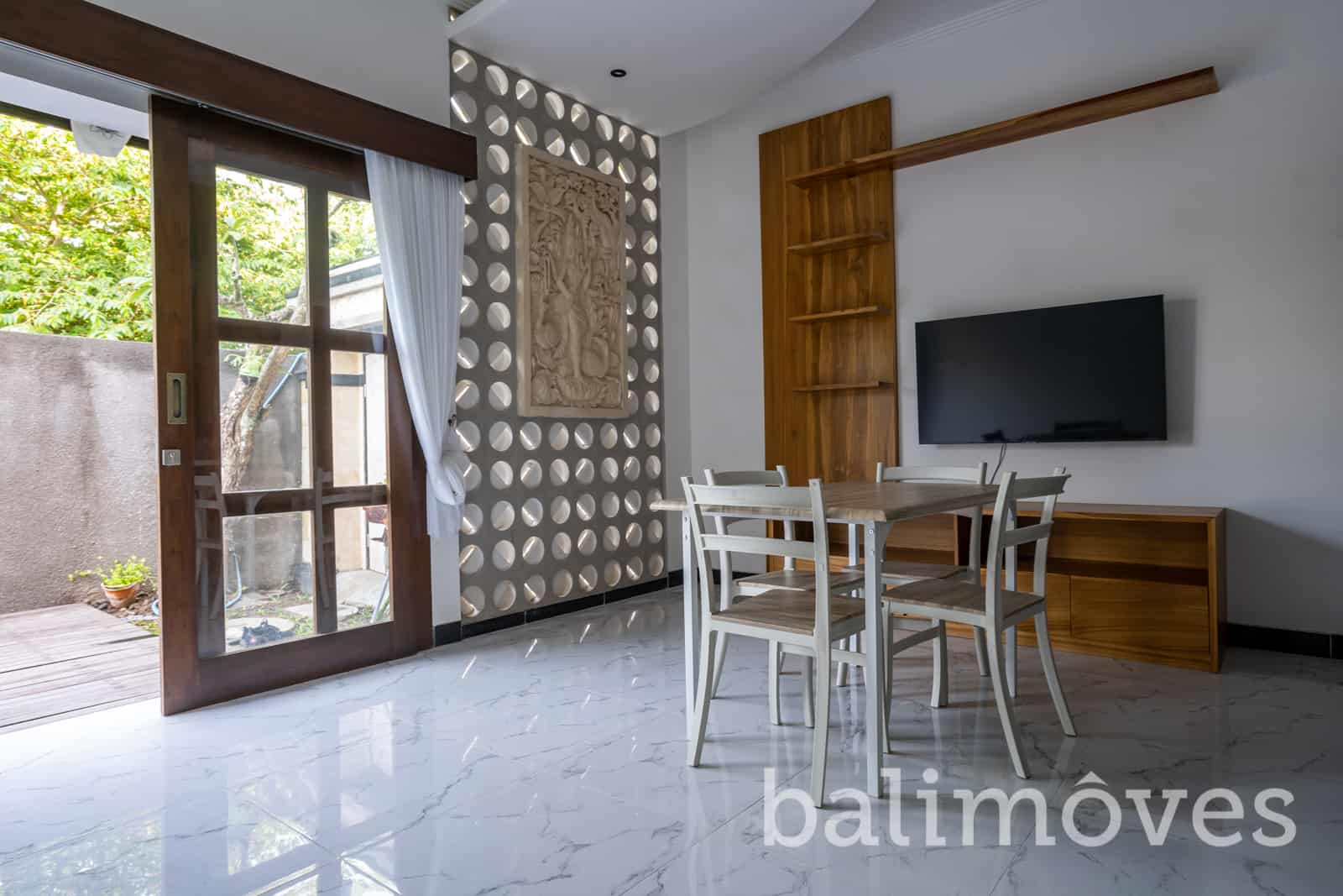 The land area is only 80m2 and equipped with a swimming pool? Yes. This house has a minimalist style. small land is arranged in such a way that it is very effective. This villa is brand new, located in a new villa area on the beachside sanur. 2 bedrooms, 3 bathrooms, equipped with a 5×2,5m swimming pool. Offered furnished included 2 AC, 2 TV, HOB, and fridge.