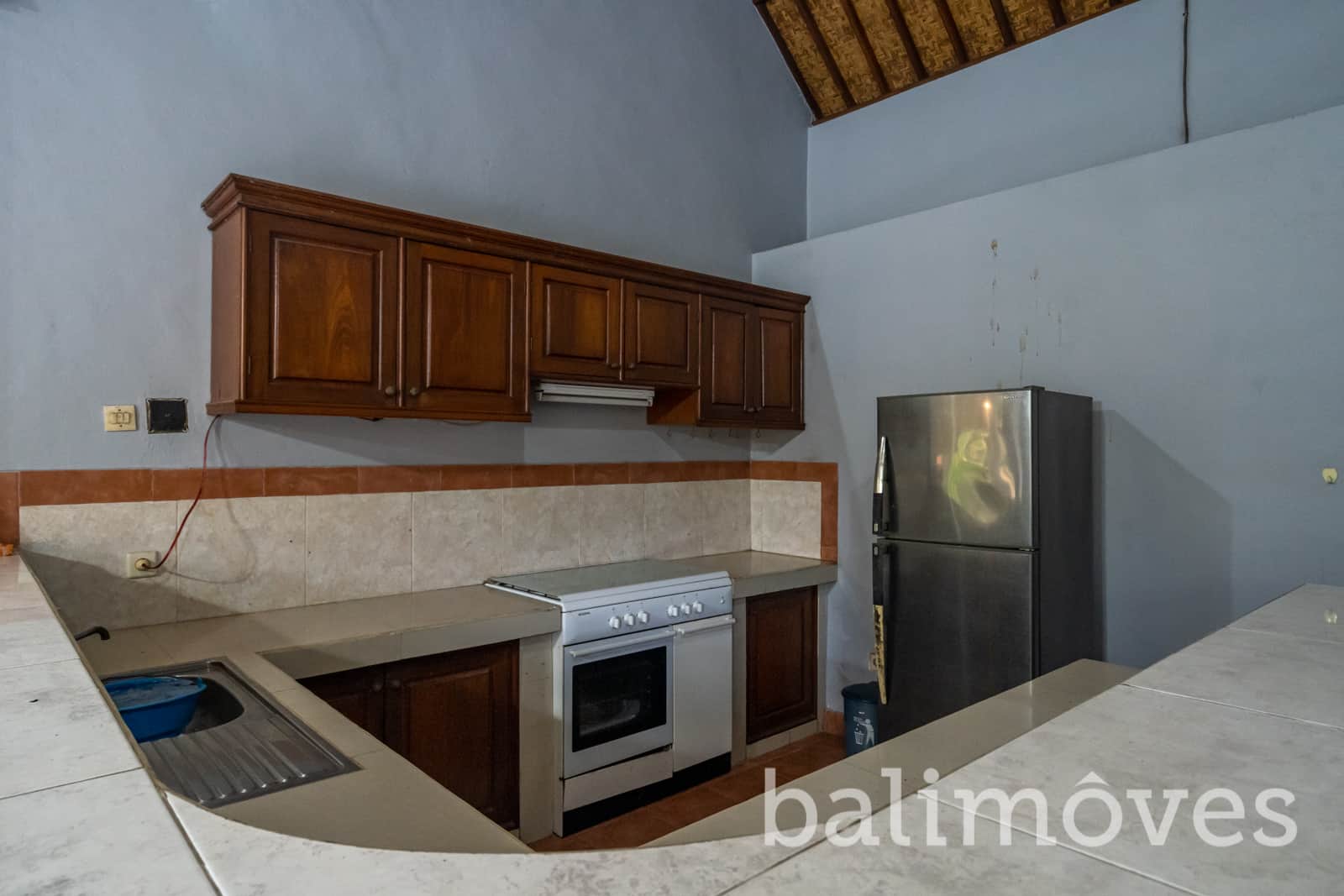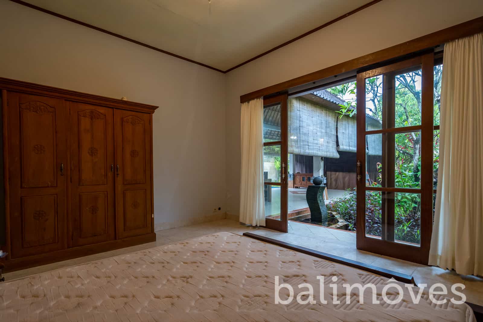 If you like your open style villas, this is a nice option. It’s a three bedroom, three bathroom property built over 250m2 on a 400m2 plot. At this size, it is possible to have a pool AND a garden, in many smaller spaces you just have to choose. It’s a good location, a spot popular with expats but with a strongly rooted Balinese community just west of the Bypass on the northern end of Sanur, near McDonalds. The property also features a separate maid quarters with bathroom, a fully fitted kitchen, and a 6x3m swimming pool. It is offered furnished. Bamboo sofas and all.