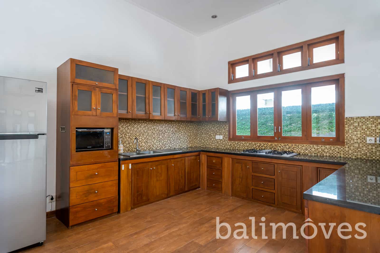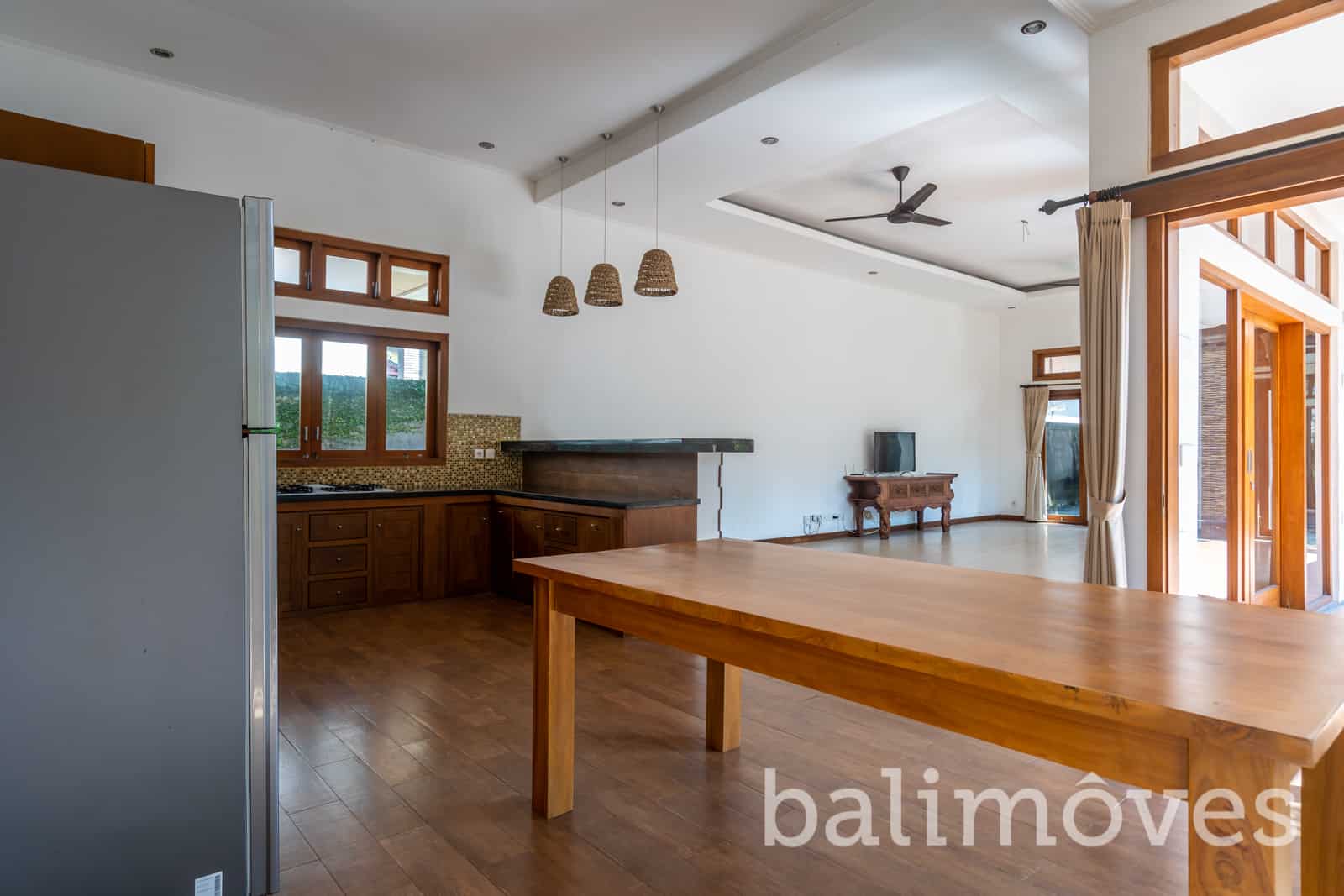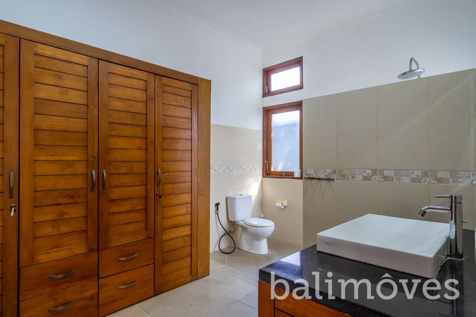 Built-in 2016 on the 565m2 land and 250m2 building size this villa maintenance very well by the owner, consisted of two large bedrooms with ensuite bathroom both fitted with a shower, it also attached with many windows and sliding door make the rooms on this villa bright and have good air circulation. The villa designed as a residential living concept, it offers a spacious closed living room that is connected to the dining area and the kitchen, the living space attached with two ceiling fans and one led tv, no it does not have a sofa set as this property offer semi-furnished, so you will need to bring/buy your own stuff to set up this property as your next home. It also will come up with HOB, fridge, and oven. For you who have a live-in maid or are planning to get a live-in staff, don’t worry this property comes up with one maid room and bathroom.