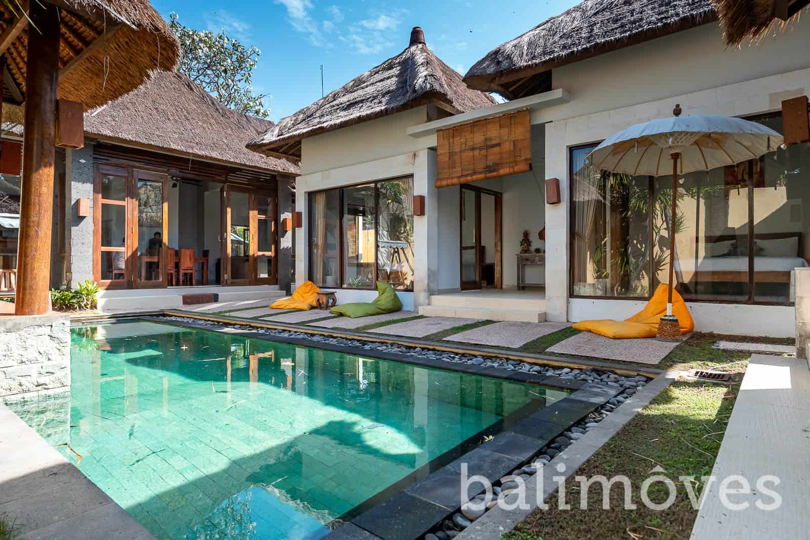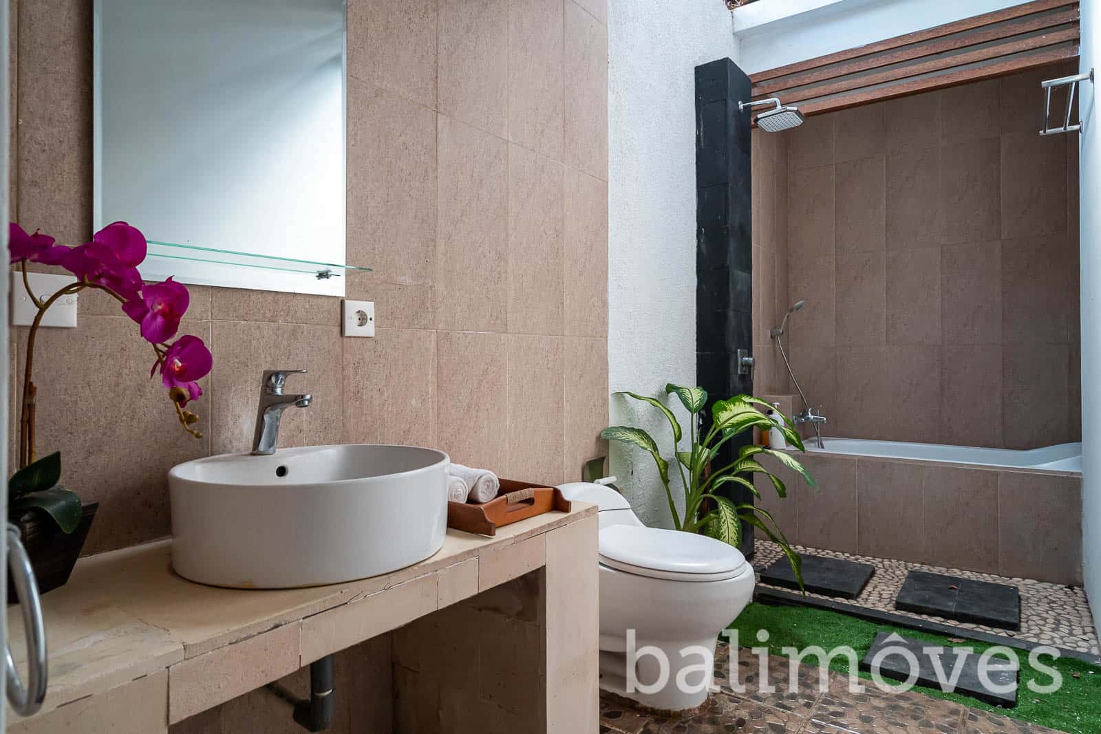 This is a stylish three bedroom villa which located on the west side of bypass. the villa was built on 380 m2 land & 250 m2 building size, it is located on the strategic area where the walking distance to the supermaket is only takes 3 minutes, from this villa to the nearest beach it takes 10 minutes driving with motorbike.