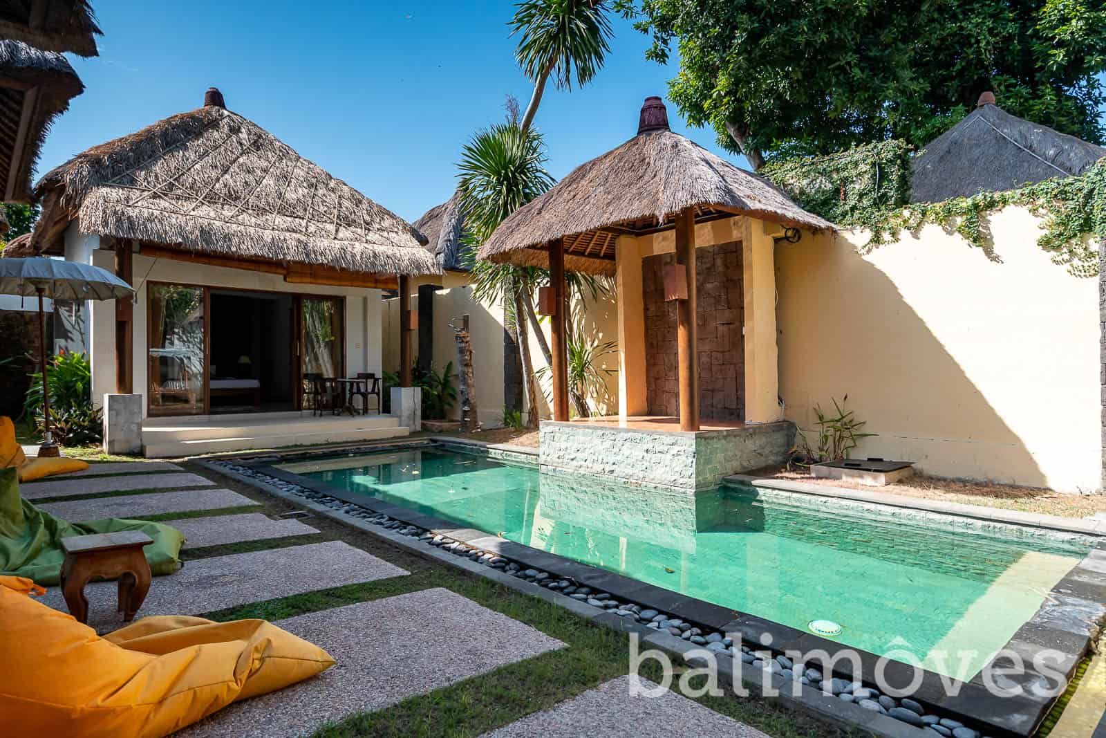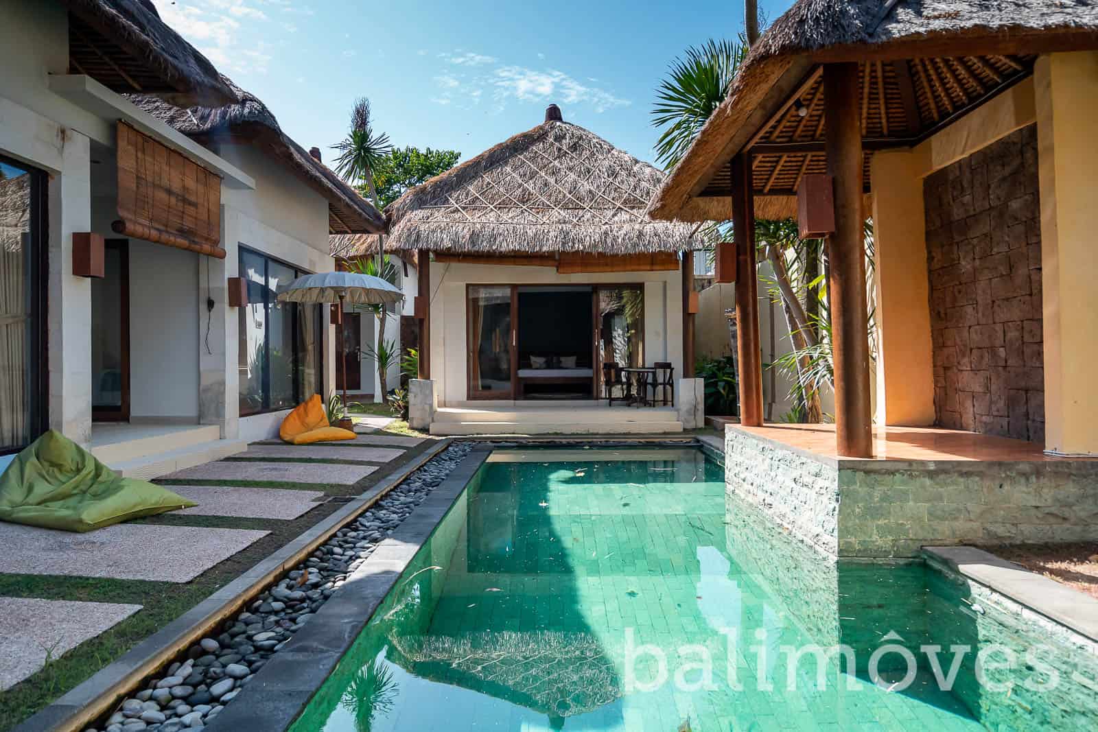 It is offer three bedroom with three bathroom and 1 guest toilet. all the bedroom have ensuite bath and pool view, the villa is not so big but it is also have a garden even though the garden and the pool is separated its still nice. It has a lovely kitchen it is not big but it have a western standard style with HOB, fridge and oven, the closed living room is connected with the dining area. this property also has 1 maidroom with bathroom.