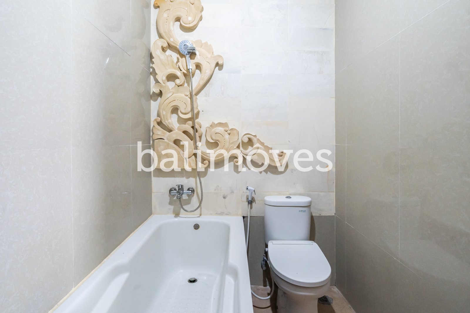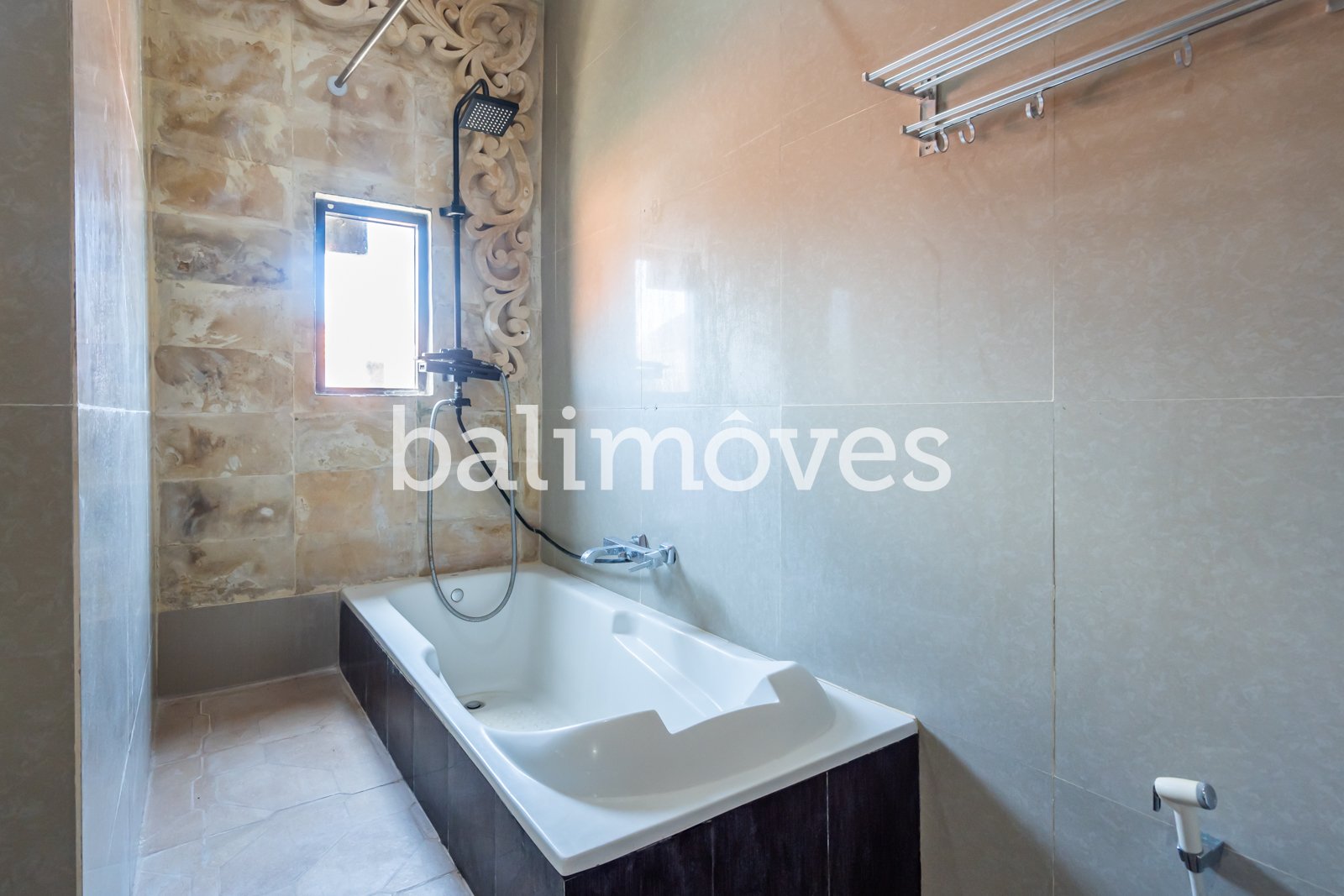 This two story villa is located on the west side of the Sanur Bypass. The location is quite strategic close to healthcare facilities, supermarkets, and restaurants, only about 3-6 minutes away by motorbike. Around 10 minute to central Sanur. Access to the villa is excellent, suitable for cars and a parking area that can accommodate car. The property sits on 150m² of land with a total building size of 225m².