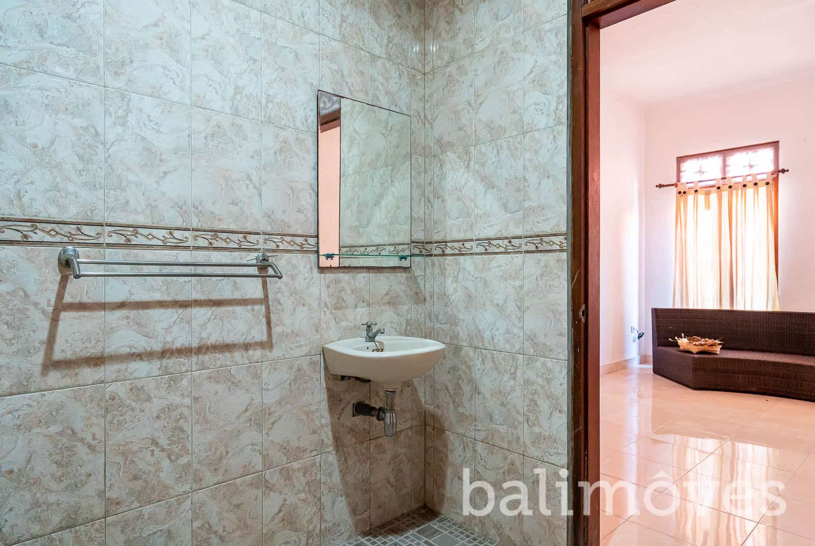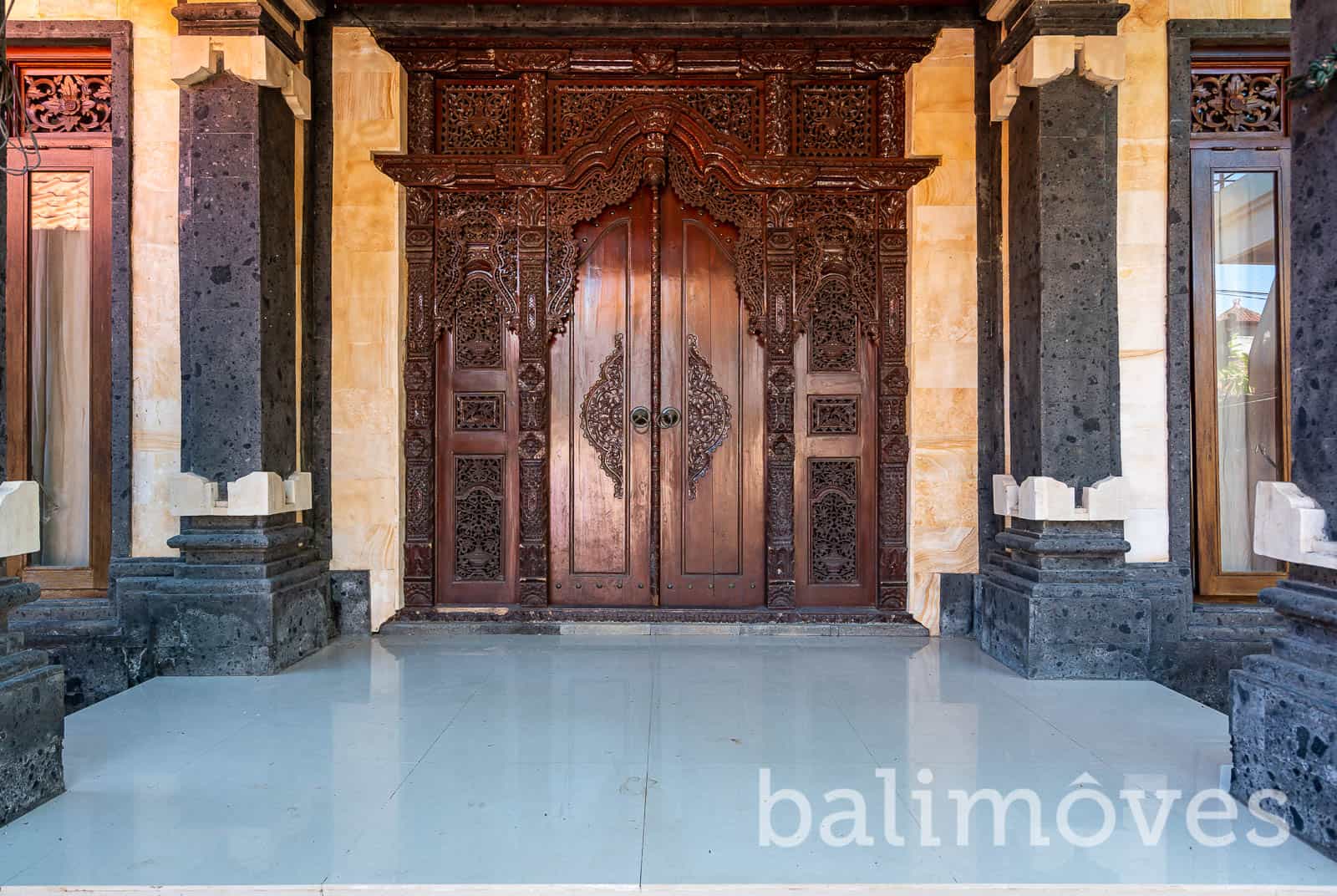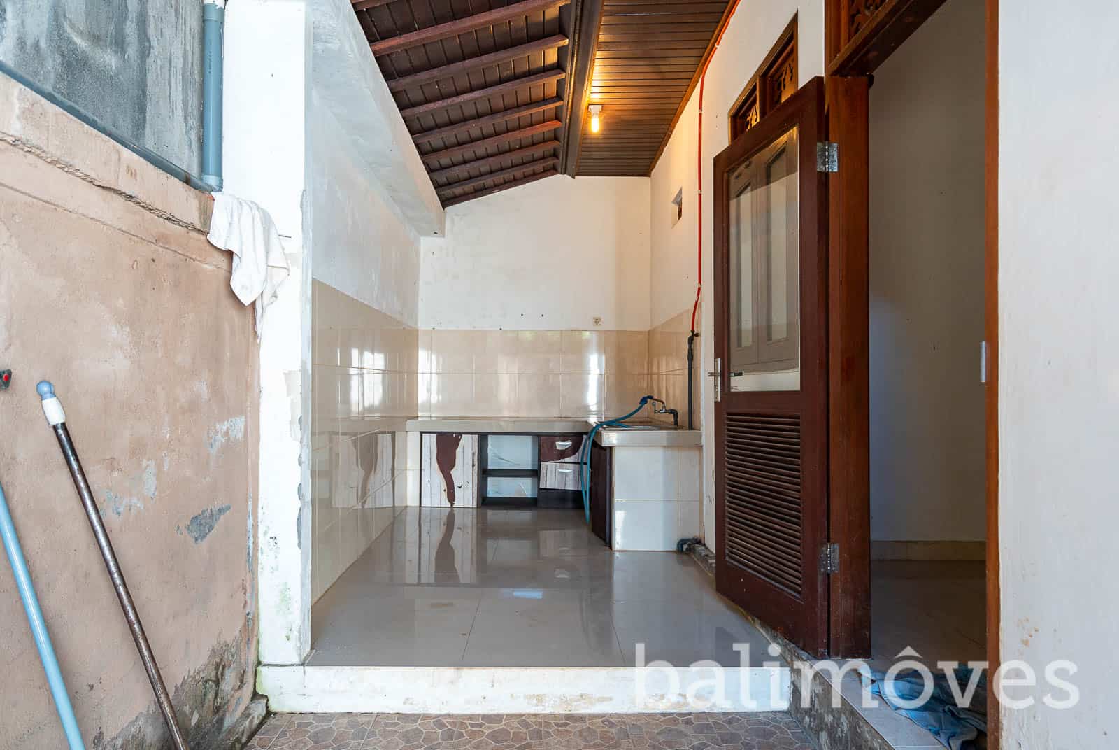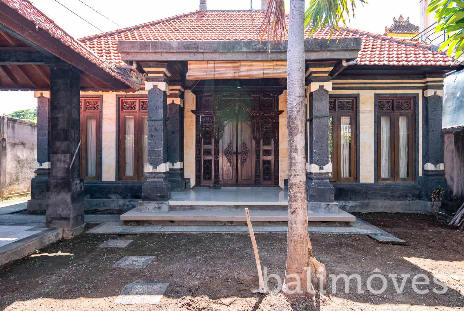 Fortunately, this middle tree (my own nomenclature) is not the defining feature of the property. What is the defining feature of this property? Probably the price. This is a Balinese style two bedroom, two bathroom house. It has a covered parking area, an average sized front garden, some nice intricate carved woodwork, and a slightly odd covered kitchen in the back.