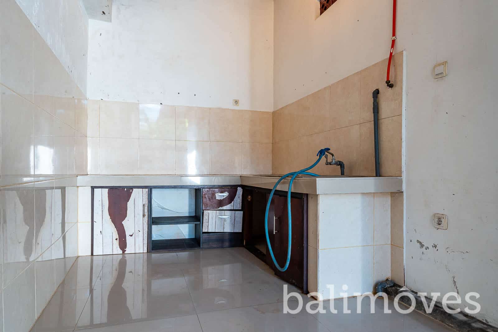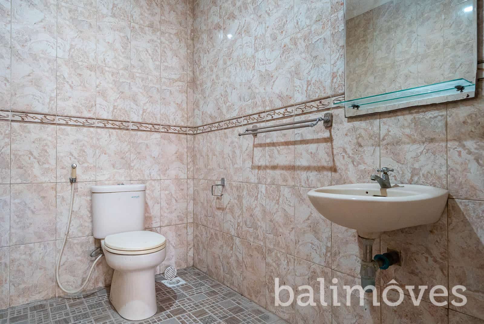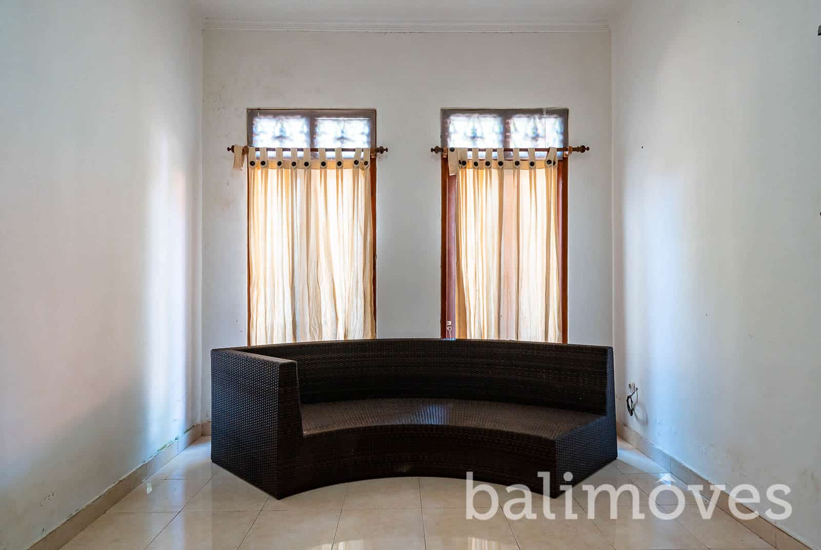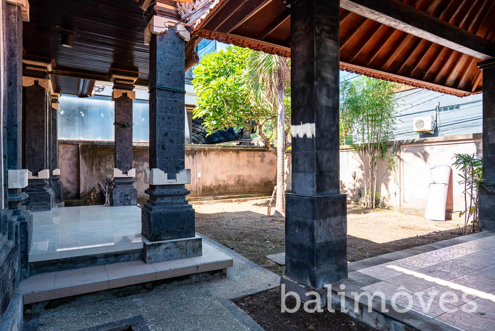 Fortunately, this middle tree (my own nomenclature) is not the defining feature of the property. What is the defining feature of this property? Probably the price. This is a Balinese style two bedroom, two bathroom house. It has a covered parking area, an average sized front garden, some nice intricate carved woodwork, and a slightly odd covered kitchen in the back.