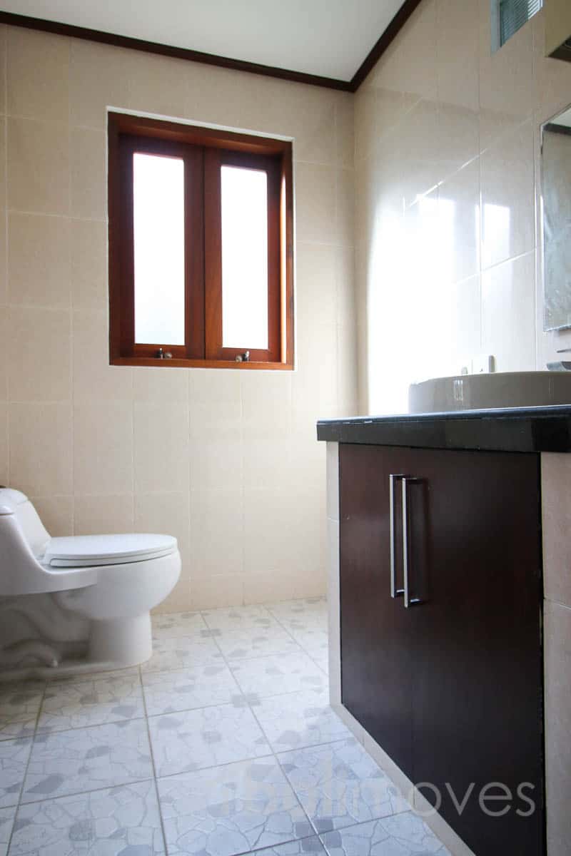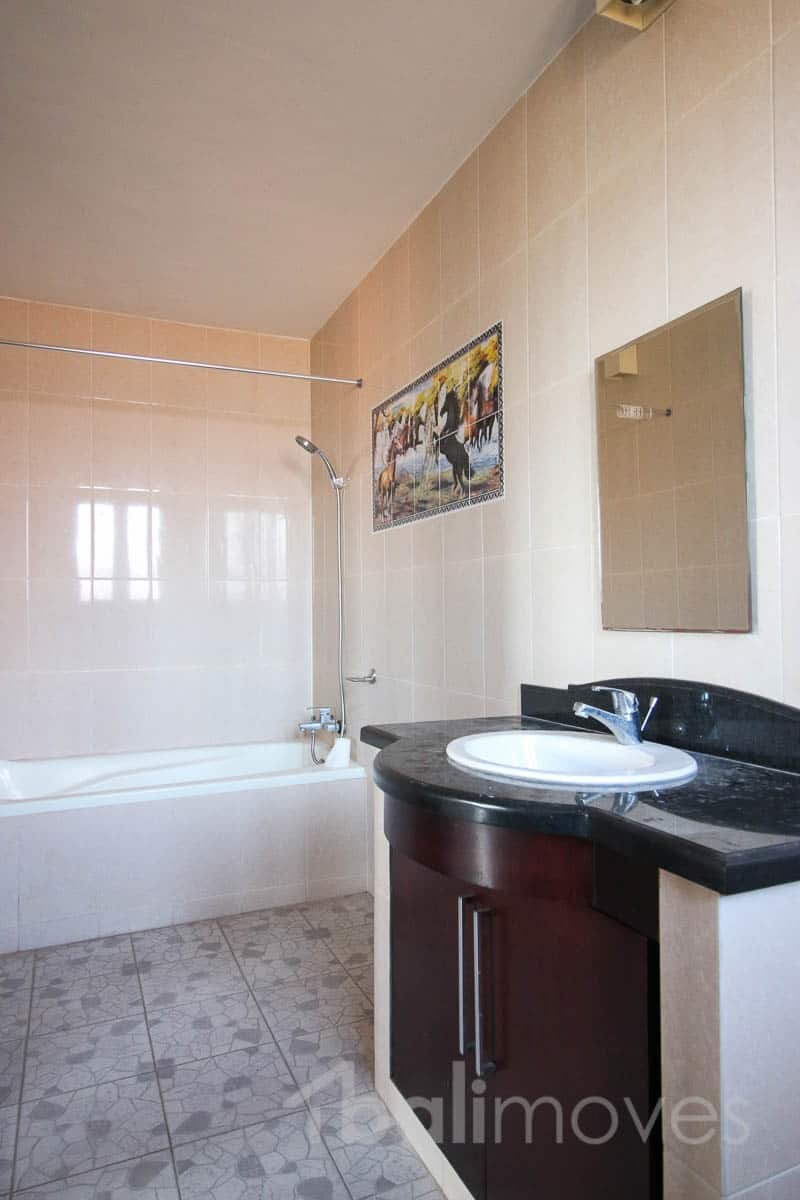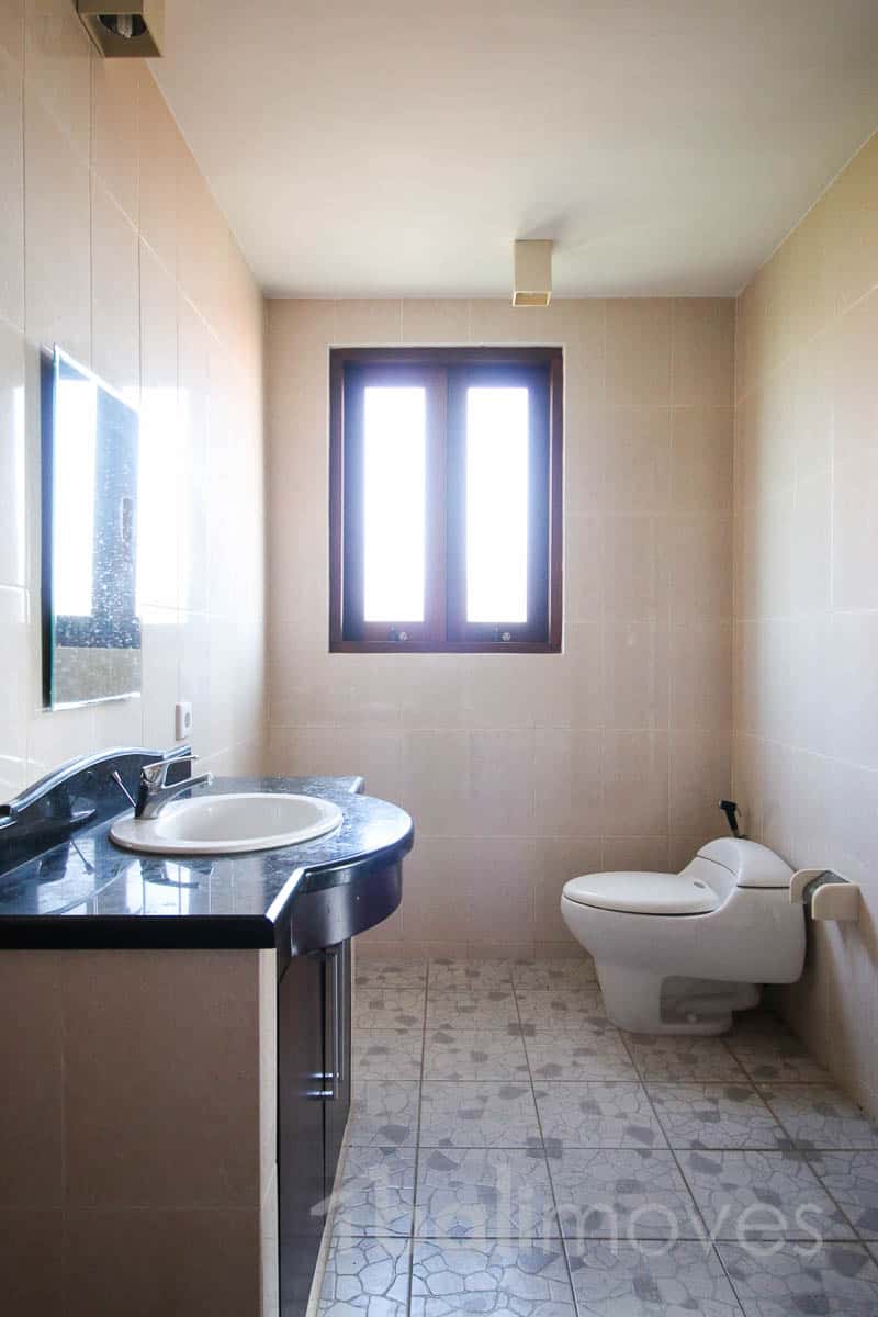 This is quite a big place, built over 650m2. It has four good sized bedrooms, two upstairs and two downstairs. It also has a large upstairs open area, not sure if you call it a terrace, but you could really make it a nice area with some plants and whatnot. Can be used for parties, or yoga, or yoga parties. Bedrooms have built in wardrobes, the kitchen is relatively large/well-laid out/useable and has a decent oven/range top, there is covered parking for 1, maybe two cars, and as it has borrowed design elements from Dover Castle, you’d be safe from raiding marauders. Something for everyone, with swimming pool.
