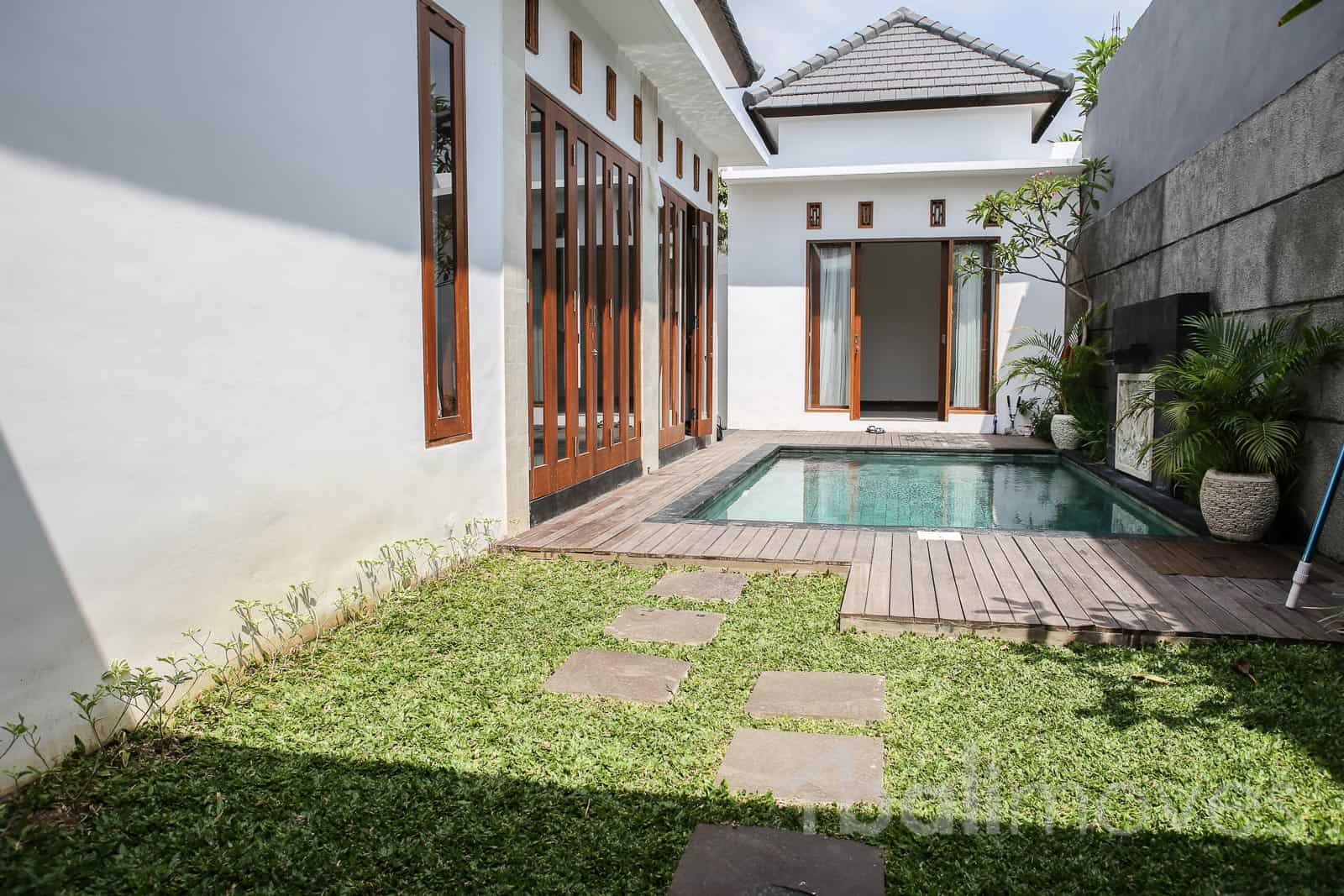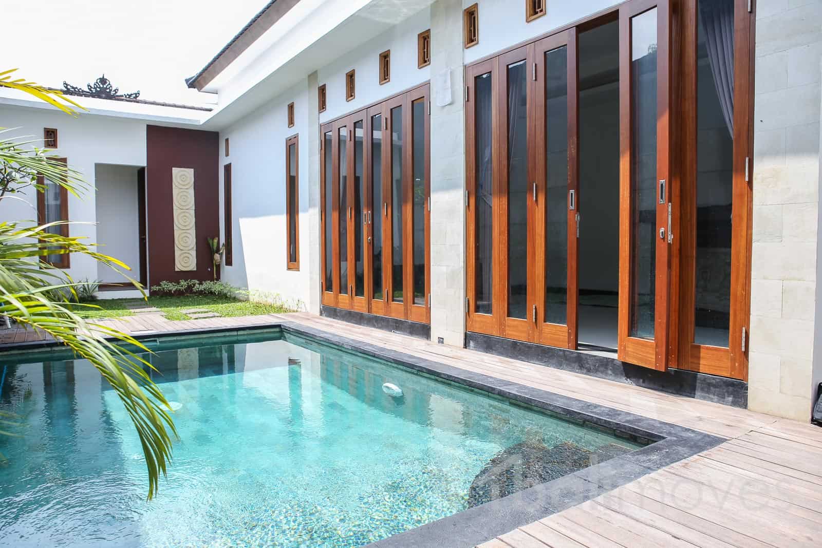 This is a three bedroom villa located just north of central Sanur, with easy access to the popular international schools and to Sanur beach. Nice bathrooms, small but nice kitchen, nice pool. Offered unfurnished, but the owner is willing to negotiate on providing furniture. This one would be great for a family or sharing professionals.