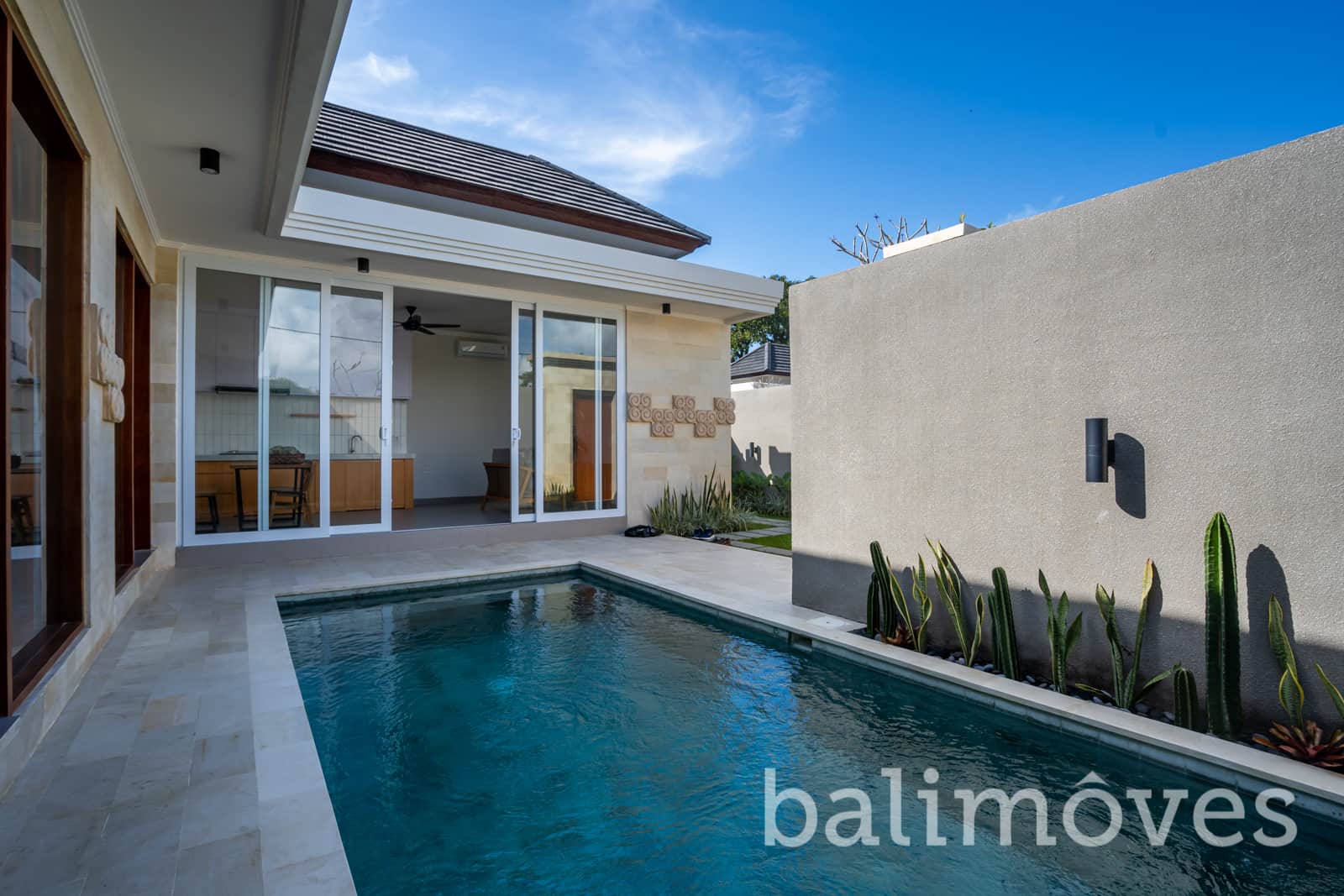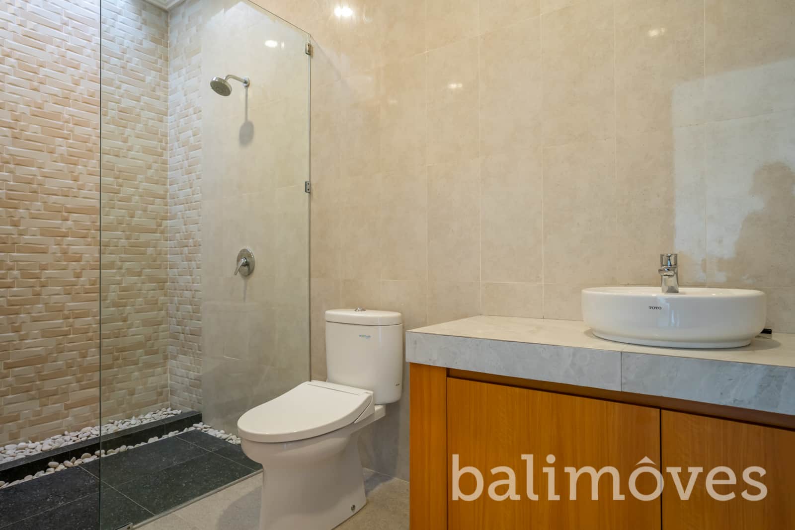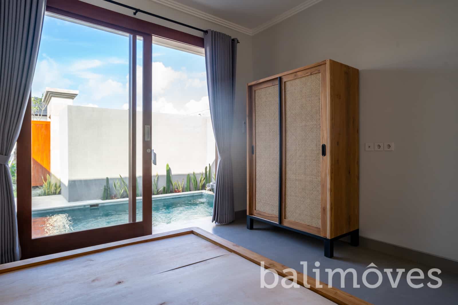 The villa is just finished and ready to move in, built-in 2021 on the 170m2 land and 80m2 building size this villa is very cute and minimalist suitable for you who have a small family or couples. Consisted of two bedrooms with an ensuite bathroom which fitted both with shower, on the photos and video above you don’t really see the bed/mattress but don’t worry it will come. This villa offers furnished, minimalist closed living that is connected with the modern kitchen set that comes up with HOB and fridge, dining area, and one guest toilet.