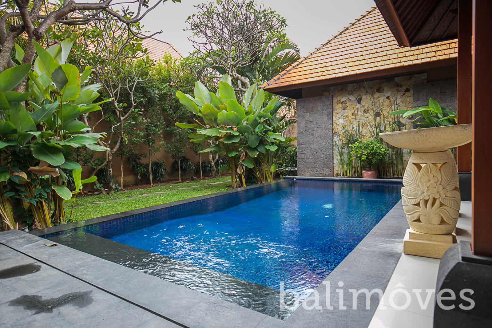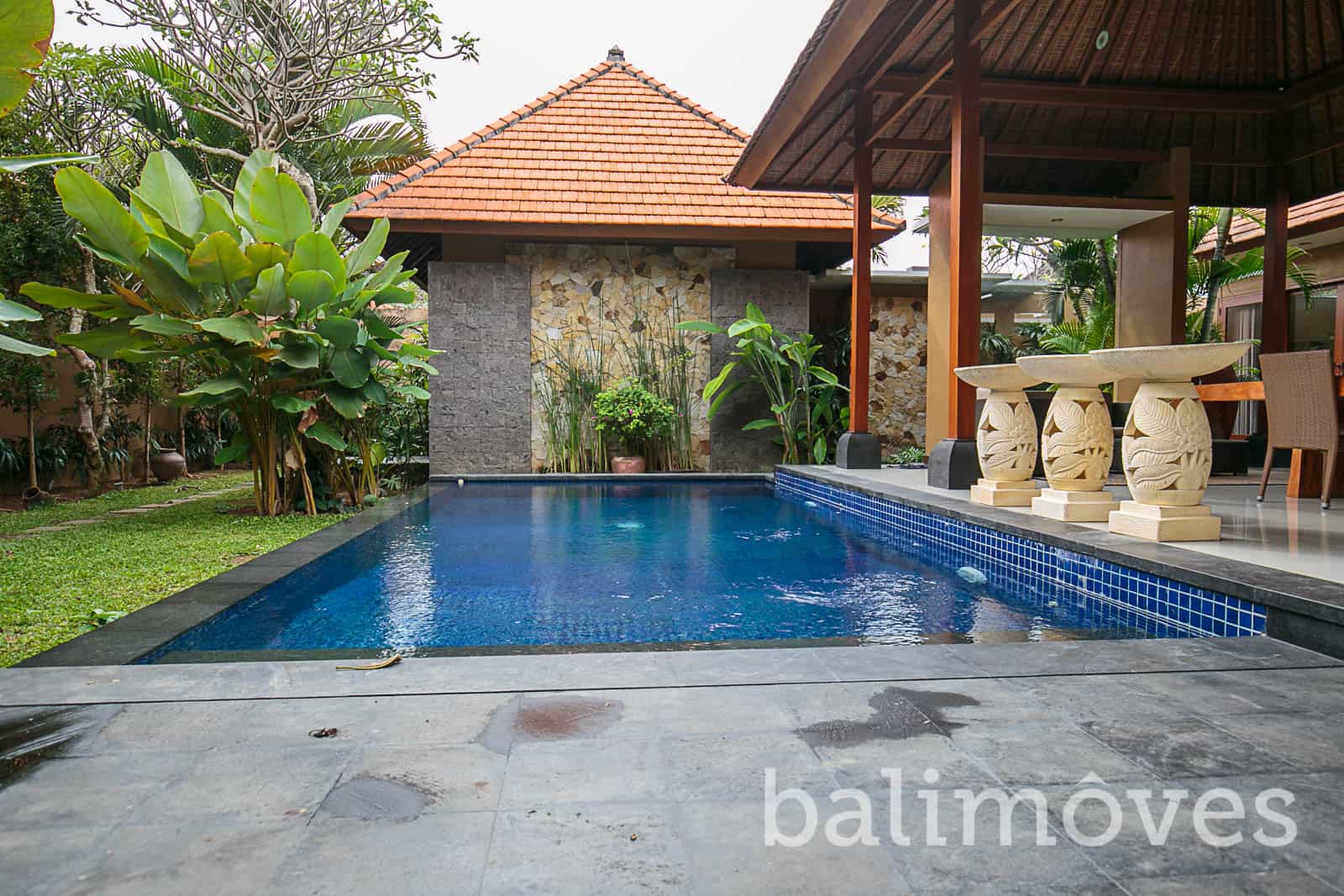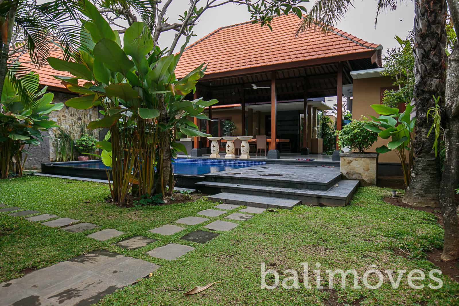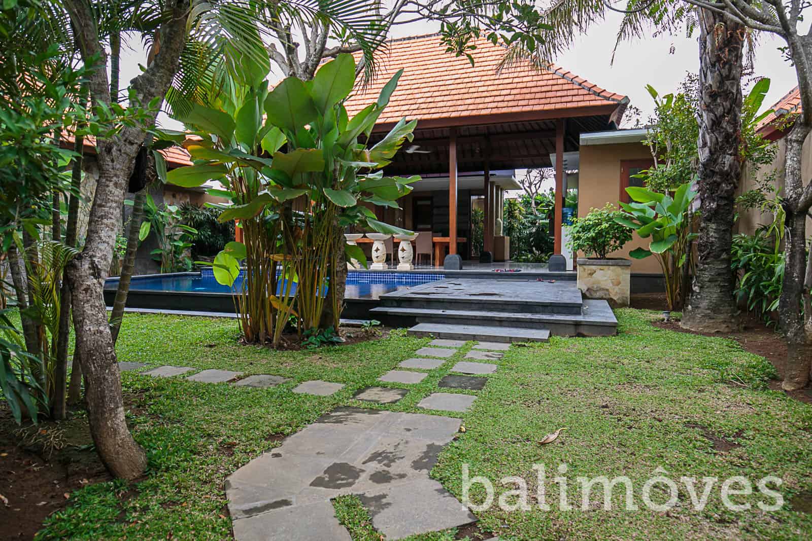 The property is located near Jln Batursari on the west side of By Pass Sanur, it is a fantastic villa which has an open living concept. We think it is a great choice for you who love a natural sense of living in an open air property. The villa provides 3 bedrooms & 3 bathrooms, a western standard kitchen set ( HOB & a refrigerator ), 1 maid room & 1 maid bathroom. As you can see from the picture the villa has big windows on each room, making a fresh air circulated really well to each room, and the bathroom has a unique bath tub and also an open shower space, there you could watch the bird flying around or chirping on a tree while taking your private shower time 😀