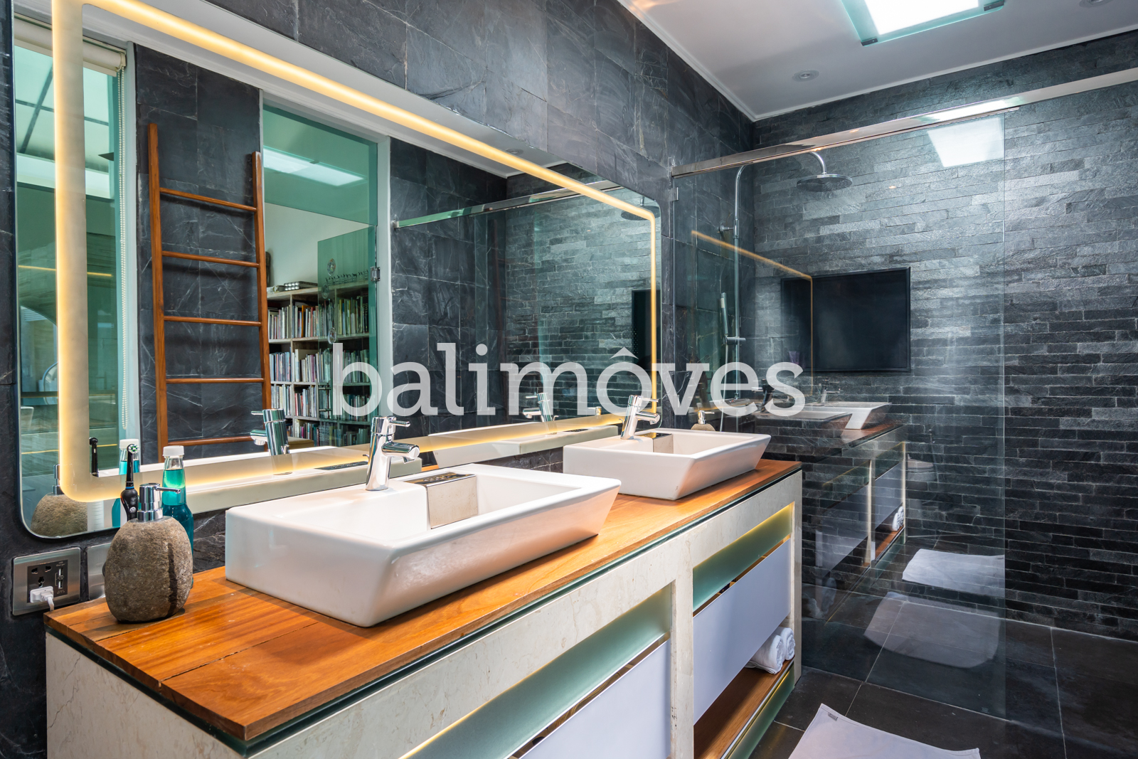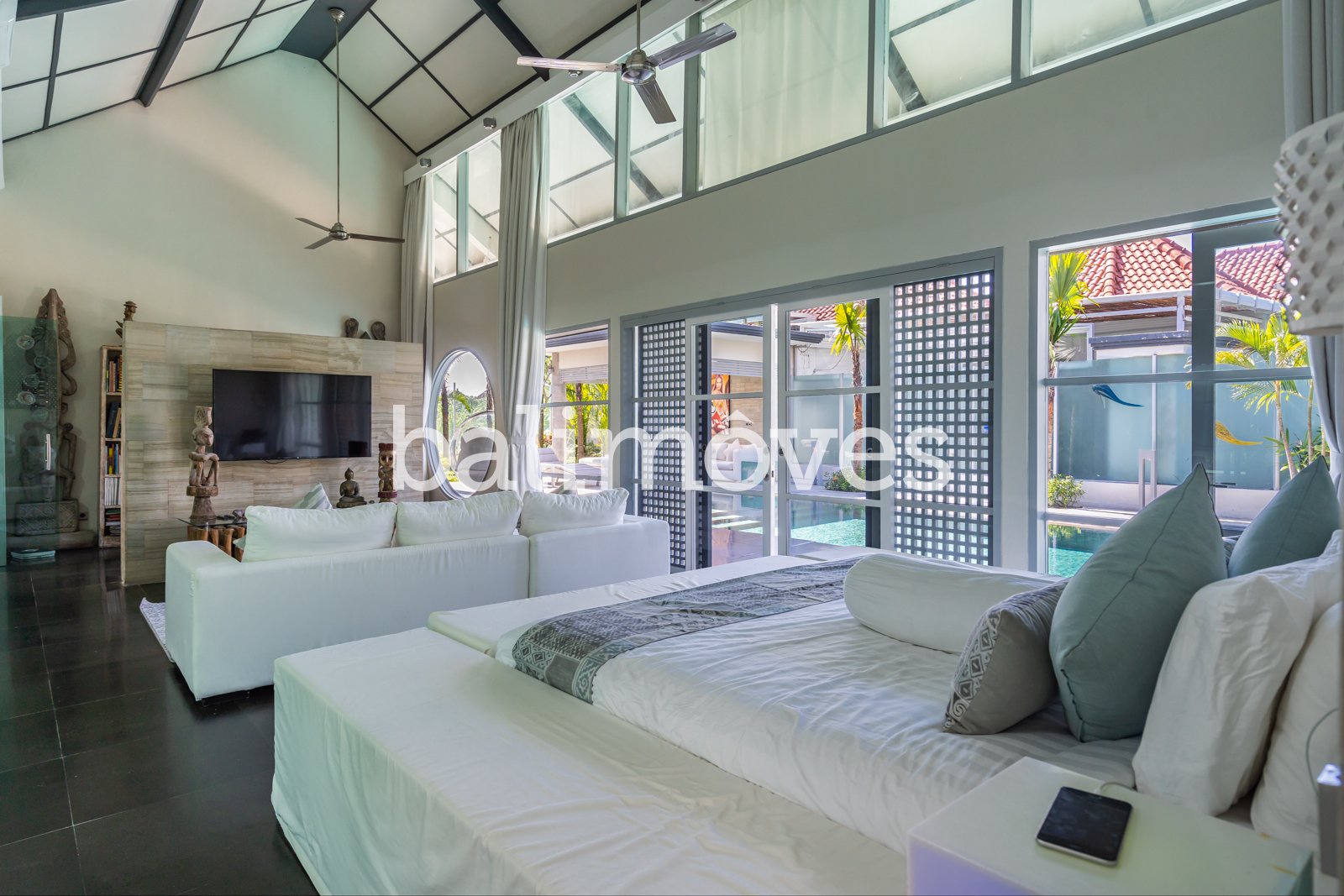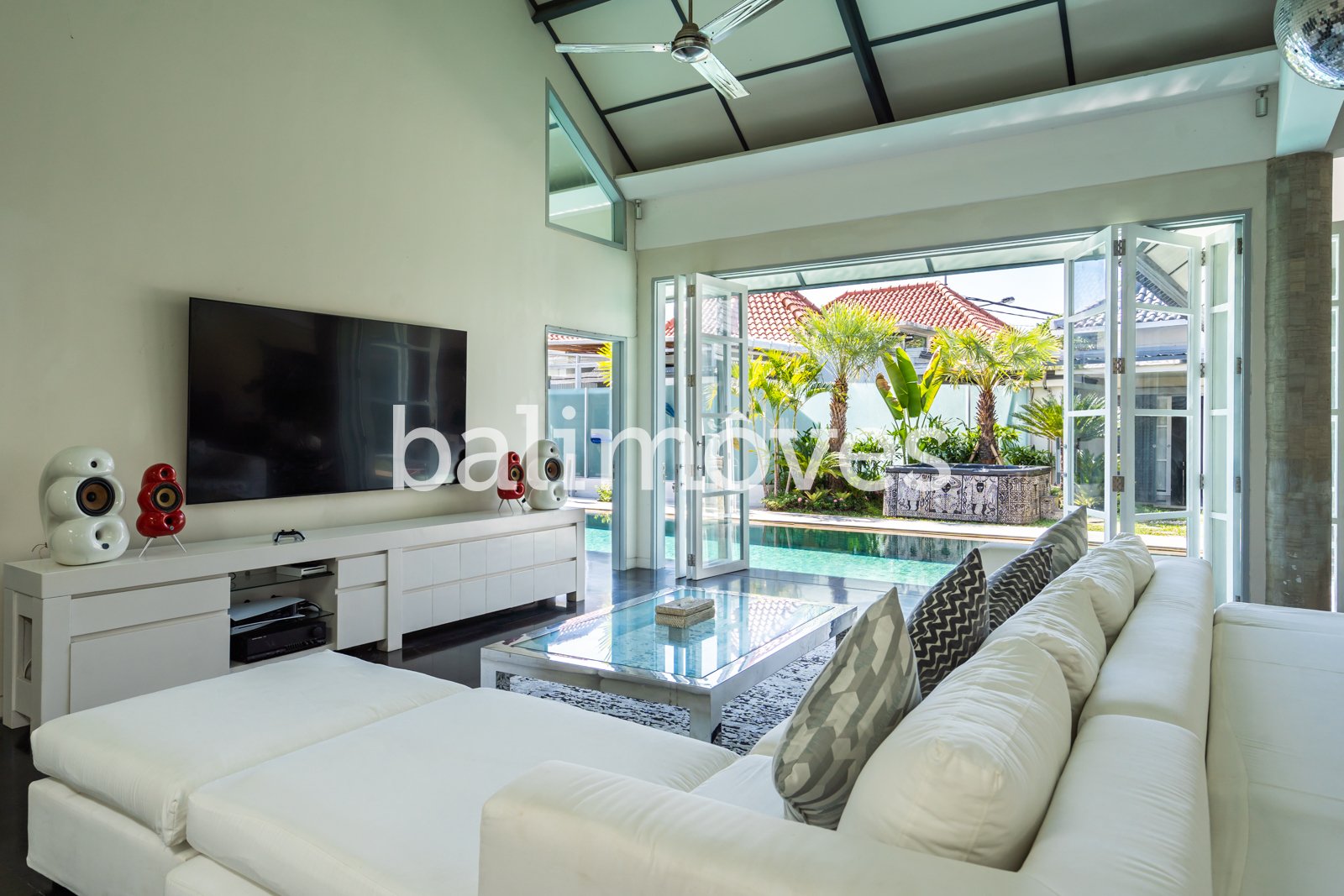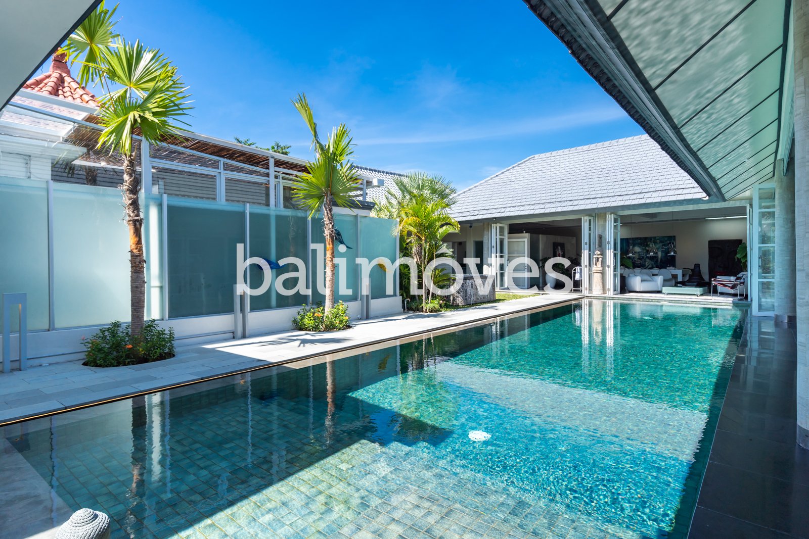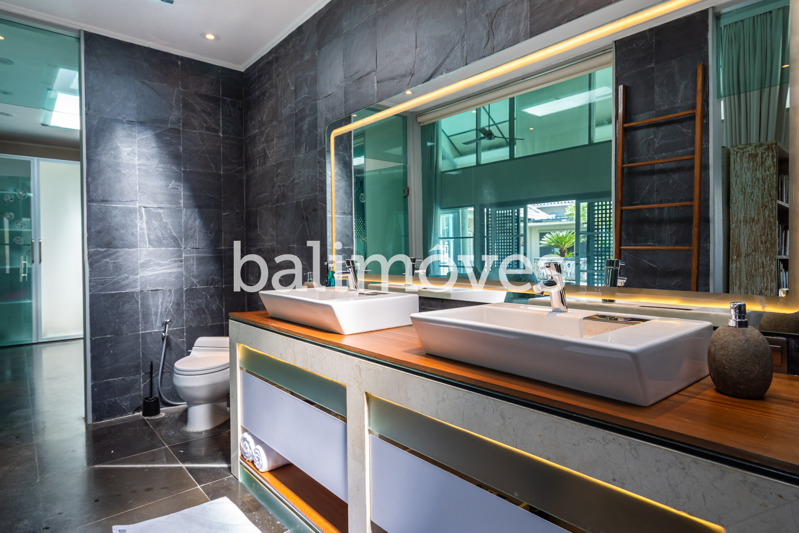 This property sits on the spacious land which are 700m2 land in total with 400m2 building size. It is consist of the modern and spacious four bedroom all with ensuite bathrooms, at the moment the owner only using two rooms as a bedroom and the other two they use it as a lovely little music studio and the work space. The property has a modern designed, it was build on 2010 but from how it looks this villa does not really looks like a 10 years old property because the owner of this beauty has taking a very good care of their property. It has offers a spacious living room that connected with the dinning area, and the spacious modern kitchen set, a very big size of swimming pool, it is has a garden even though it is not spacious but it is still in a good size for a small BBQ party with the loved ones. The property has also offers a maid room with bath and a maid kitchen, a storage, and washing machine.