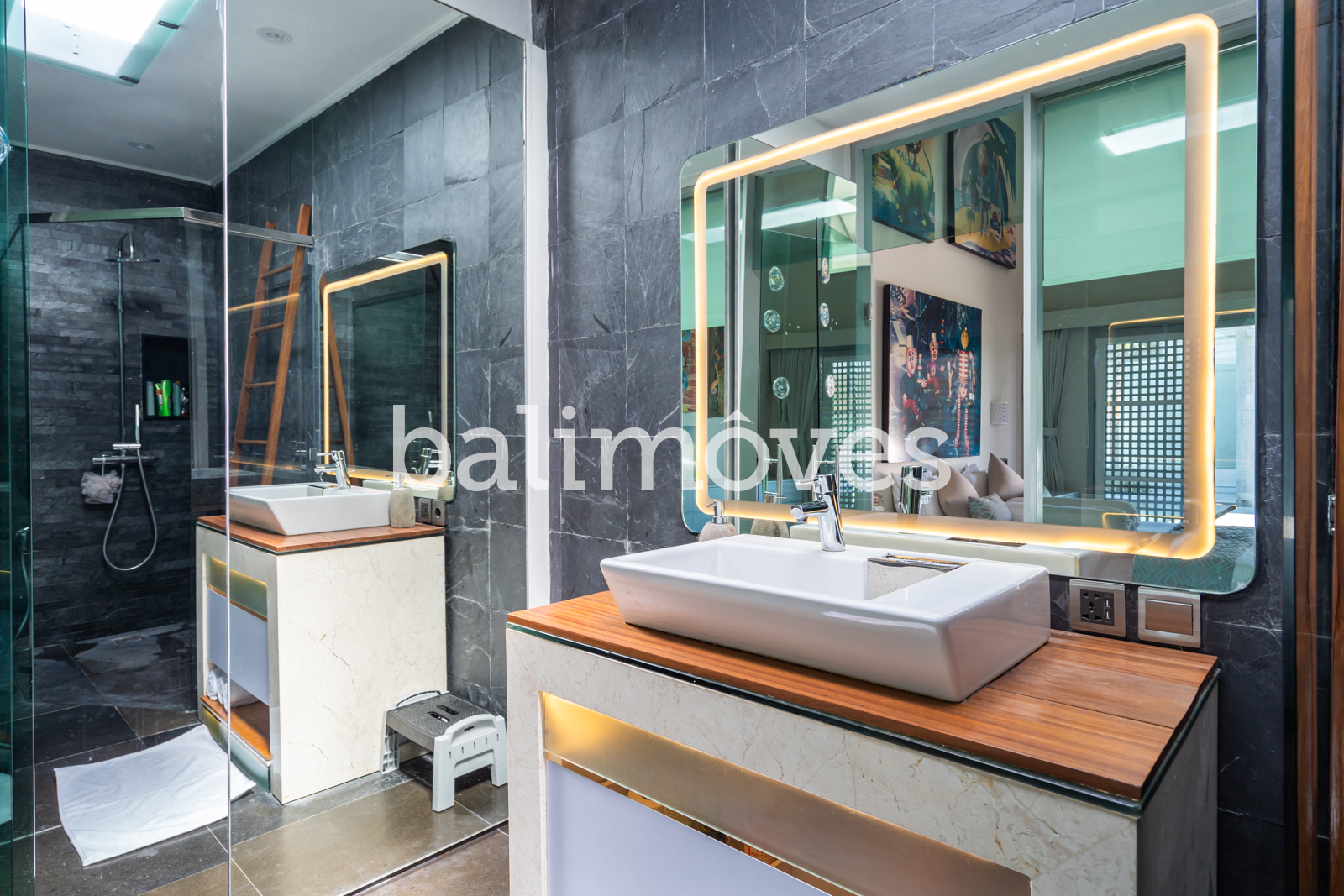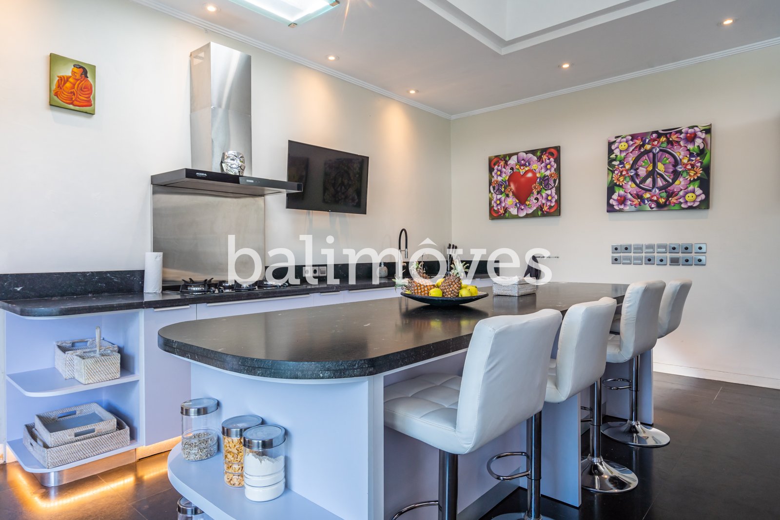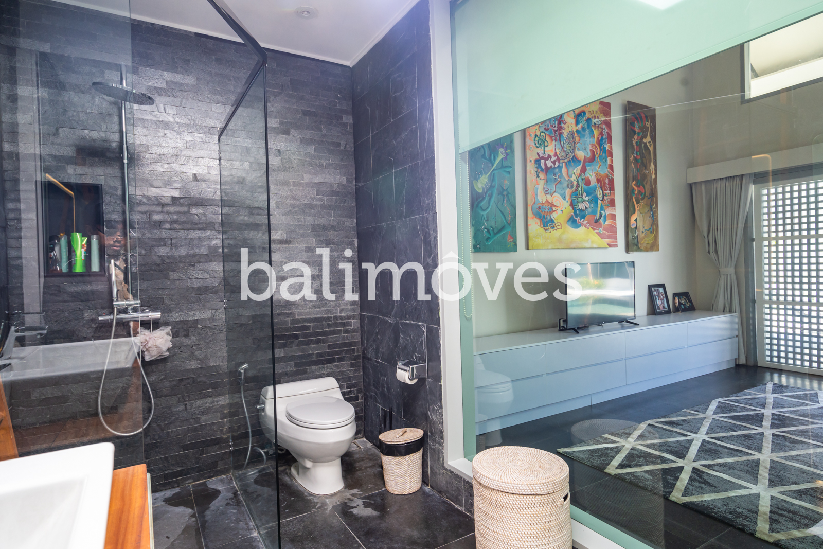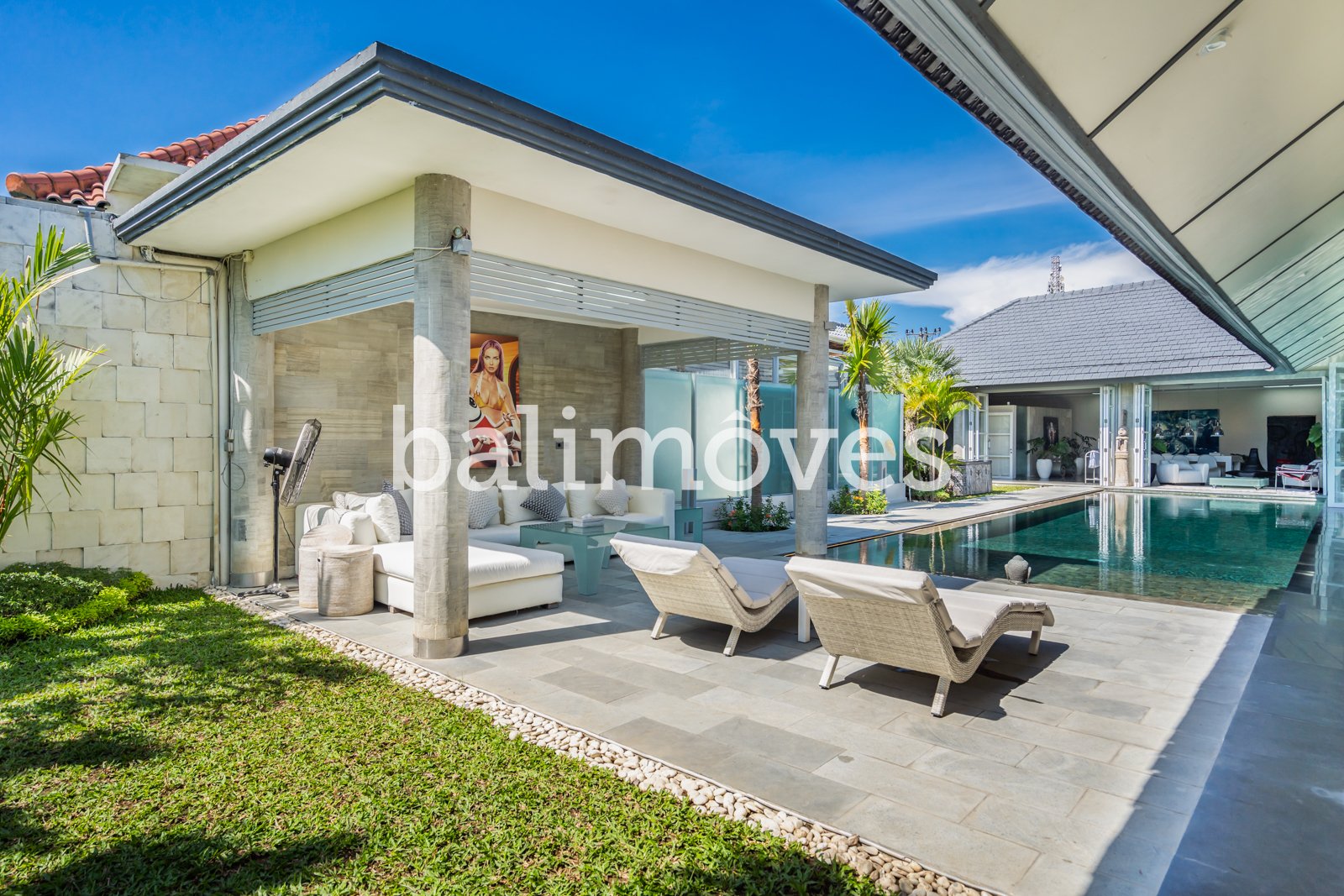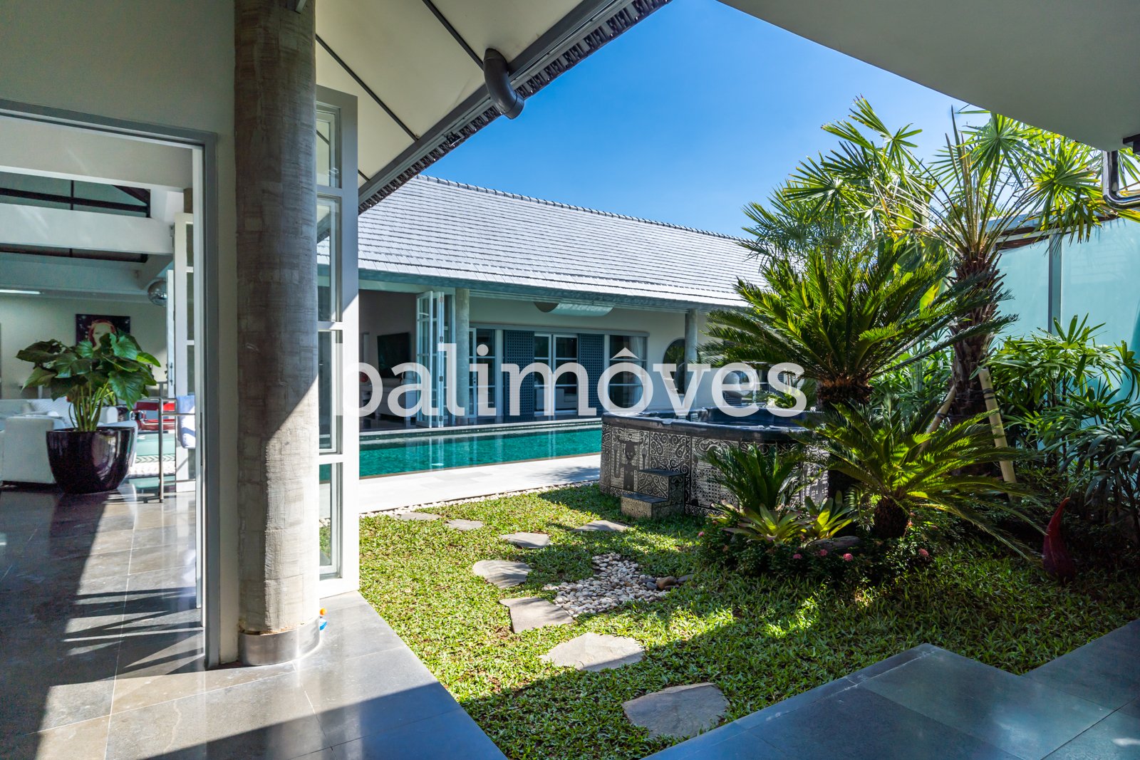 This property sits on the spacious land which are 700m2 land in total with 400m2 building size. It is consist of the modern and spacious four bedroom all with ensuite bathrooms, at the moment the owner only using two rooms as a bedroom and the other two they use it as a lovely little music studio and the work space. The property has a modern designed, it was build on 2010 but from how it looks this villa does not really looks like a 10 years old property because the owner of this beauty has taking a very good care of their property. It has offers a spacious living room that connected with the dinning area, and the spacious modern kitchen set, a very big size of swimming pool, it is has a garden even though it is not spacious but it is still in a good size for a small BBQ party with the loved ones. The property has also offers a maid room with bath and a maid kitchen, a storage, and washing machine.