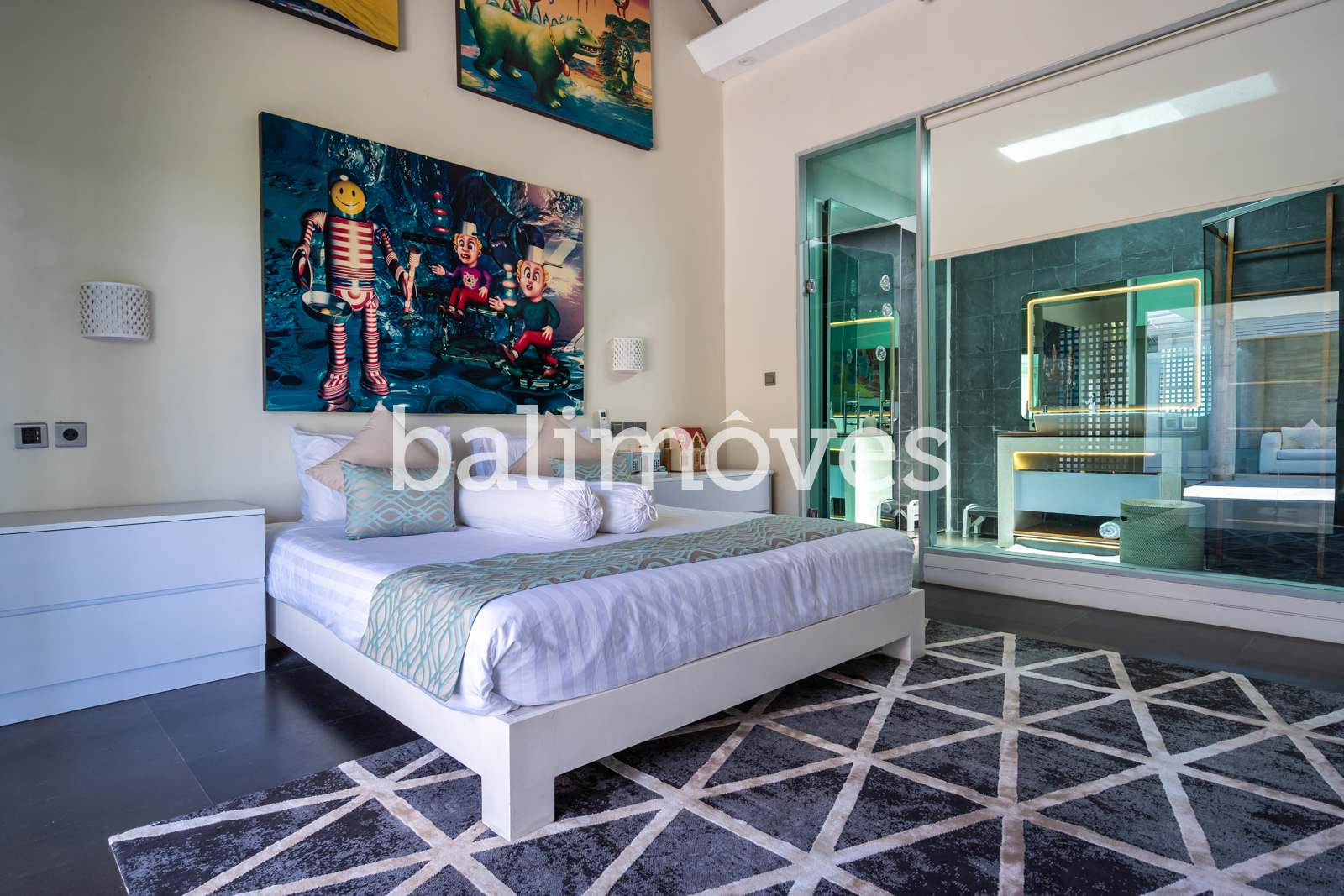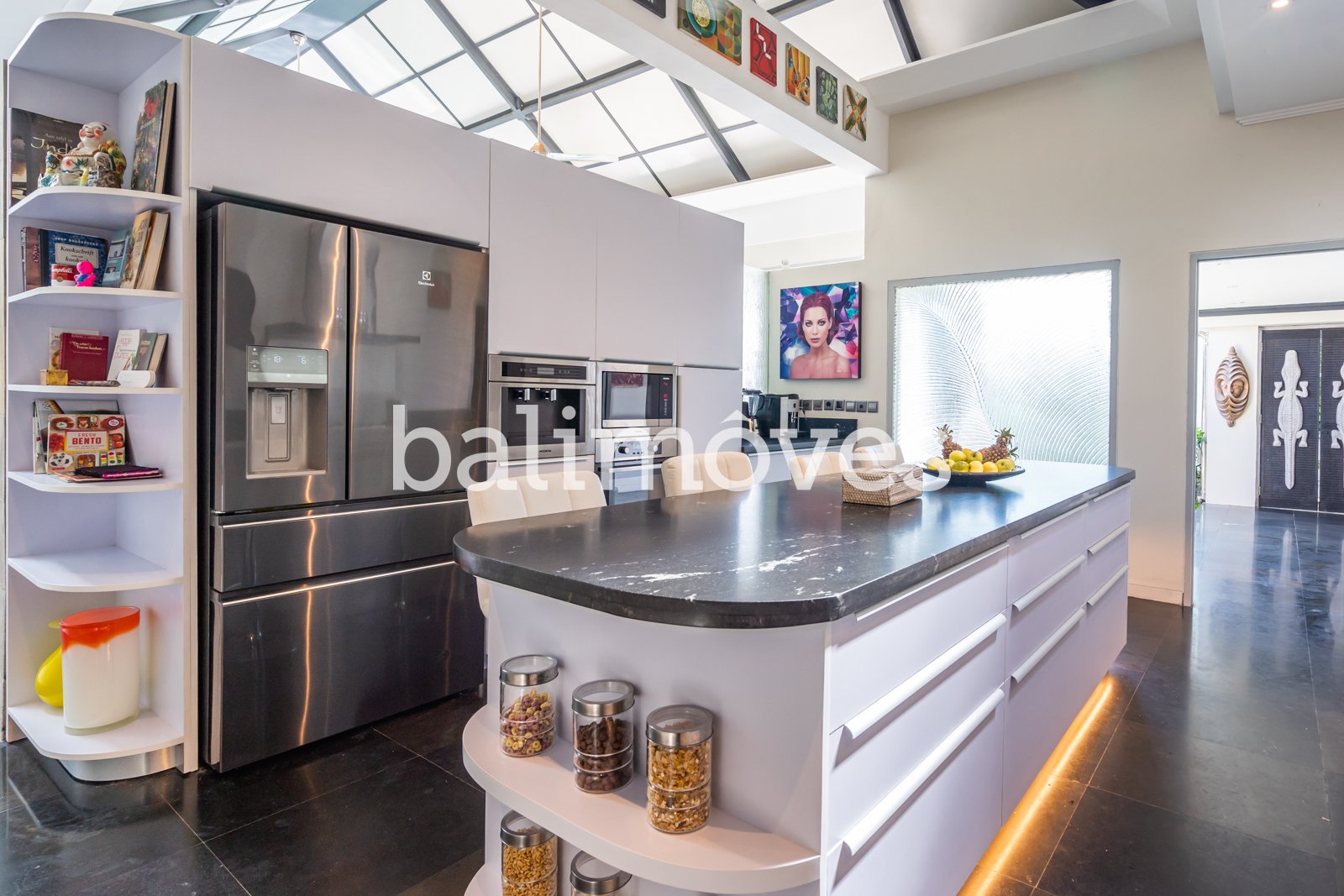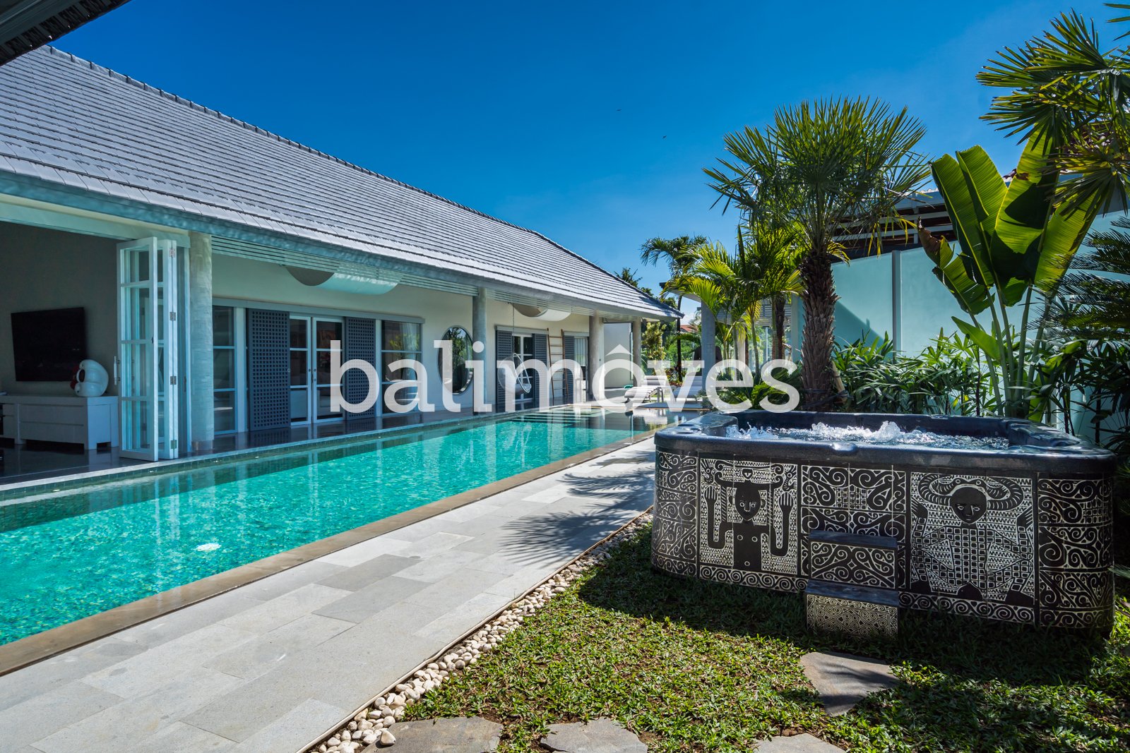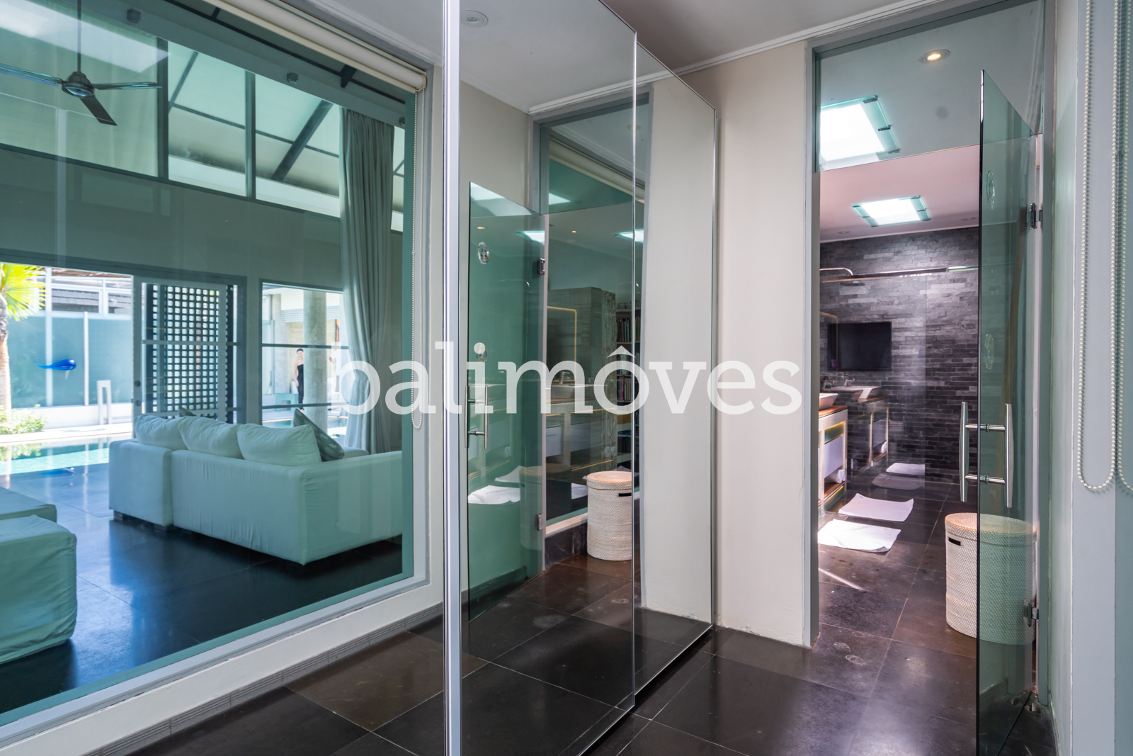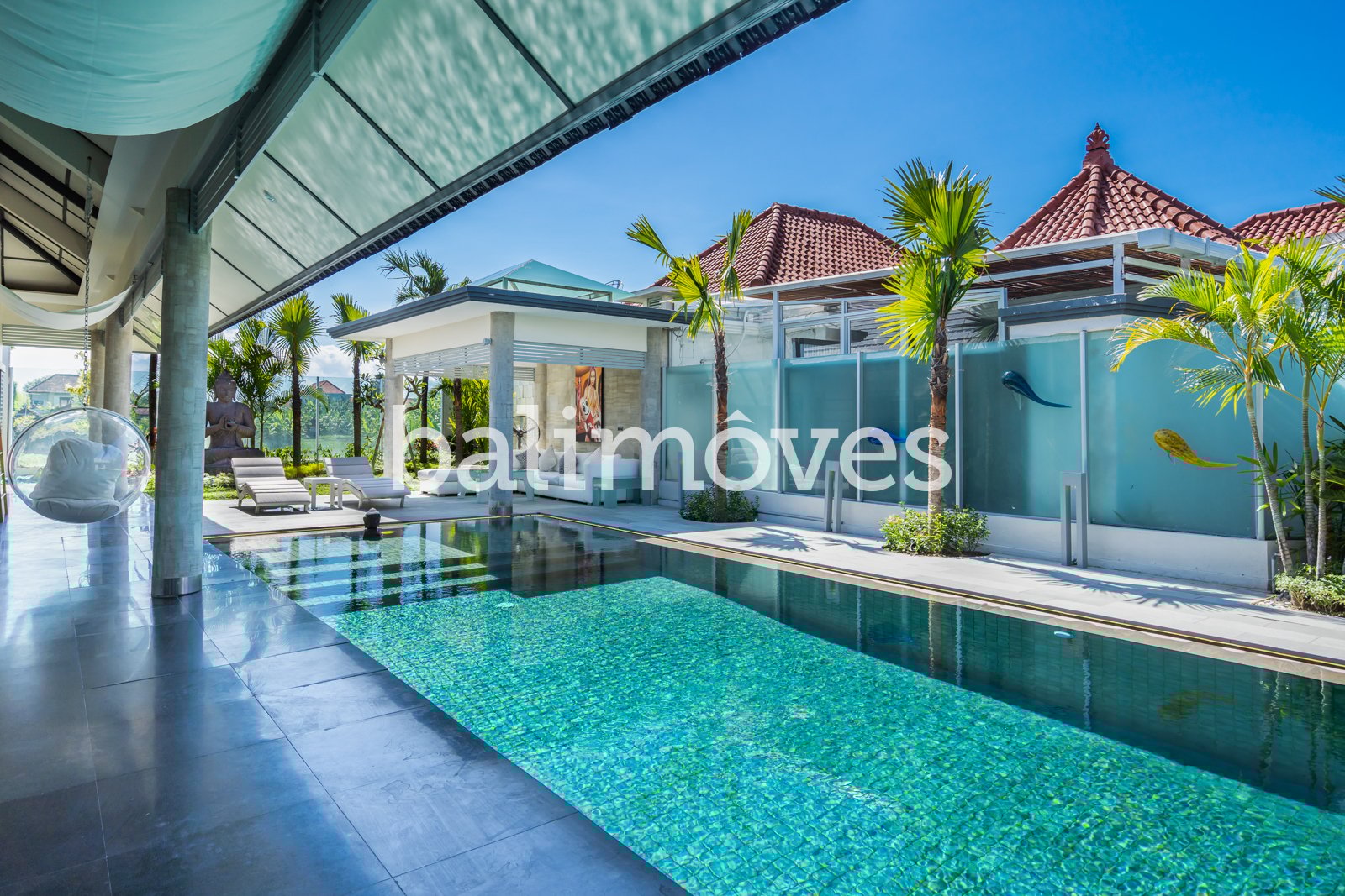 This property sits on the spacious land which are 700m2 land in total with 400m2 building size. It is consist of the modern and spacious four bedroom all with ensuite bathrooms, at the moment the owner only using two rooms as a bedroom and the other two they use it as a lovely little music studio and the work space. The property has a modern designed, it was build on 2010 but from how it looks this villa does not really looks like a 10 years old property because the owner of this beauty has taking a very good care of their property. It has offers a spacious living room that connected with the dinning area, and the spacious modern kitchen set, a very big size of swimming pool, it is has a garden even though it is not spacious but it is still in a good size for a small BBQ party with the loved ones. The property has also offers a maid room with bath and a maid kitchen, a storage, and washing machine.