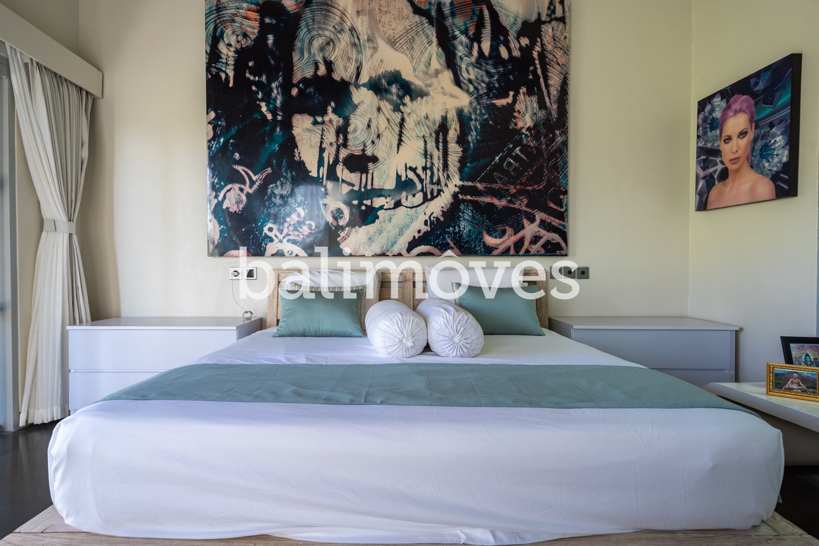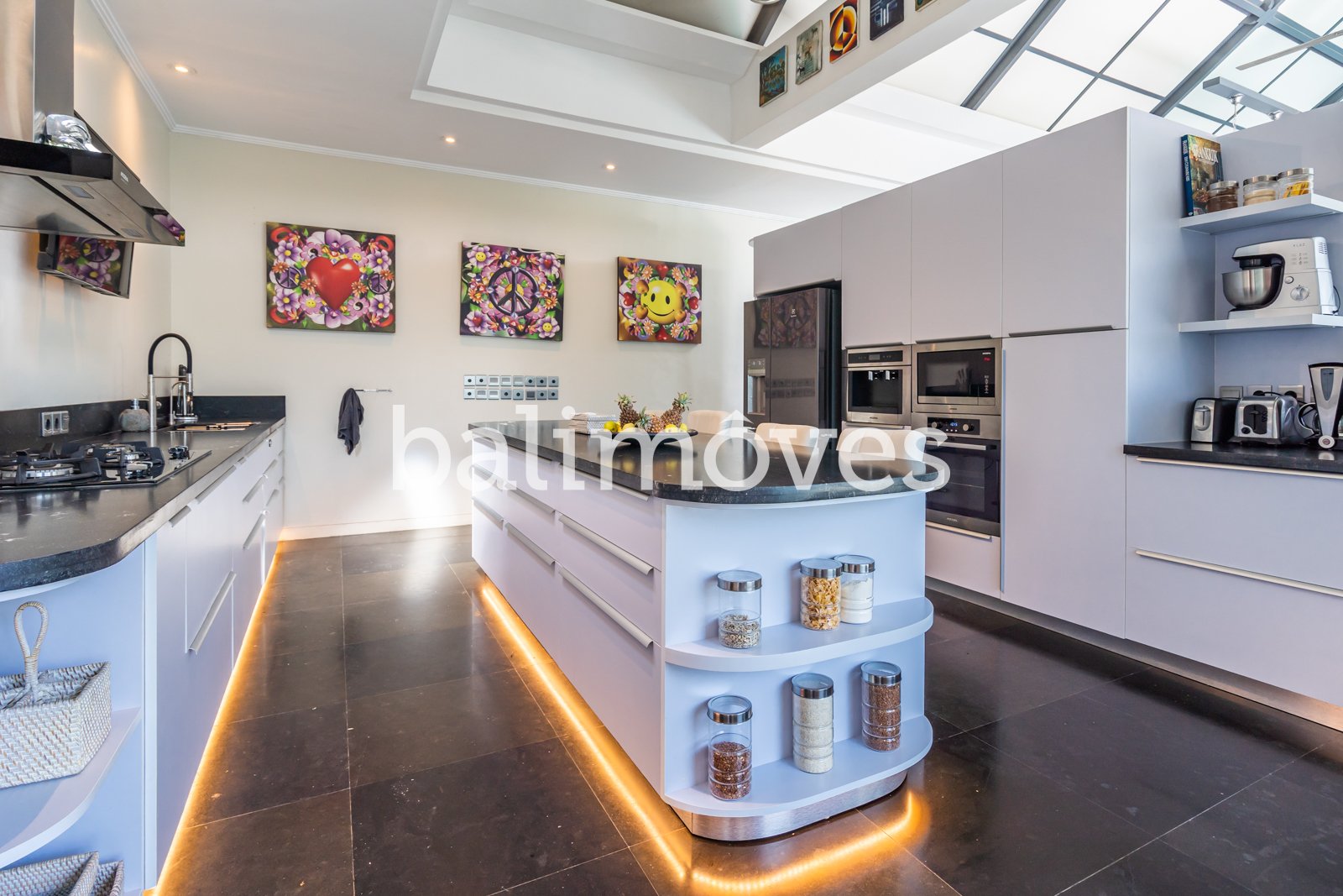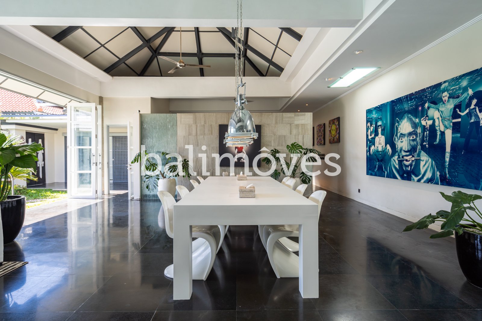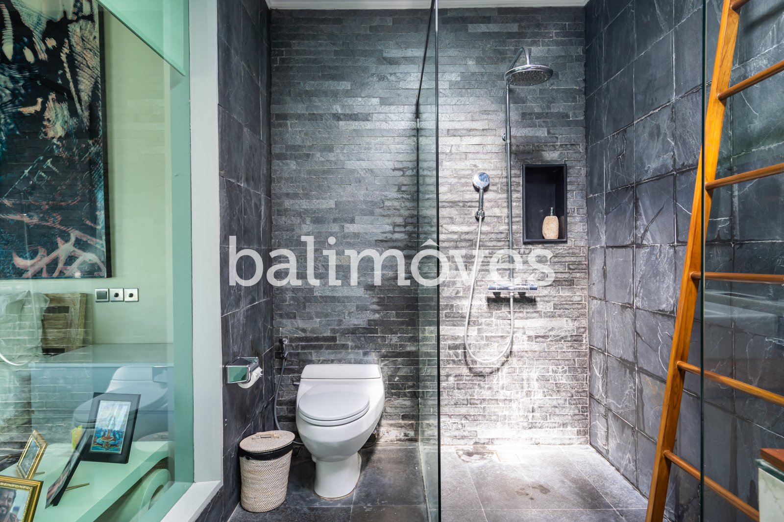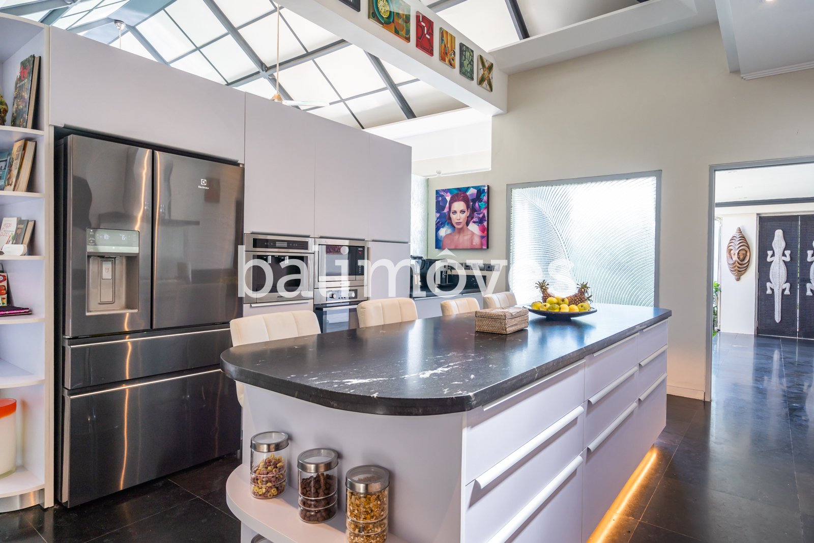 This property sits on the spacious land which are 700m2 land in total with 400m2 building size. It is consist of the modern and spacious four bedroom all with ensuite bathrooms, at the moment the owner only using two rooms as a bedroom and the other two they use it as a lovely little music studio and the work space. The property has a modern designed, it was build on 2010 but from how it looks this villa does not really looks like a 10 years old property because the owner of this beauty has taking a very good care of their property. It has offers a spacious living room that connected with the dinning area, and the spacious modern kitchen set, a very big size of swimming pool, it is has a garden even though it is not spacious but it is still in a good size for a small BBQ party with the loved ones. The property has also offers a maid room with bath and a maid kitchen, a storage, and washing machine.
