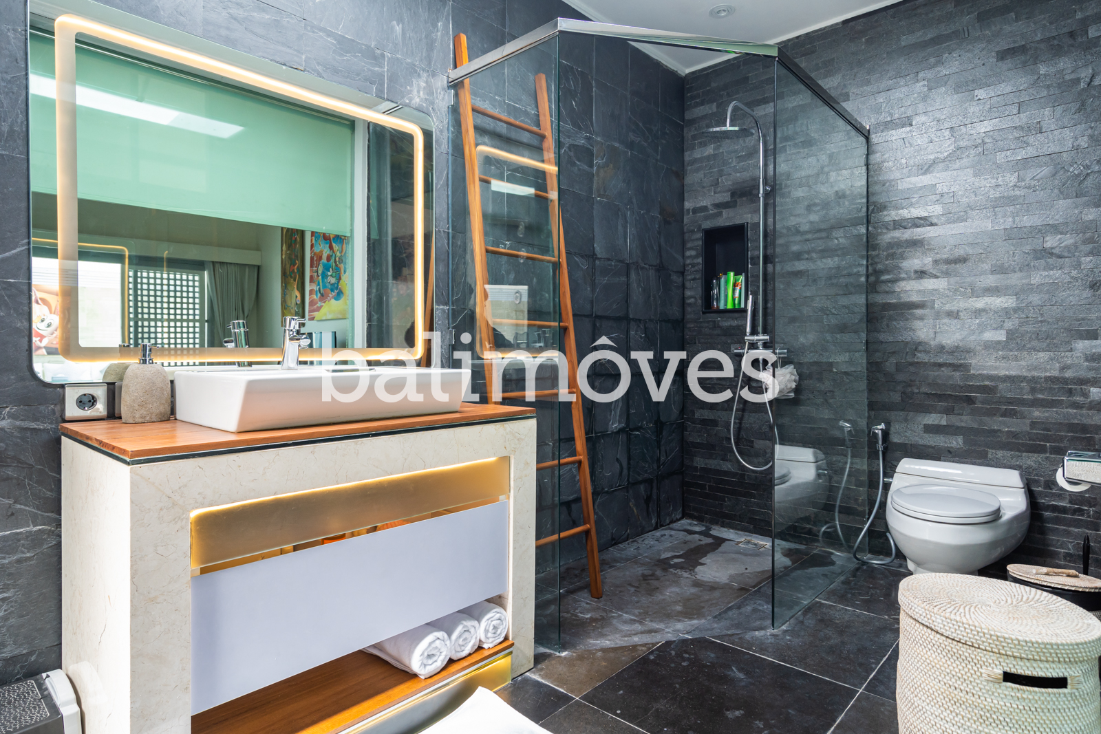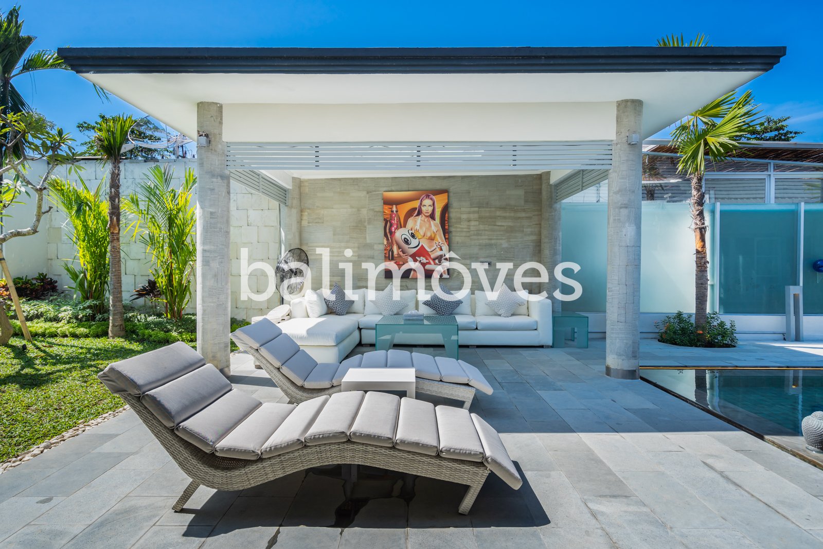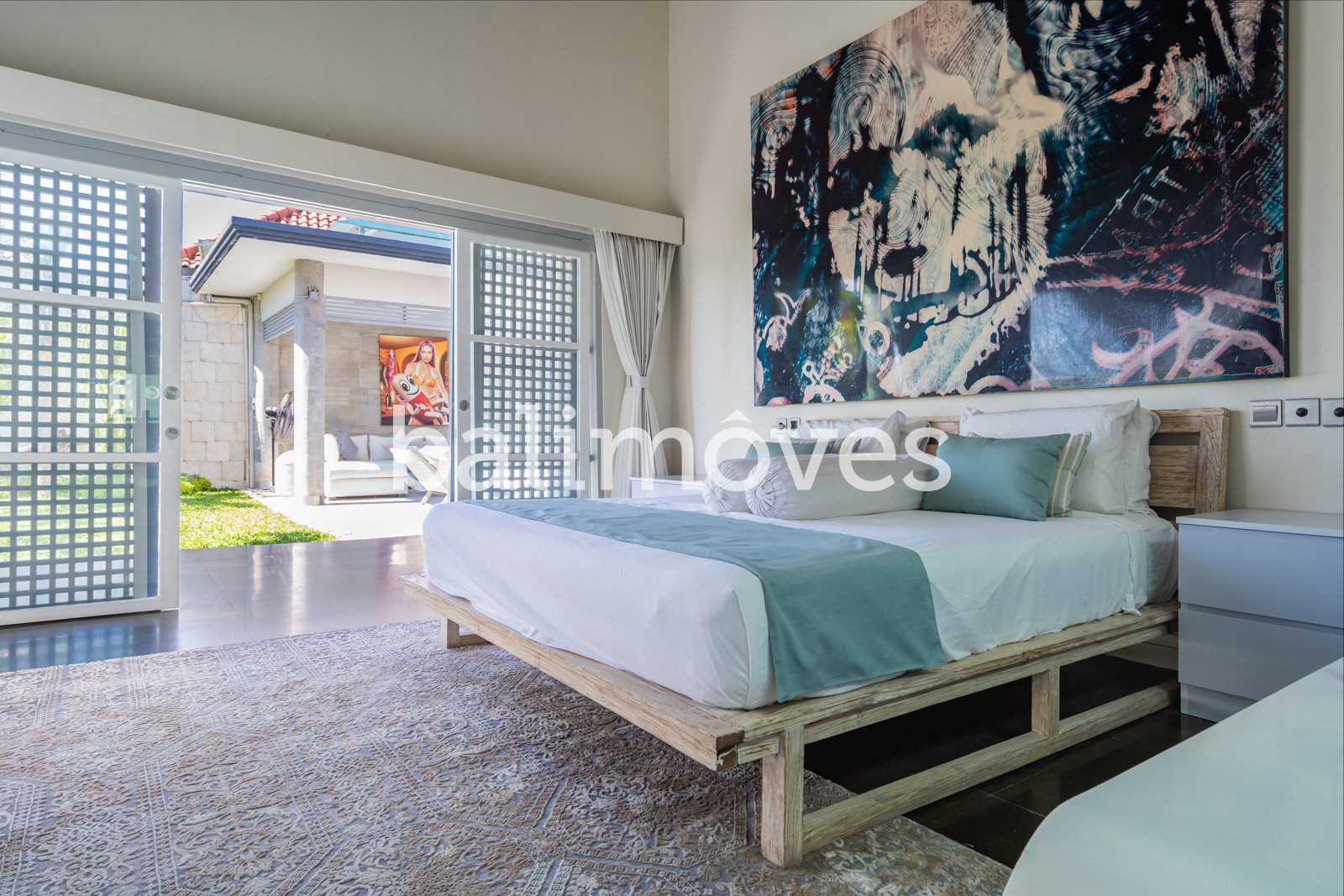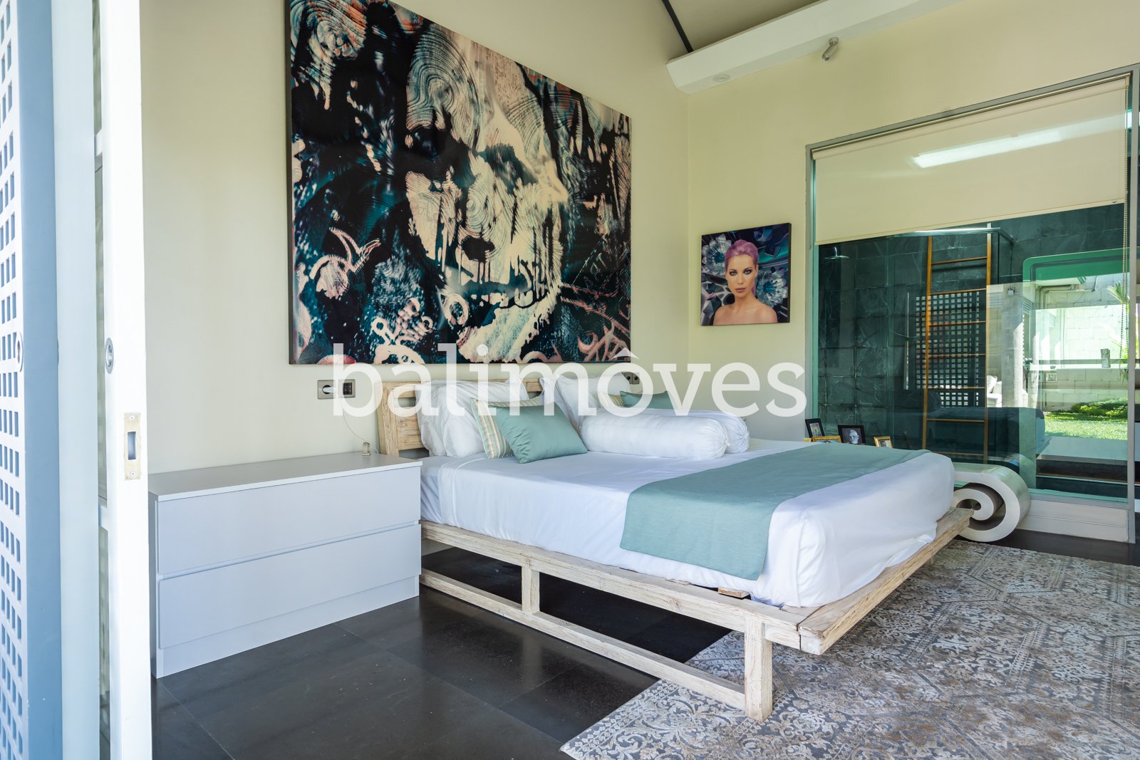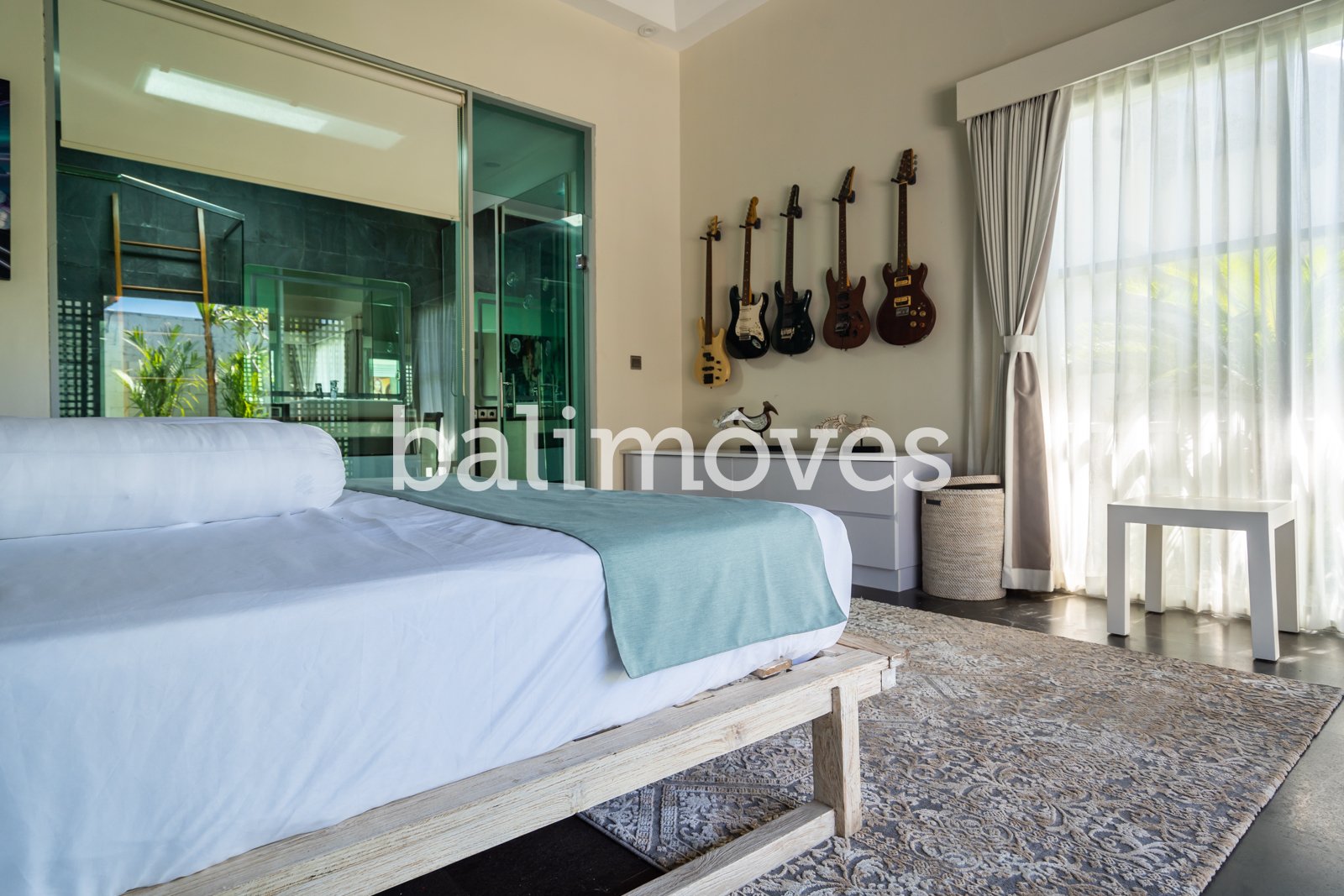 This property sits on the spacious land which are 700m2 land in total with 400m2 building size. It is consist of the modern and spacious four bedroom all with ensuite bathrooms, at the moment the owner only using two rooms as a bedroom and the other two they use it as a lovely little music studio and the work space. The property has a modern designed, it was build on 2010 but from how it looks this villa does not really looks like a 10 years old property because the owner of this beauty has taking a very good care of their property. It has offers a spacious living room that connected with the dinning area, and the spacious modern kitchen set, a very big size of swimming pool, it is has a garden even though it is not spacious but it is still in a good size for a small BBQ party with the loved ones. The property has also offers a maid room with bath and a maid kitchen, a storage, and washing machine.