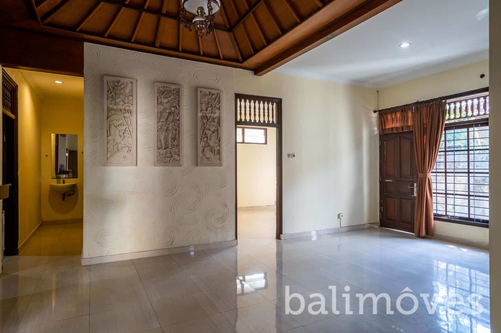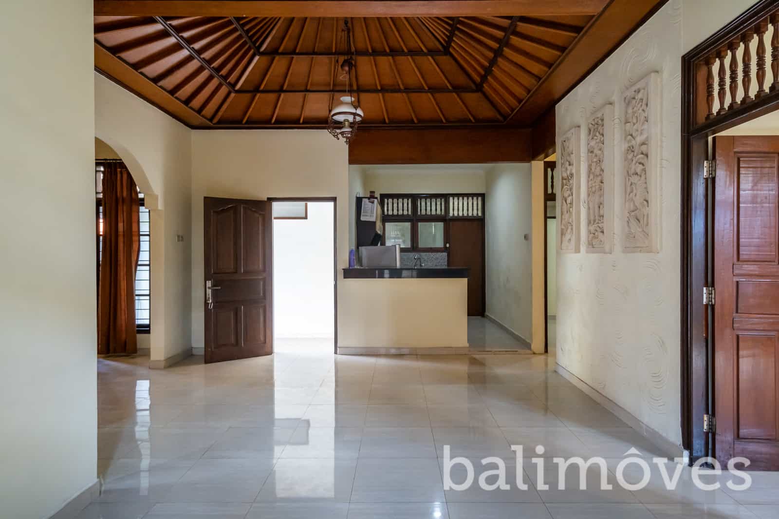 The property was built in 2010 and the total land size is 3 are & building size is 1,2 are, it has consisted of one master bedroom with an ensuite bathroom fitted with a bathtub and shower and two bedrooms offer with sharing bathroom on the outside, the house also offers a spacious closed living room, that connected with the dining area and minimalist kitchen come up with fridge. Yes, you can see on the photo and the video it is so obvious to have a big garden is if you have a pet and are looking for a cheap and pet friendly house with Balinese style in Sanur for long term rental, this house definitely could be a perfect option for you.