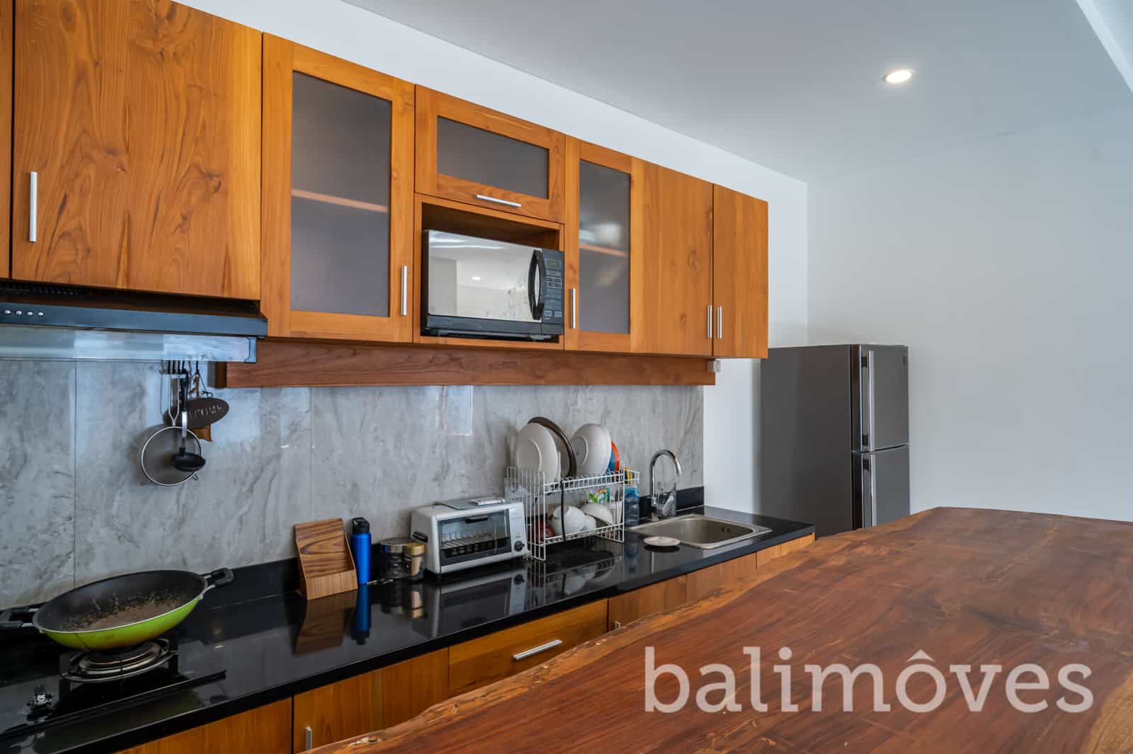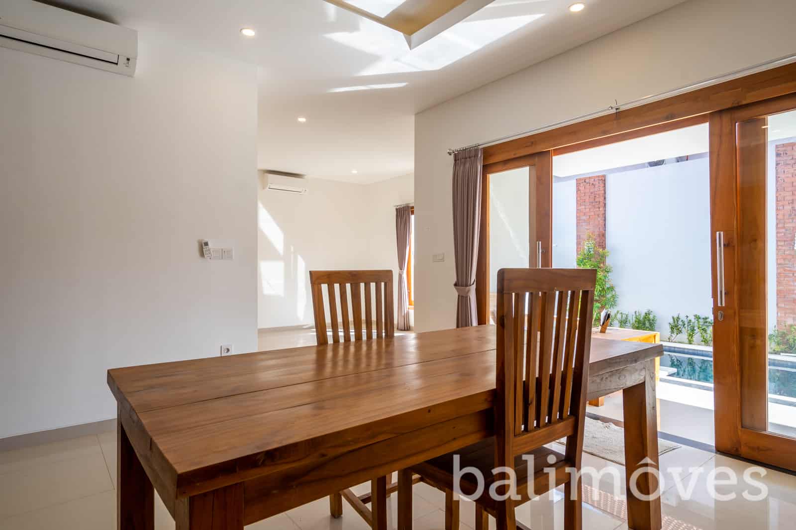 Designed as a residential living concept this property was build in 2017 on the 2,8 are land and 1,5 are the total size of the building. It has consisted of three bedrooms in total all come up with a furnished and ensuite bathroom fitted with a shower and the master bedroom offers a bathtub. This property offers a bright and minimalist closed living room equipped with AC, a modern kitchen set comes up with HOB and fridge, dining area, storage, a good size swimming pool, a small terrace with a teakwood bench set, and two pool chairs come up with an umbrella.