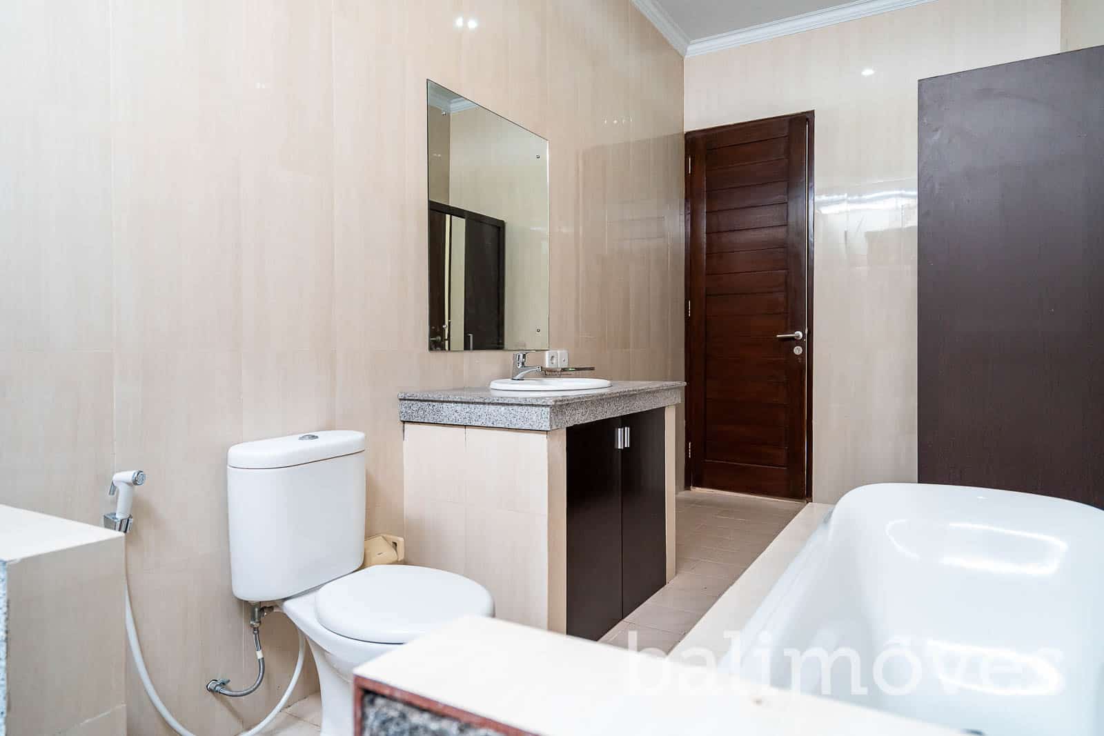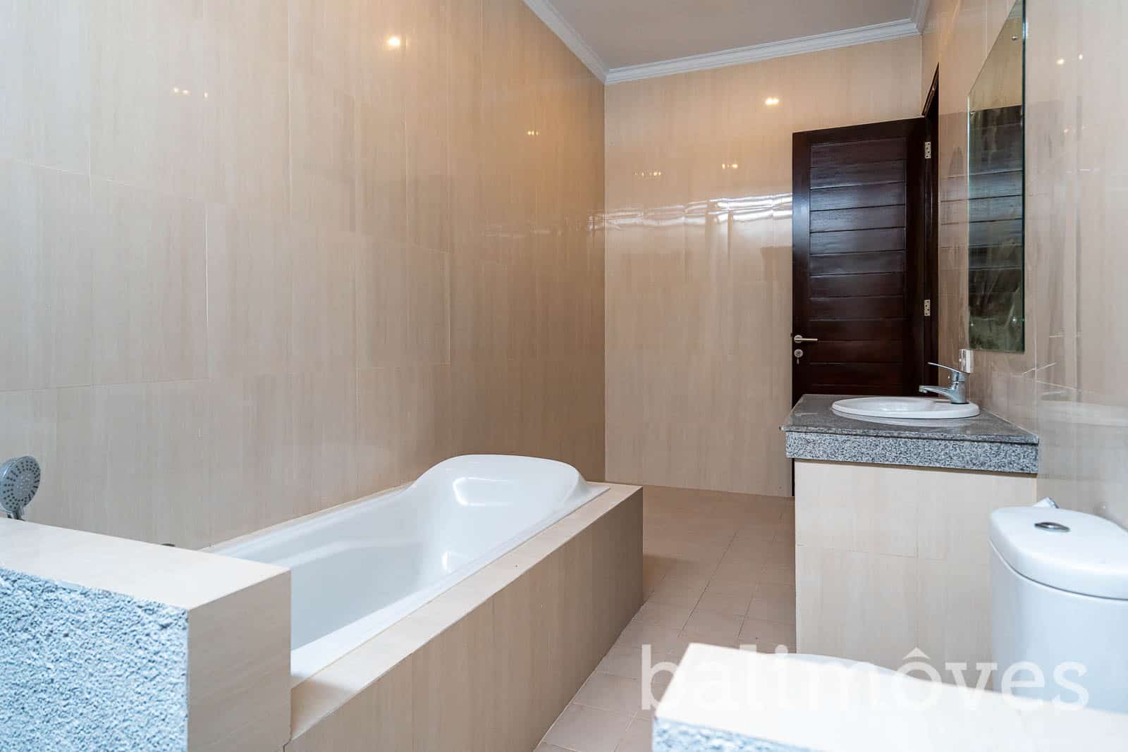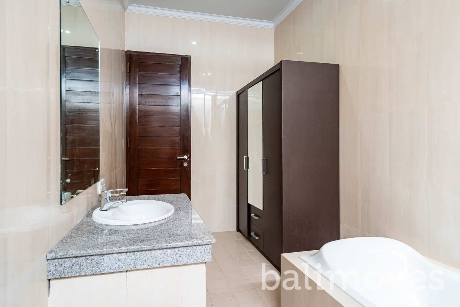Okay this villa is not new, but has just been renovated. Very clean, and in a comfortable environment. 3 bedrooms, 3 bathrooms, 1 maidroom + bathroom. Furnished including western standard kitchen, HOB, Fridge, 4 air conditioners. Also equipped with a ‘bale bengong’. Come on for those of you who want to invest.