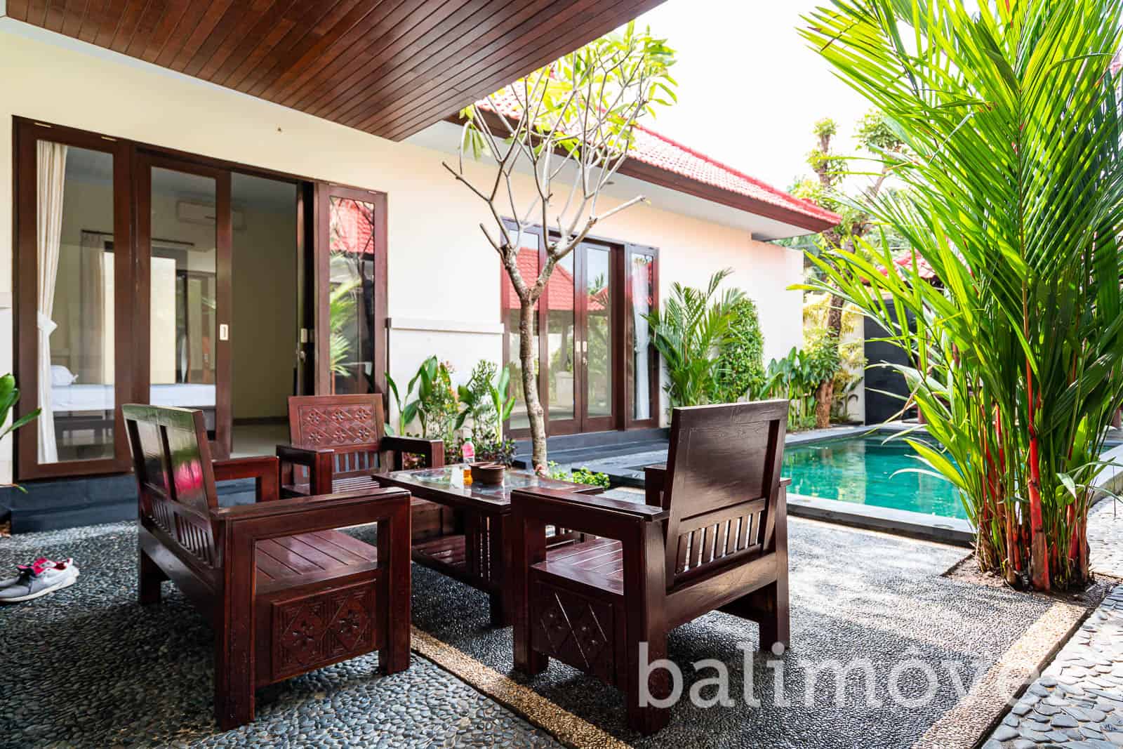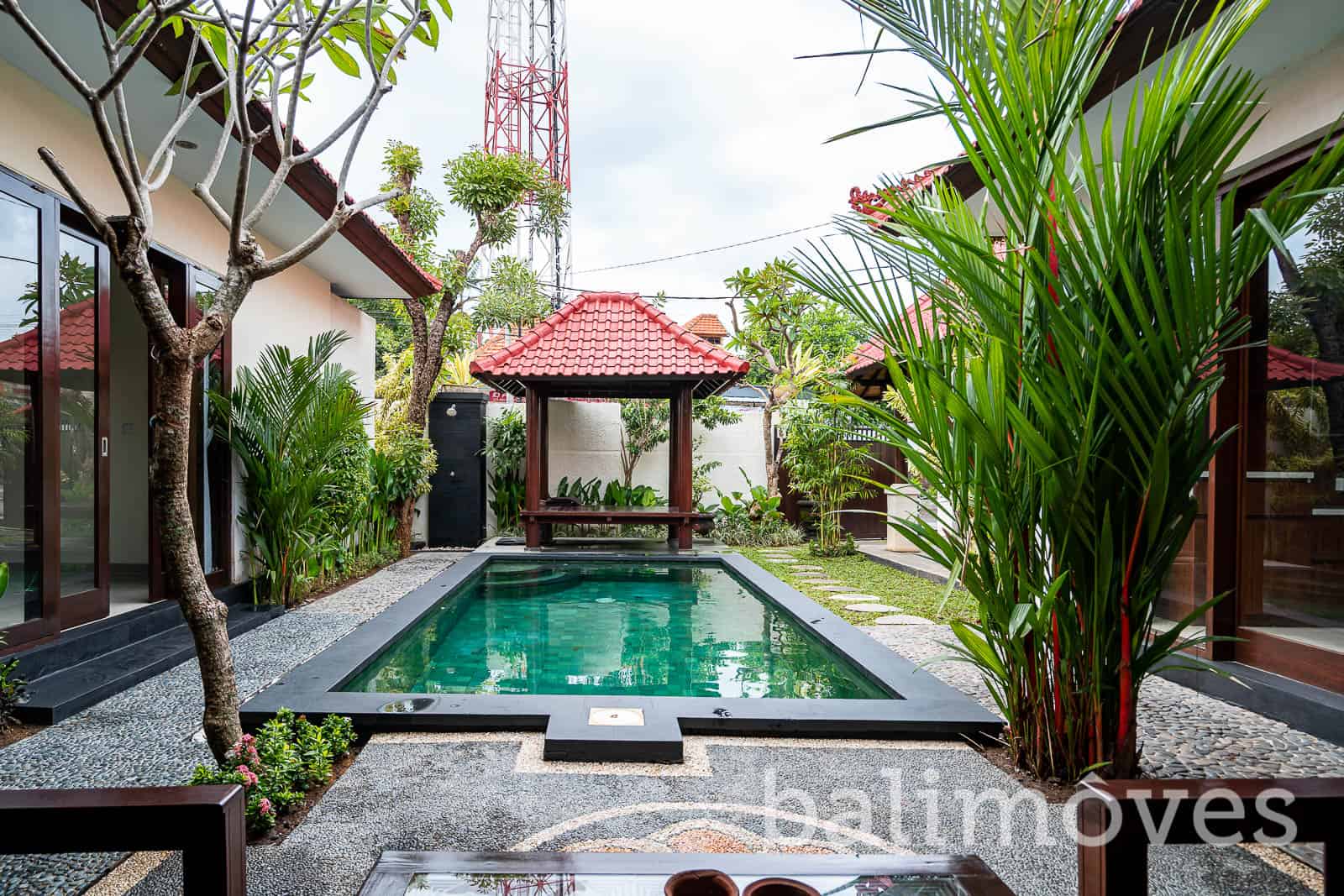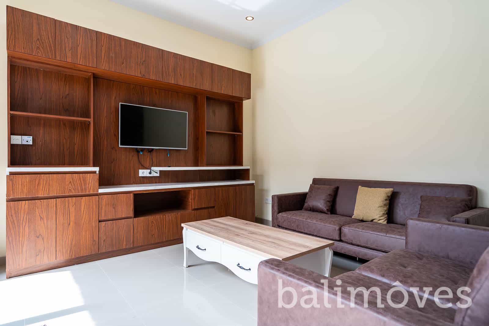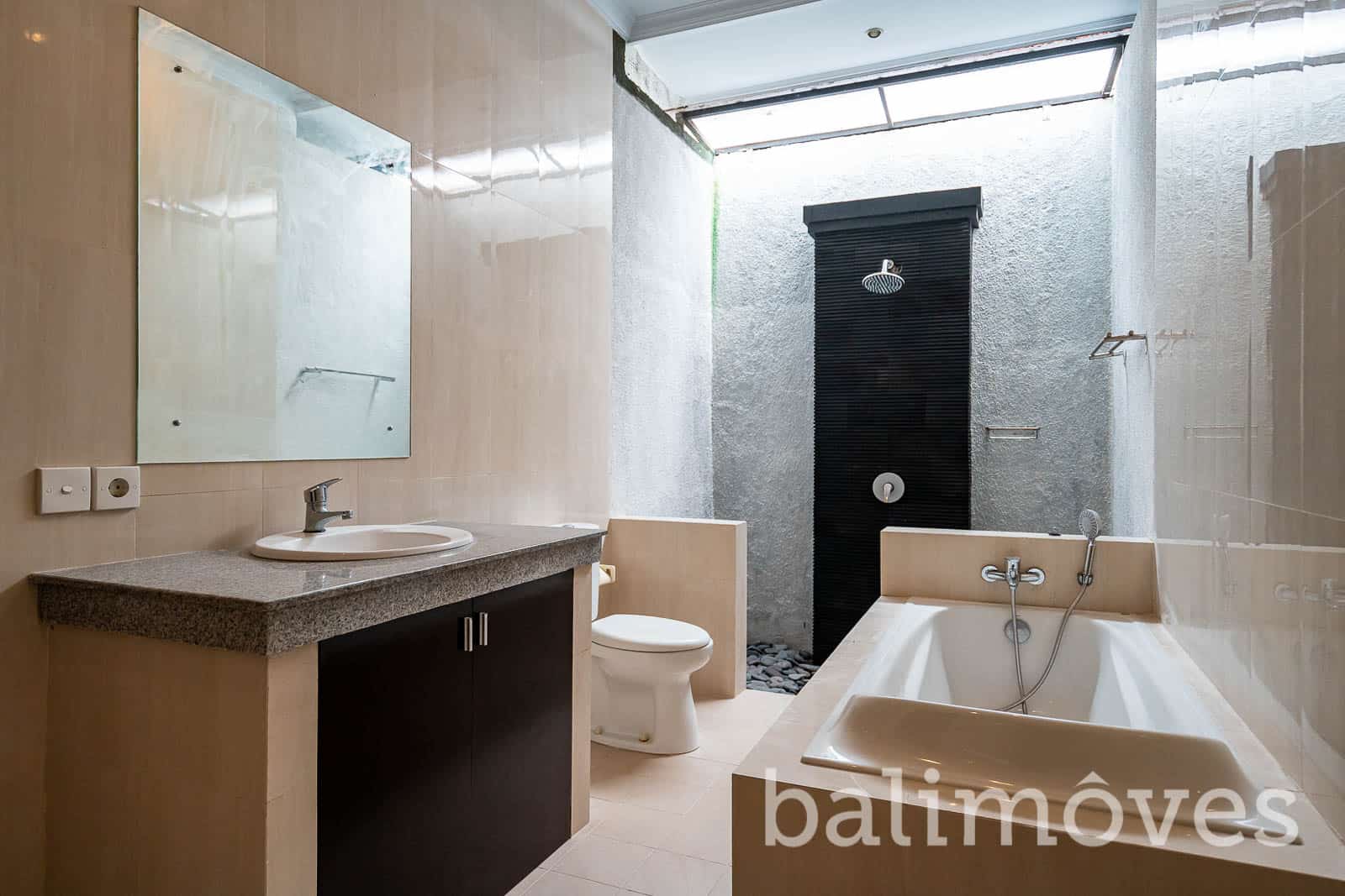 Okay this villa is not new, but has just been renovated. Very clean, and in a comfortable environment. 3 bedrooms, 3 bathrooms, 1 maidroom + bathroom. Furnished including western standard kitchen, HOB, Fridge, 4 air conditioners. Also equipped with a ‘bale bengong’. Come on for those of you who want to invest.