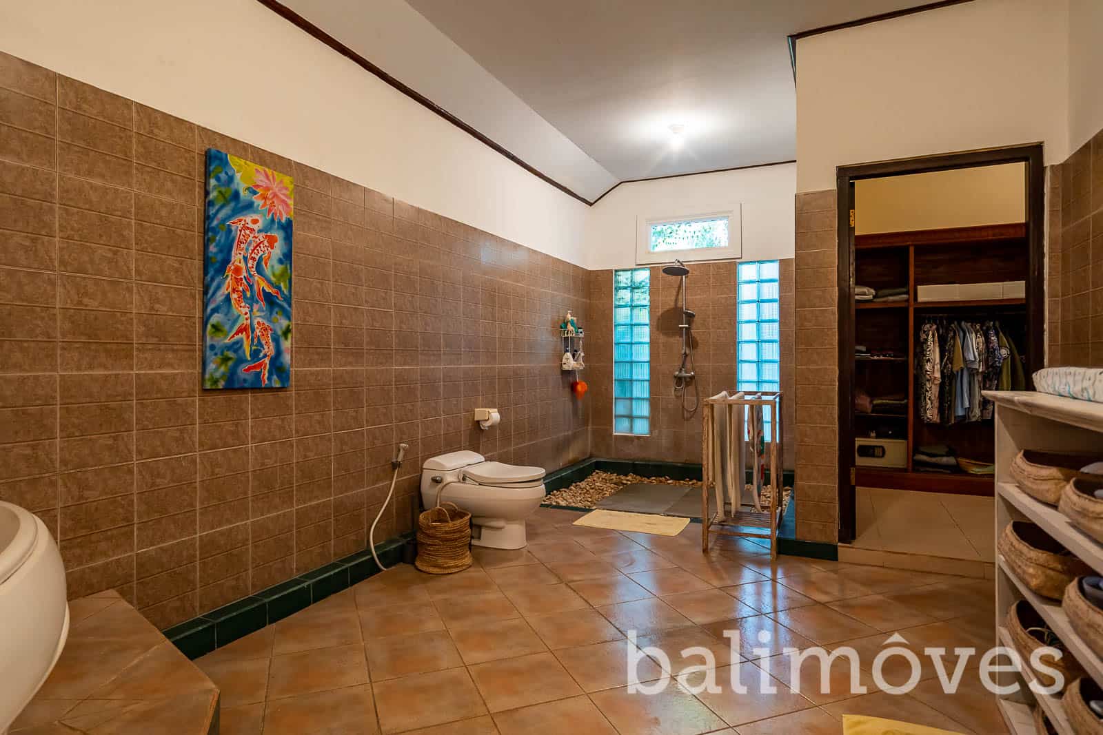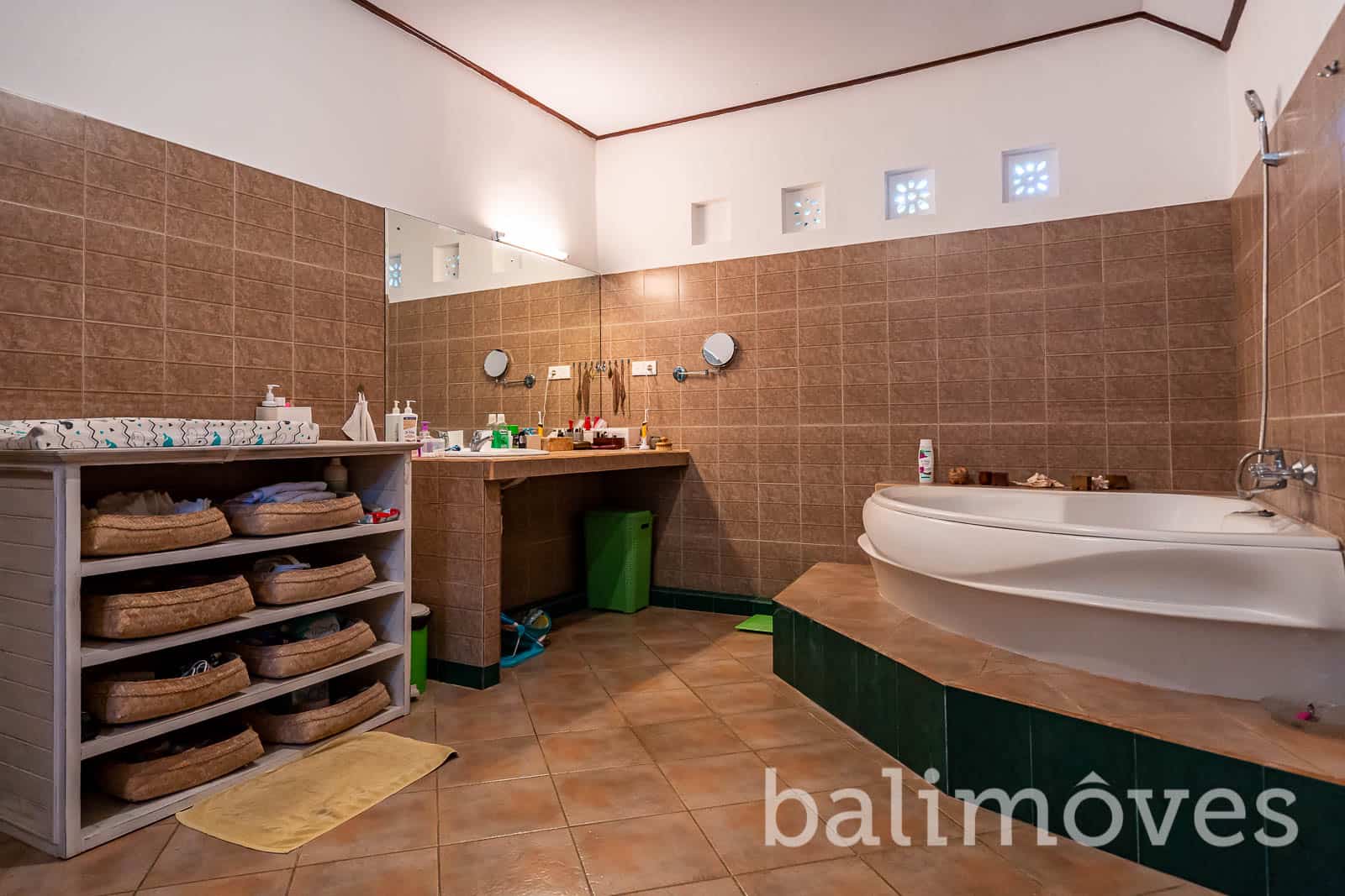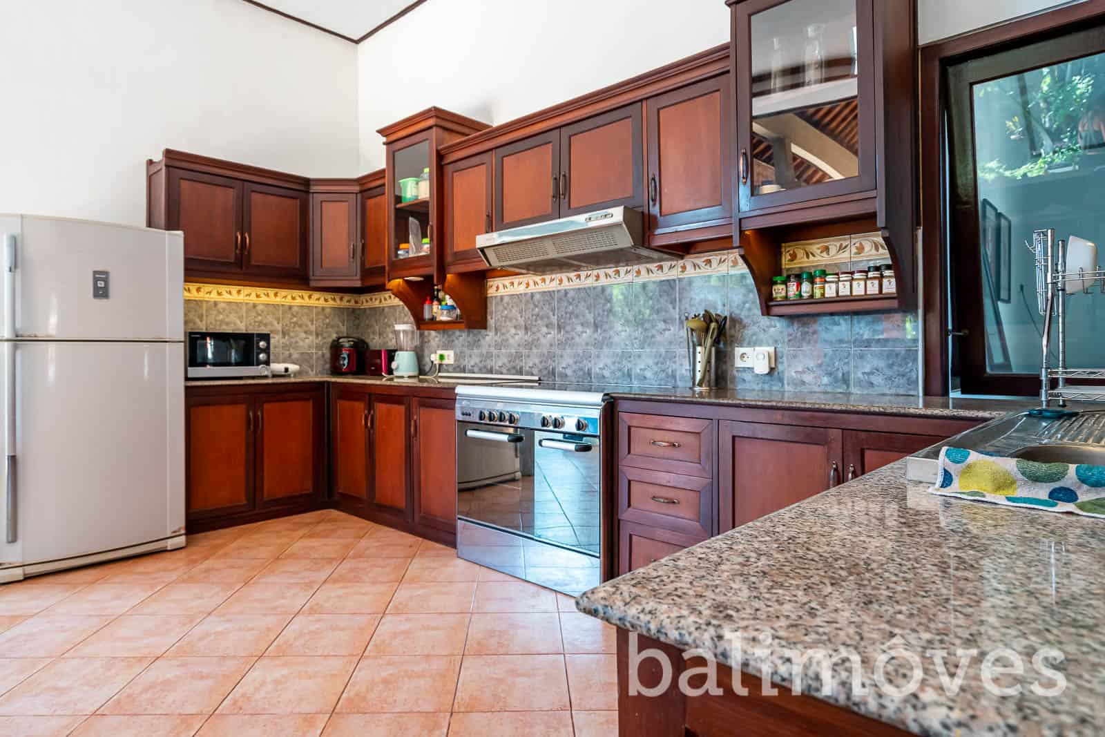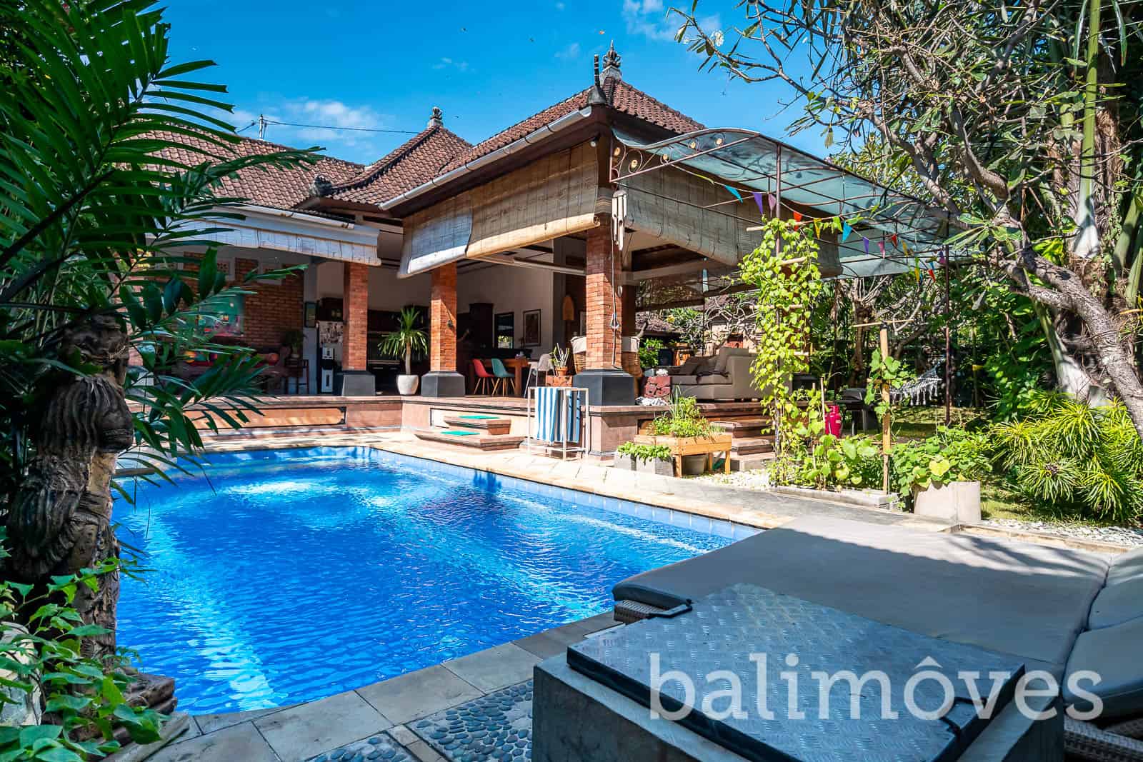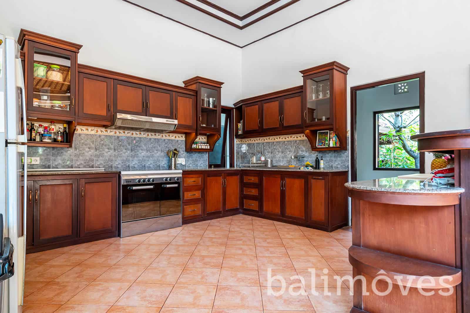 Open villa surrounded by a lush, tropical garden with that red bricks style on the outside make this villa looks more natural the rice fields is just behind. The villa was built on 900 m2 landsize & 300m2 building size it is make sense that this property have a big rooms.The villa has 3 large double bedrooms with king size beds, with ensuite bathrooms. One of the bedrooms is in a separate guest house, for extra privacy. With that big windows, I’m pretty sure this villa got enough sunlight and have a good air circulation. The villa is also have big open kitchen with western standard style so if you love cooking, the kitchen on this property would be the perfect place for you to start to do your hobby again. If you have pets you don’t need to worry about it because this villa is pet friendly.
