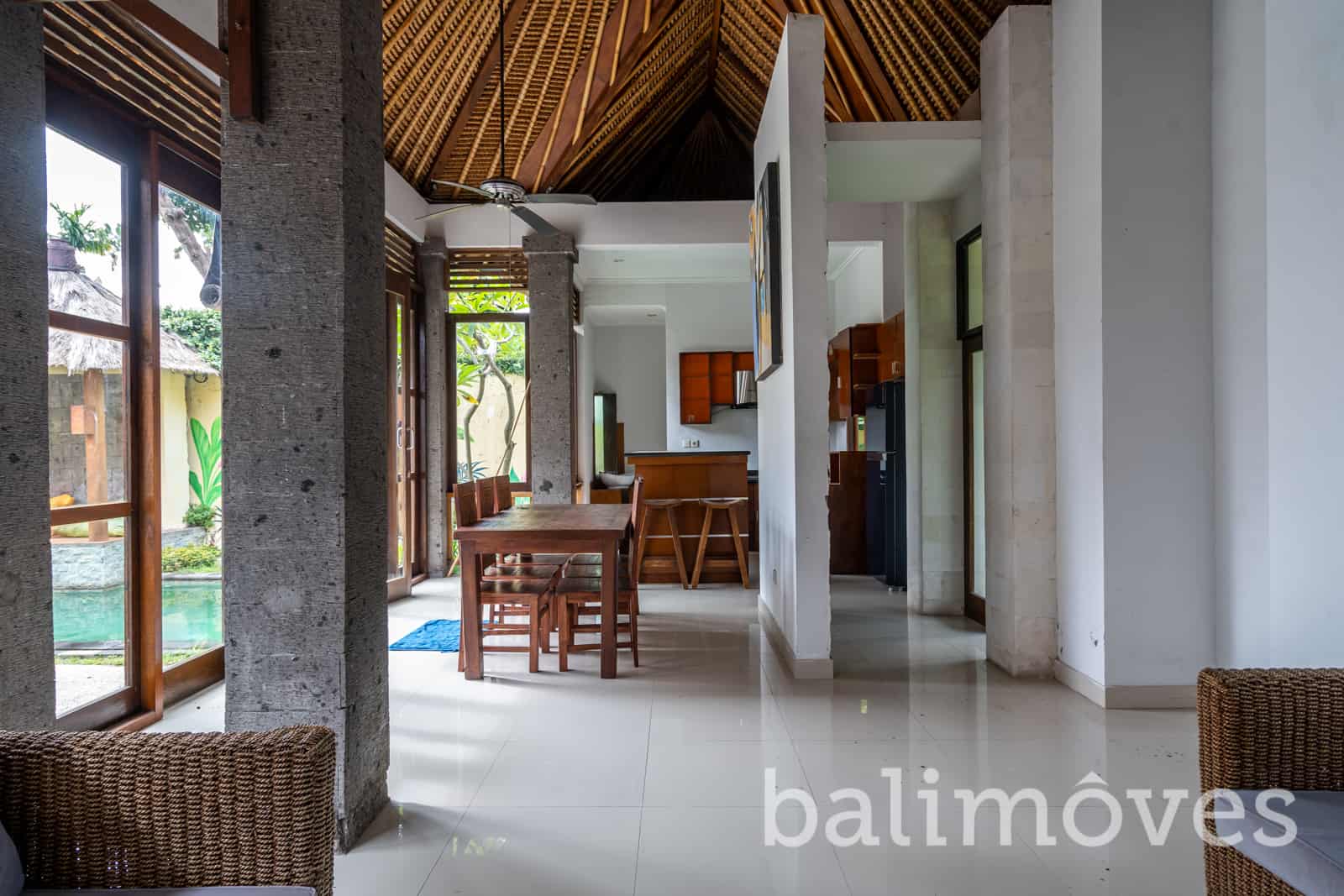 This good, Furnished and Huge. 3 Bedroom, 4 Bathroom, with Storage and Maidroom. Equipped with a lounge area beside the pool. Bathroom design made elongated to add a broad impression. Included HOB and Refrigerator. Built on 480m2 Land, with 300m2 Building. Pool with dimension 7x4m.