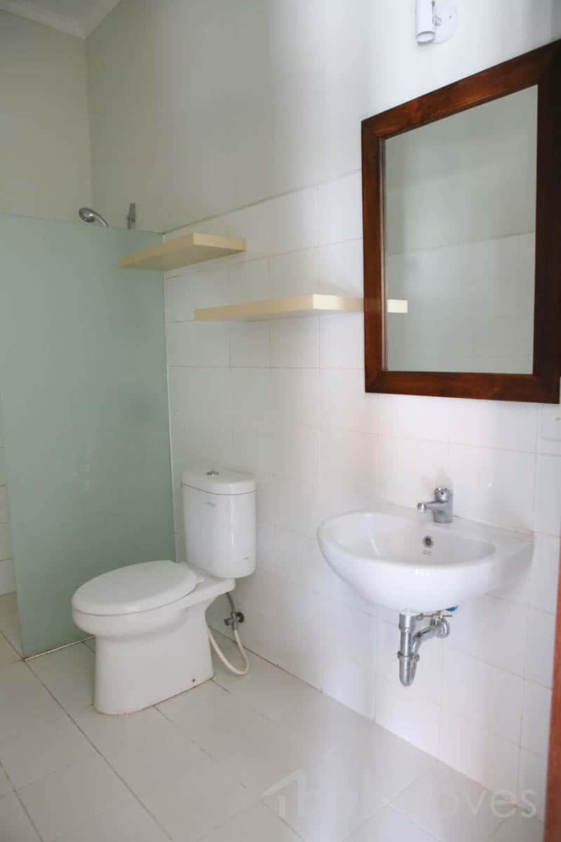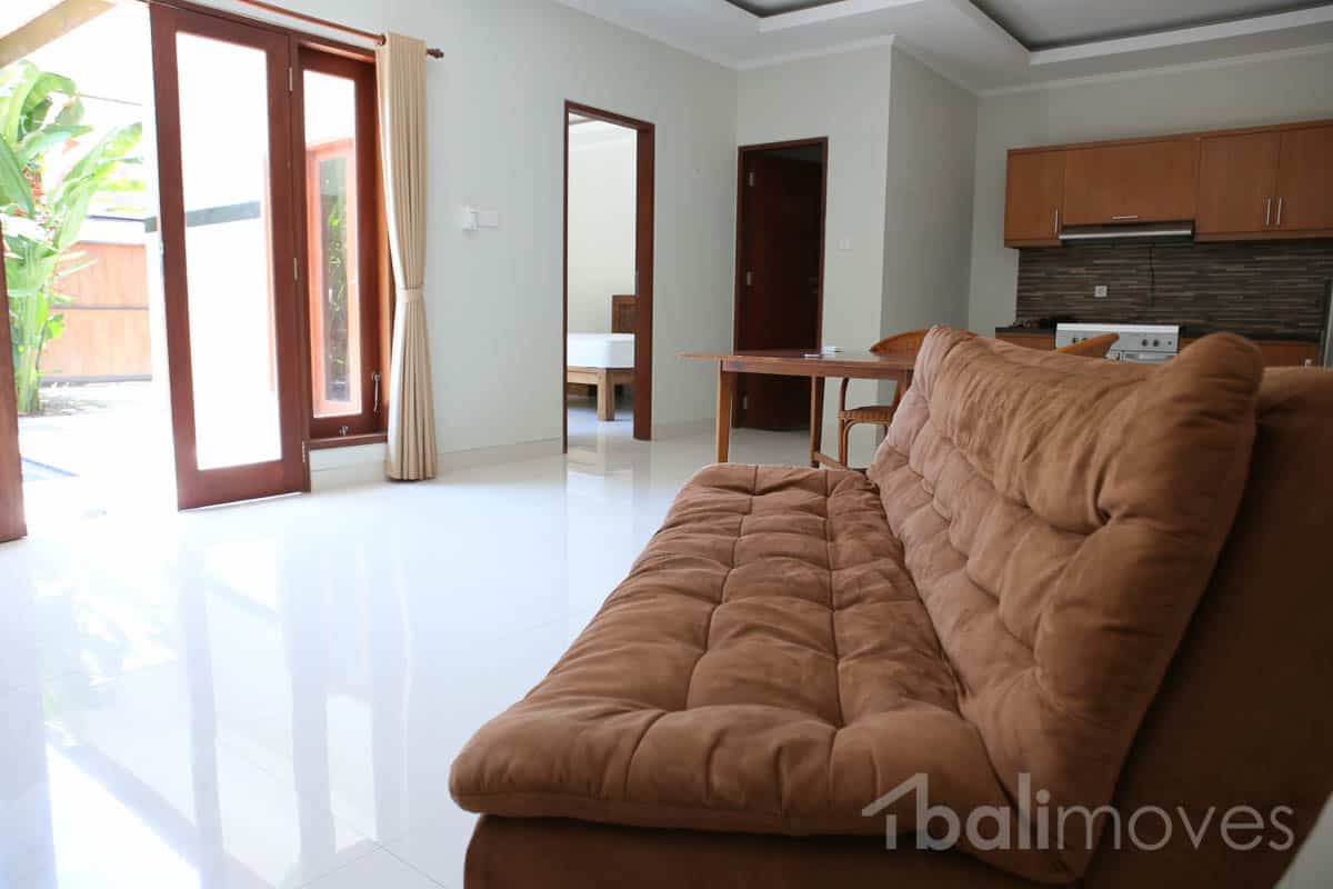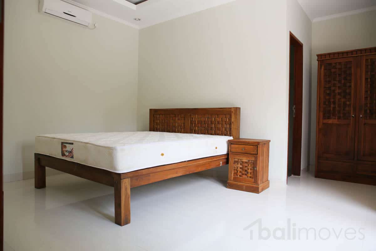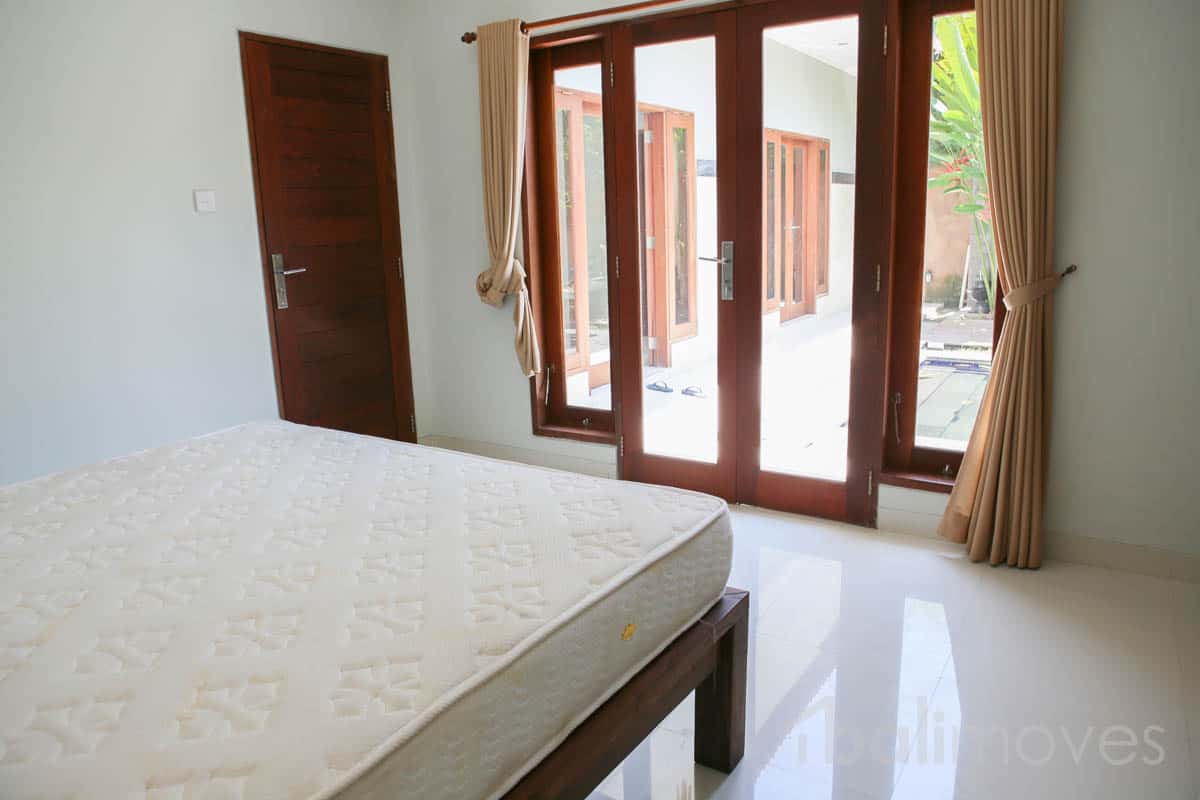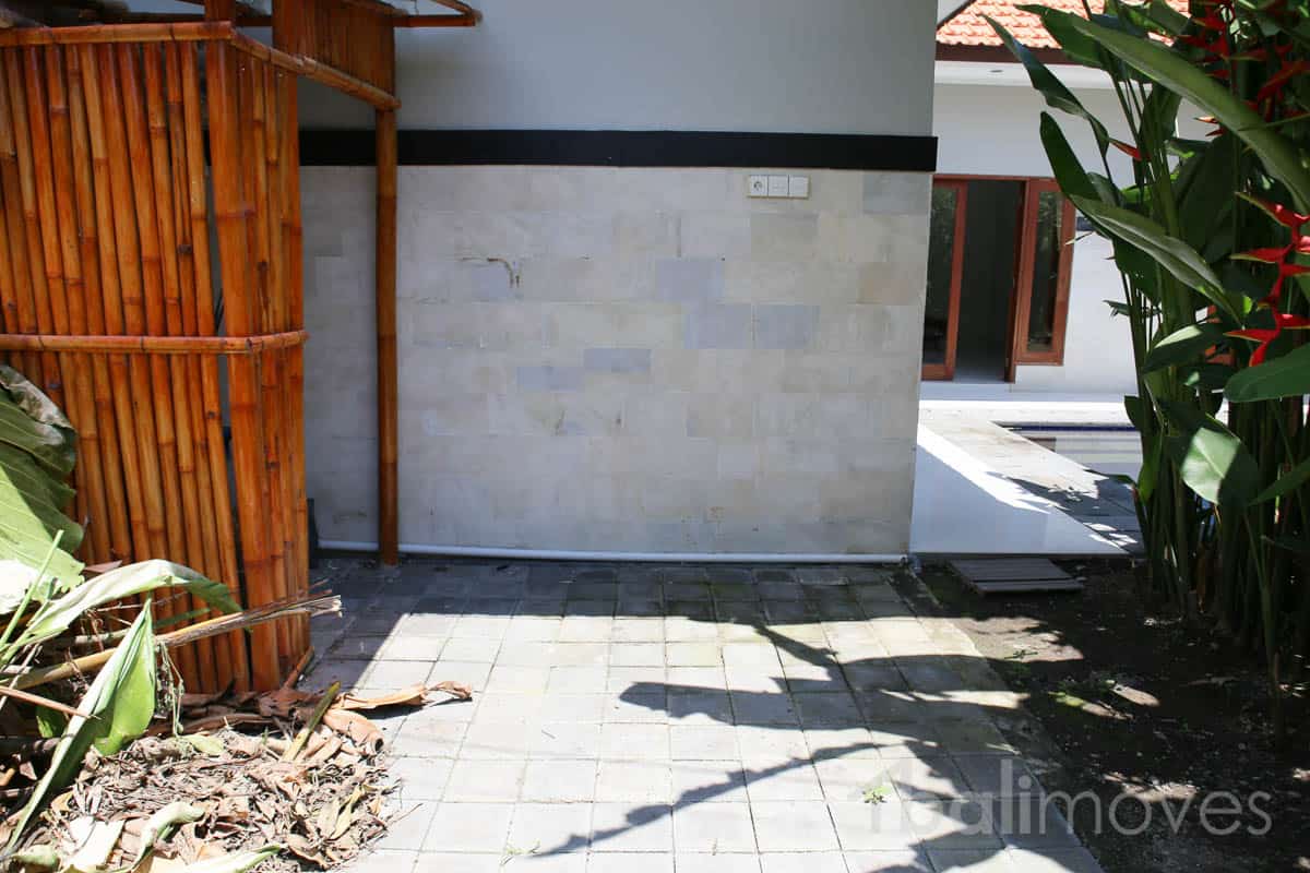 This is a pretty standard two bedroom villa built around a swimming pool. Combined living area and kitchen, each bedroom with ensuite bathroom, clean, bright, and modern. Tucked away behind a popular main road just west of the Bypass. Good location, reasonable price, a blank canvas for anyone looking to make a nice, easily maintained home in Sanur.