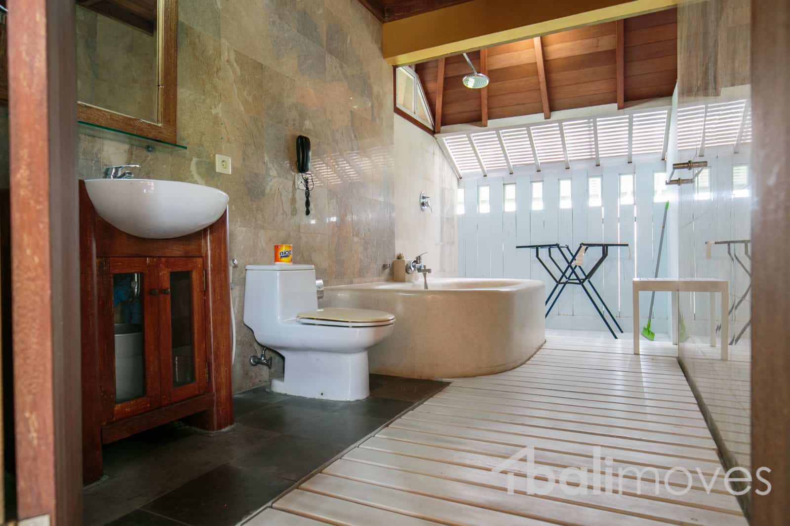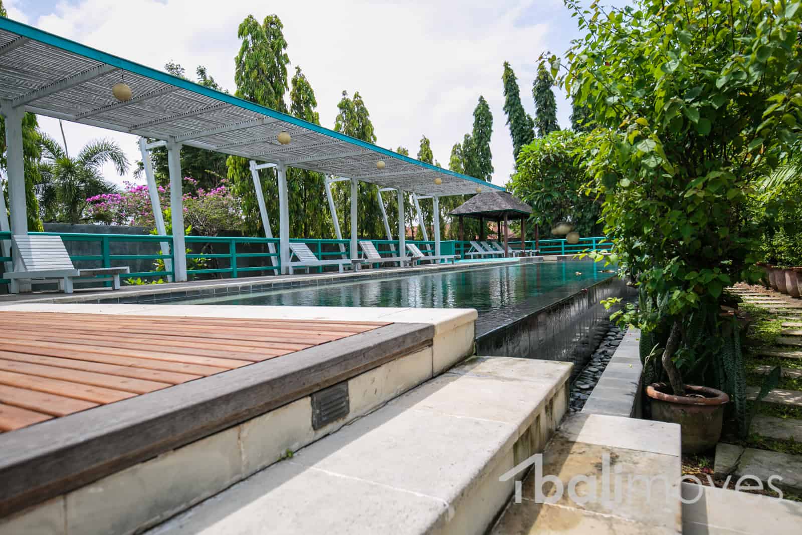 This apartment was built on 300 m2 land, 250 m2 building size and consist of 2 bedrooms & 2 bathrooms, a storage, a maid quarter. The architect of this villa complex had an amazing work, they designed this place with great idea and give a strong relaxing atmosphere. On the inside of the villa, the furniture are in tune with the paint on each floor and on each rooms. It also featured with a 7700 watt electric power, PDAM, parking lot, and a shared pool.