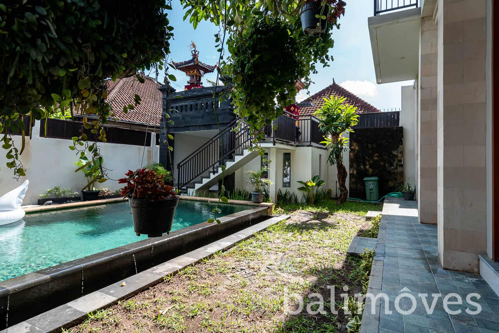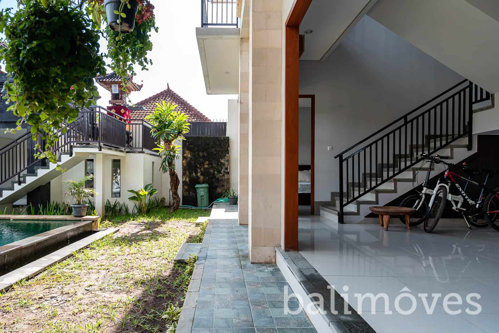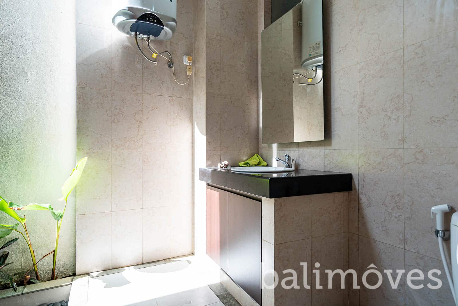 This villa is nice and modern. But this villa is in the same area with the owner’s house. If you want a barrier the owner will make it. 2 bedrooms, 3 bathrooms. Semi furnished included HOB, Fridge, western standard, 2 air conditioners. The location is close to McDonald Sanur