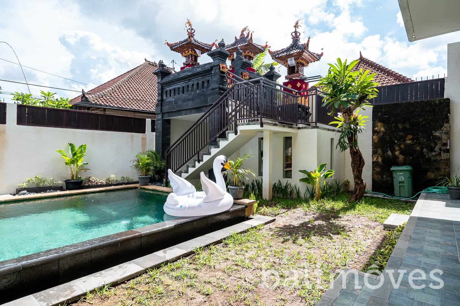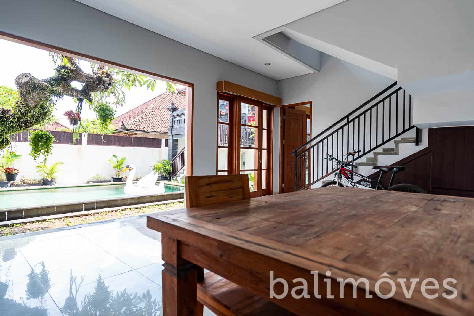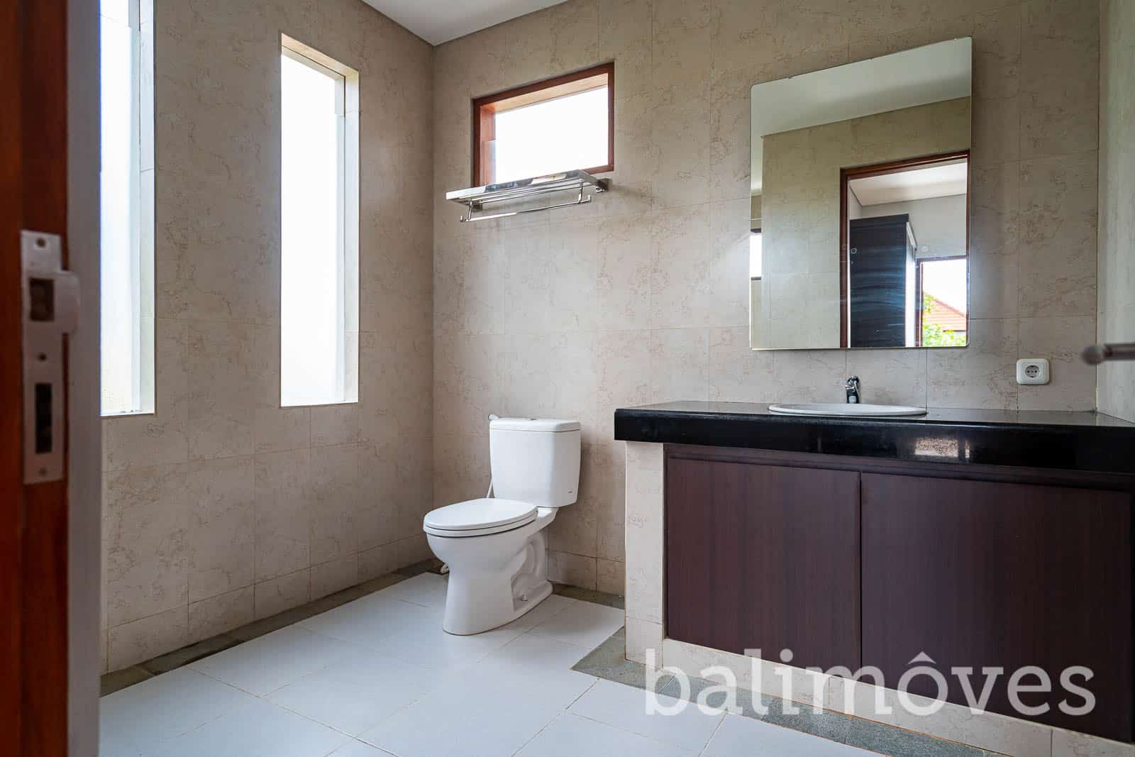 This villa is nice and modern. But this villa is in the same area with the owner’s house. If you want a barrier the owner will make it. 2 bedrooms, 3 bathrooms. Semi furnished included HOB, Fridge, western standard, 2 air conditioners. The location is close to McDonald Sanur