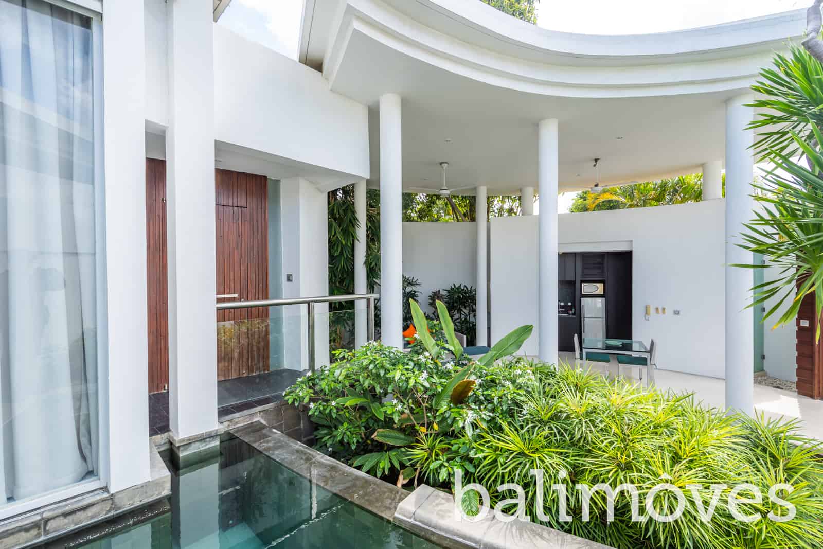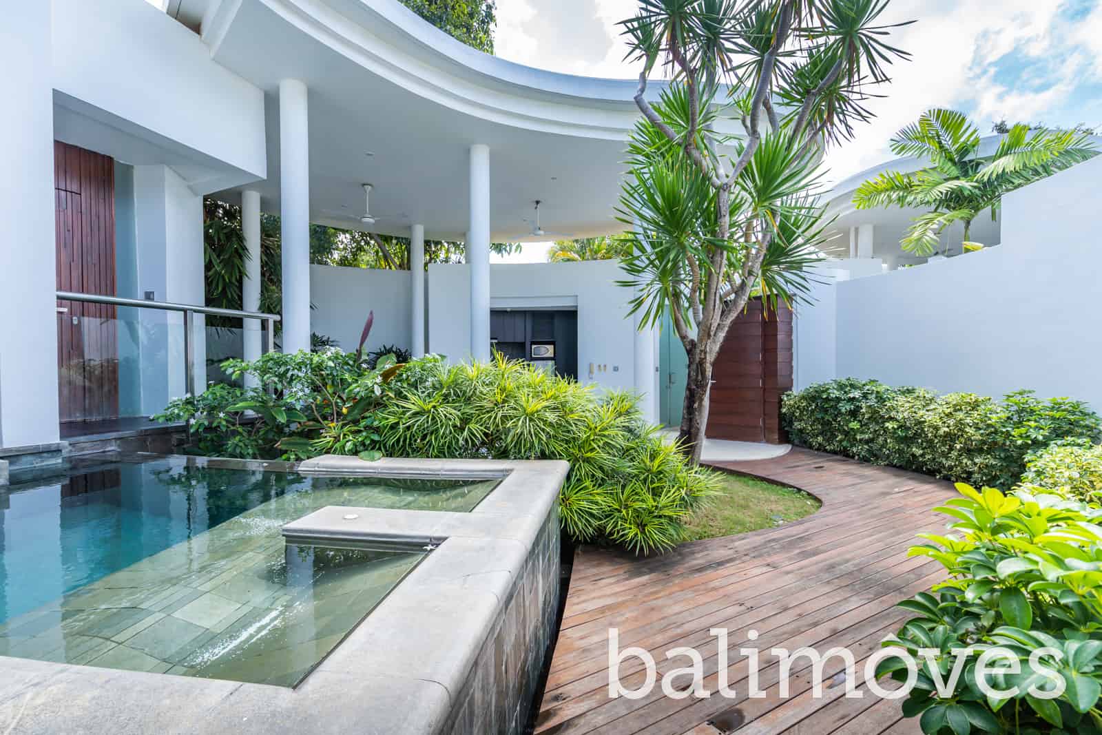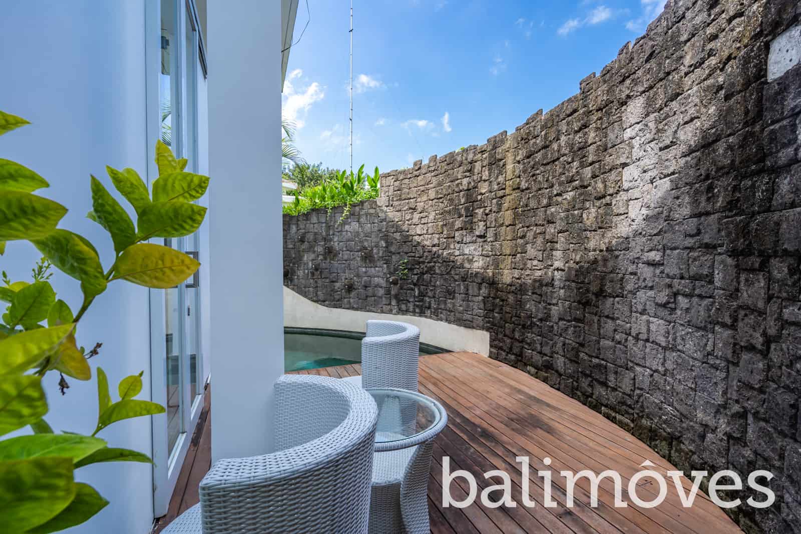 Switching from a strategic location, let’s take a look at how stunning the style of this villa building is. With a full fence wall and also high, this villa is built elongated and almost resembles a semicircle shape. The concept of an open kitchen and living room overlooking the courtyard. Then it is connected to the swimming pool by a wooden walkway. This mini swimming pool is right in front and spreads to the side of the room of this house. The rooms of this house are designed to be very comfortable and luxurious, equipped with a walking closet and also a beautiful bathtub. Only has 1 room, this villa is perfect for living alone or with a partner. With a good environment, and great privacy, this villa is a good choice for Seminyak.
