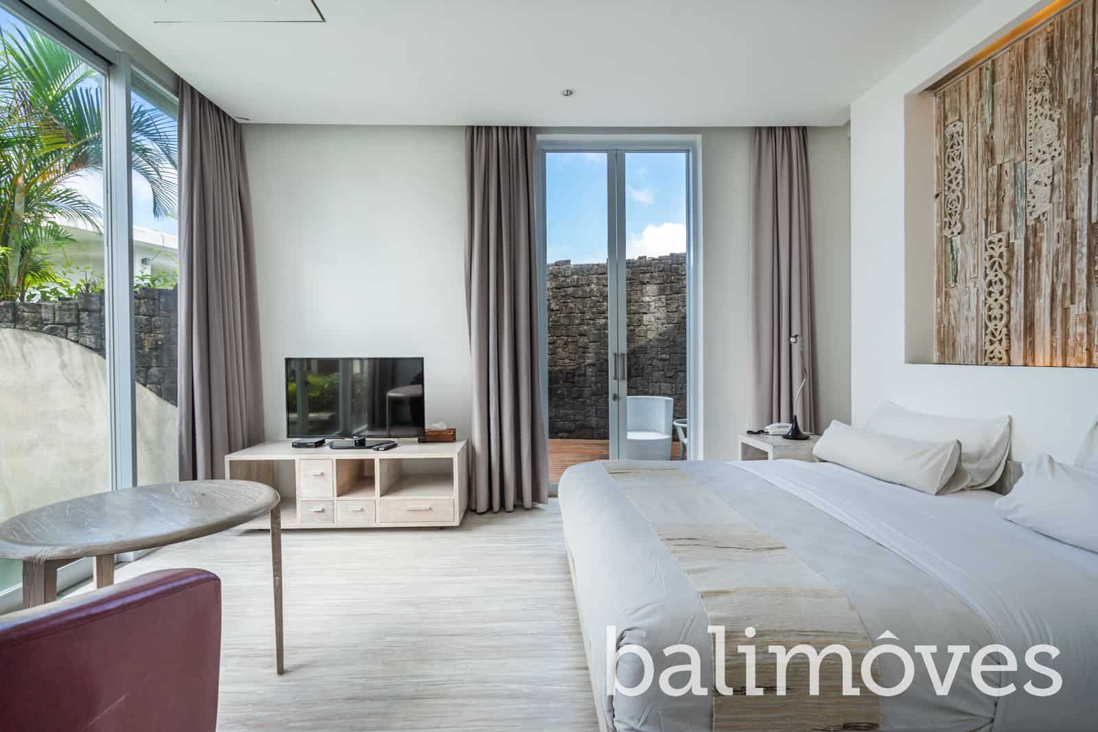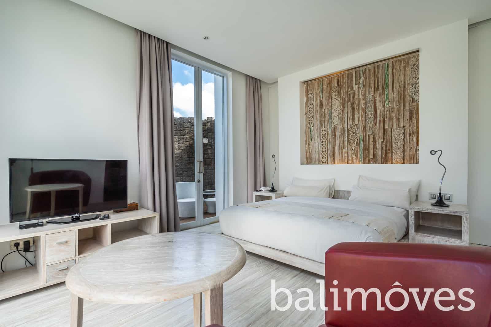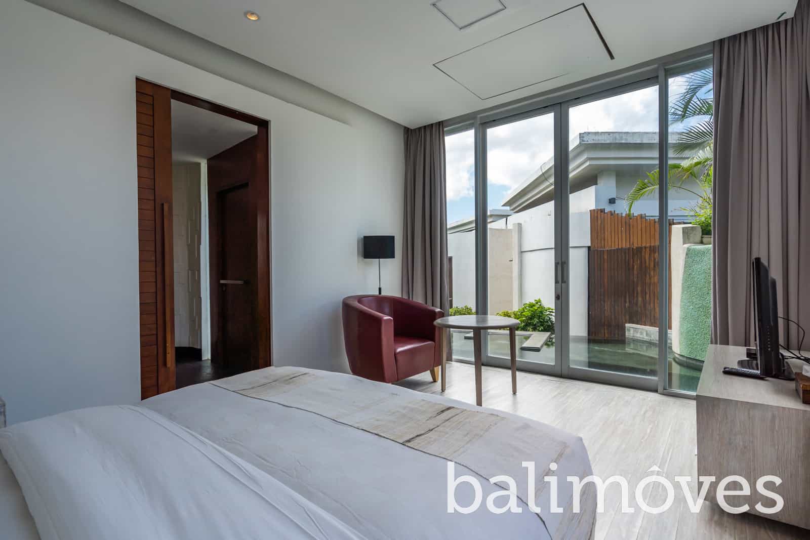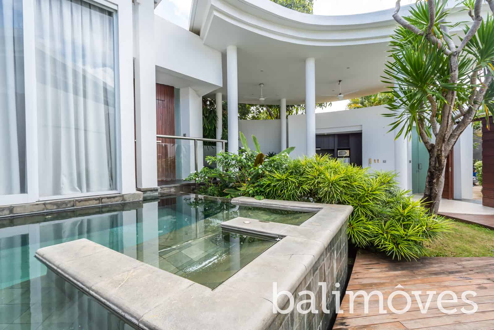 Switching from a strategic location, let’s take a look at how stunning the style of this villa building is. With a full fence wall and also high, this villa is built elongated and almost resembles a semicircle shape. The concept of an open kitchen and living room overlooking the courtyard. Then it is connected to the swimming pool by a wooden walkway. This mini swimming pool is right in front and spreads to the side of the room of this house. The rooms of this house are designed to be very comfortable and luxurious, equipped with a walking closet and also a beautiful bathtub. Only has 1 room, this villa is perfect for living alone or with a partner. With a good environment, and great privacy, this villa is a good choice for Seminyak.