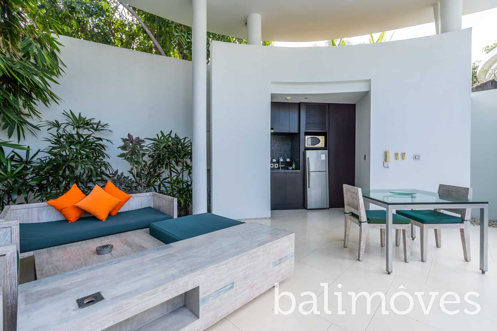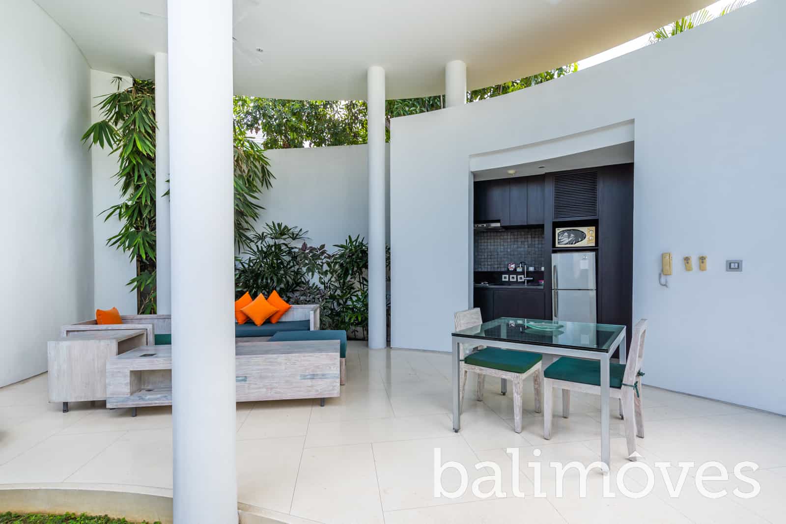 This amazing one bedroom villa is located in the Seminyak area, a location that is very attractive to anyone, where many villas are also built around it. Precisely this villa is located in one of the alleys in Seminyak, but this alley has very good road access, is wide and uses paving stones. If you have ever heard of a restaurant that is famous for its live music in Seminyak, namely JA’AN Bali restaurant, this villa only takes 5 minutes to get there. The lifestyle in Seminyak, of course I don’t need to describe anymore, you can easily get restaurants, boutiques, beach bars and other pleasures here. Located in a complex, this villa also has a very good environment to be used as a place to stay for the long term or short term. Not too far to the beach either, only 5-10 minutes by driving with the road situation in Seminyak which is quite congested.